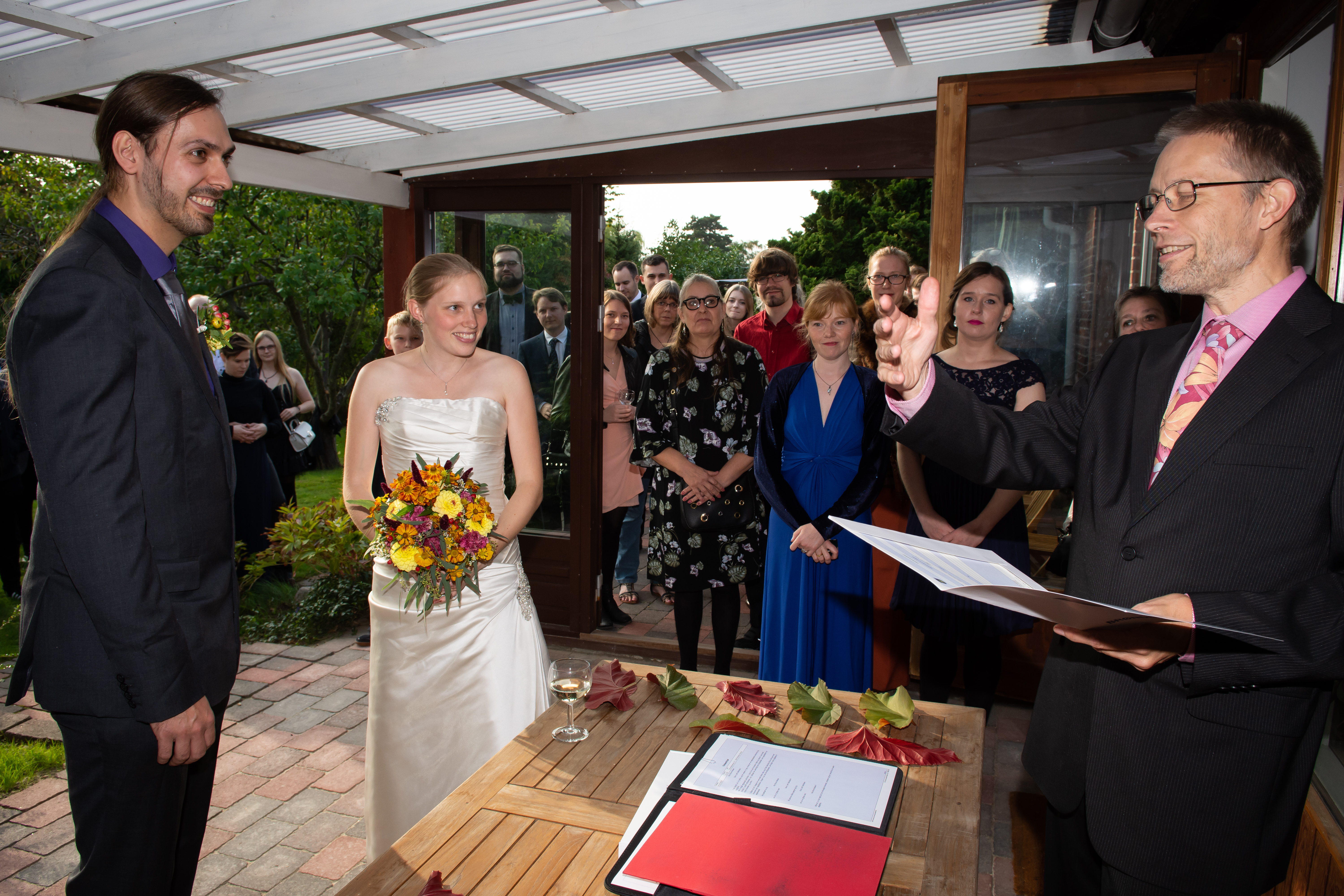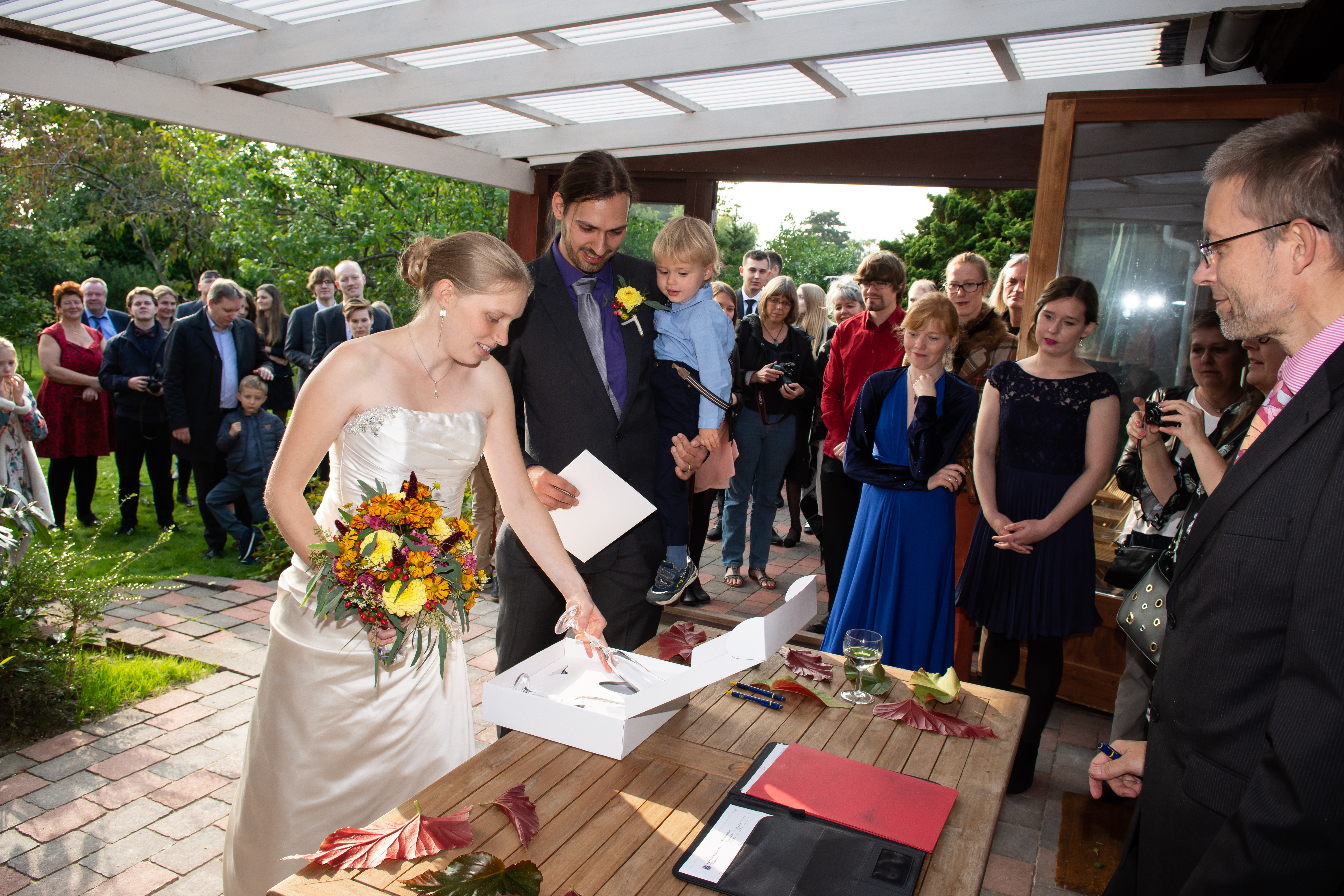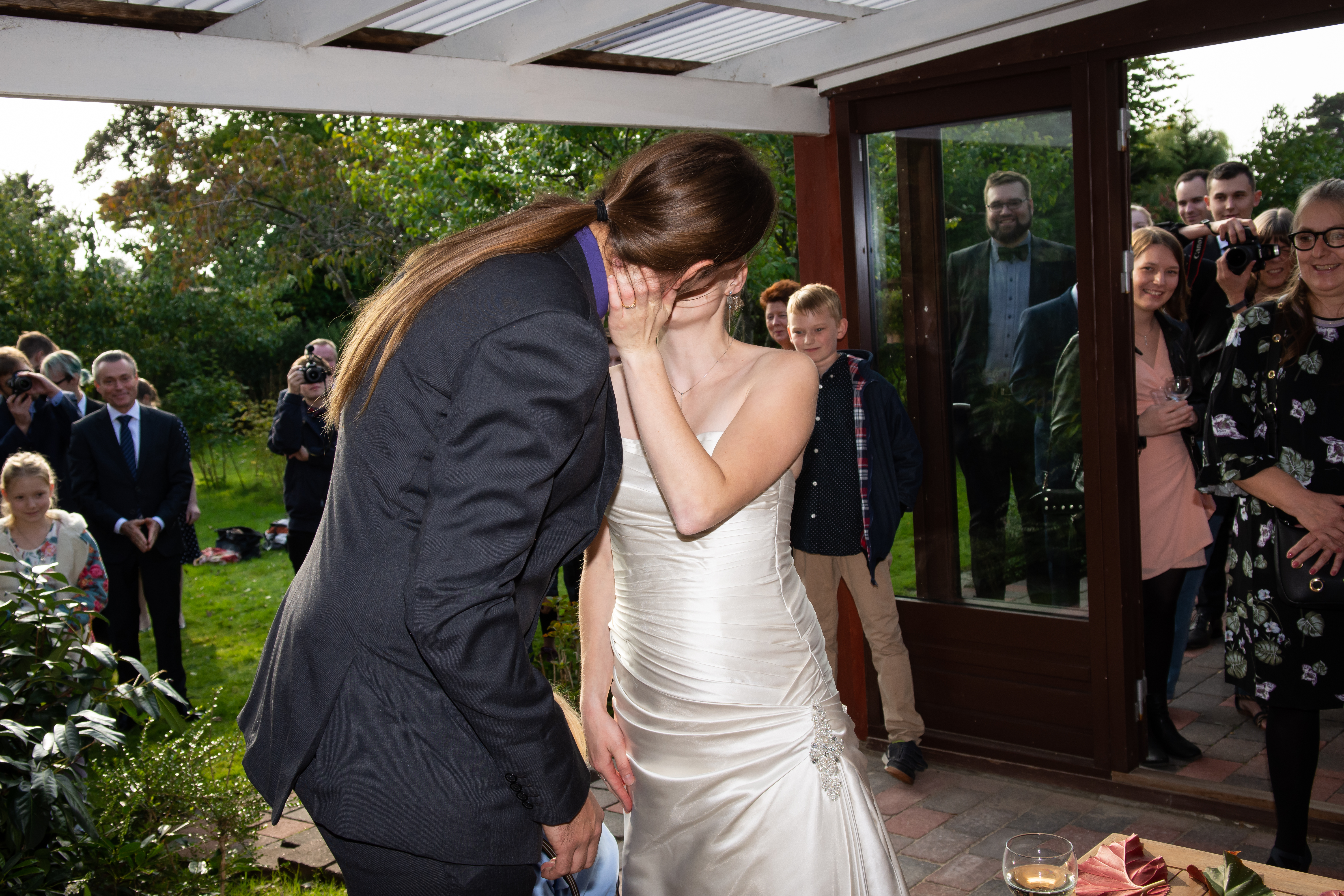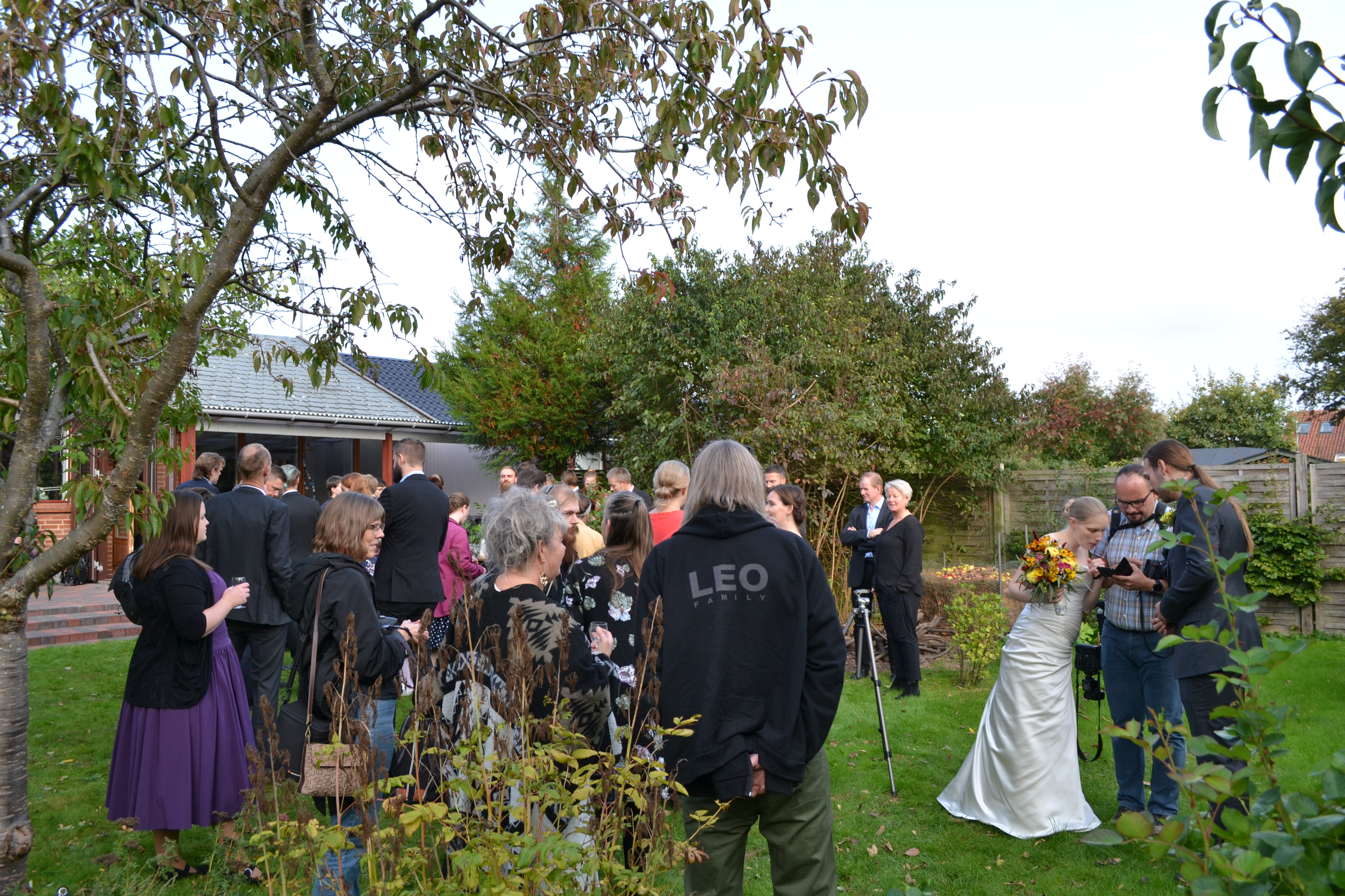 Brøndby Rådhus vil kun afholde bryllup kl. 10 på lørdage. Vielsen kommer derfor i stedet til at foregå hjemme hos Ries far Vagn. Se mere her.