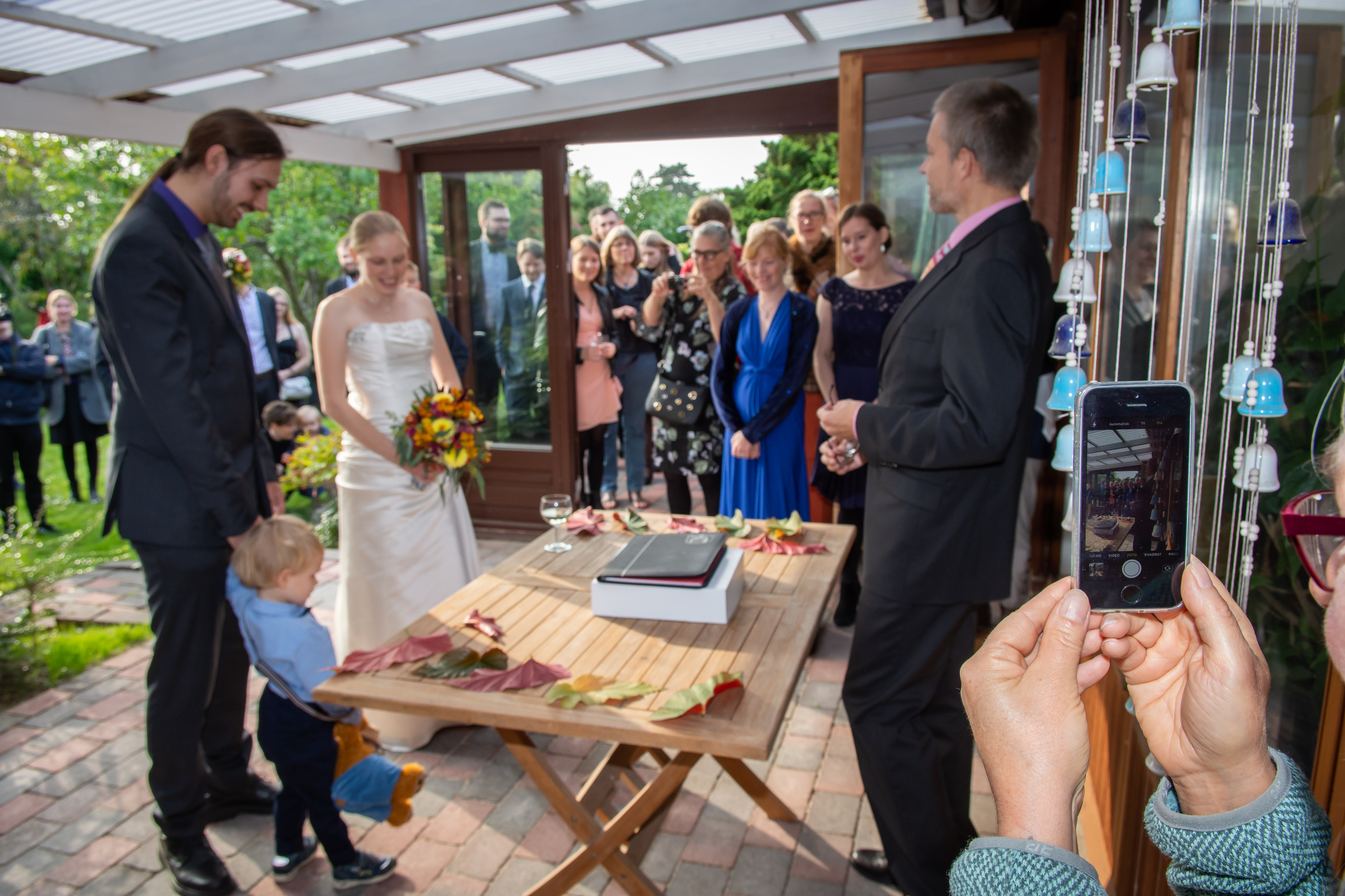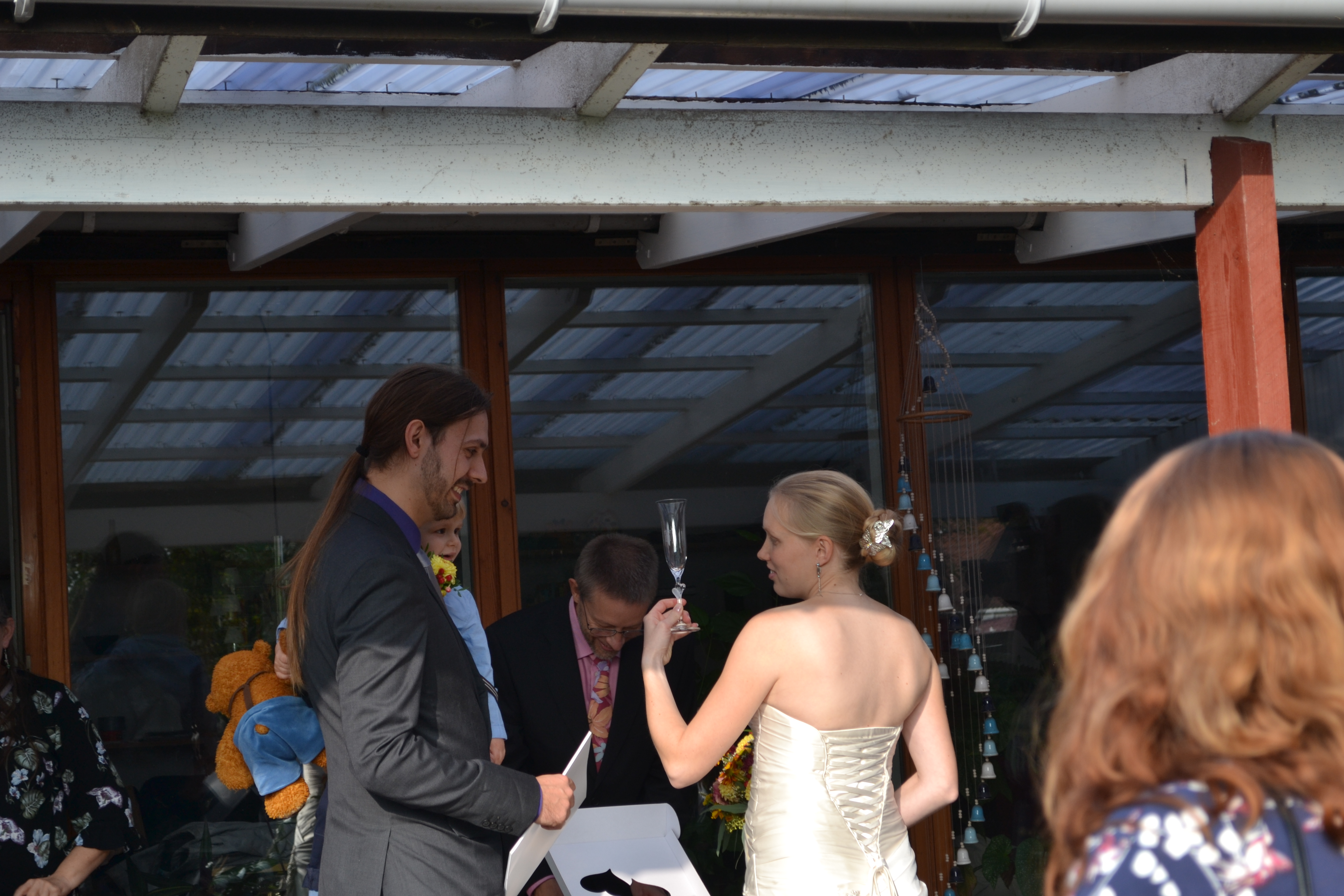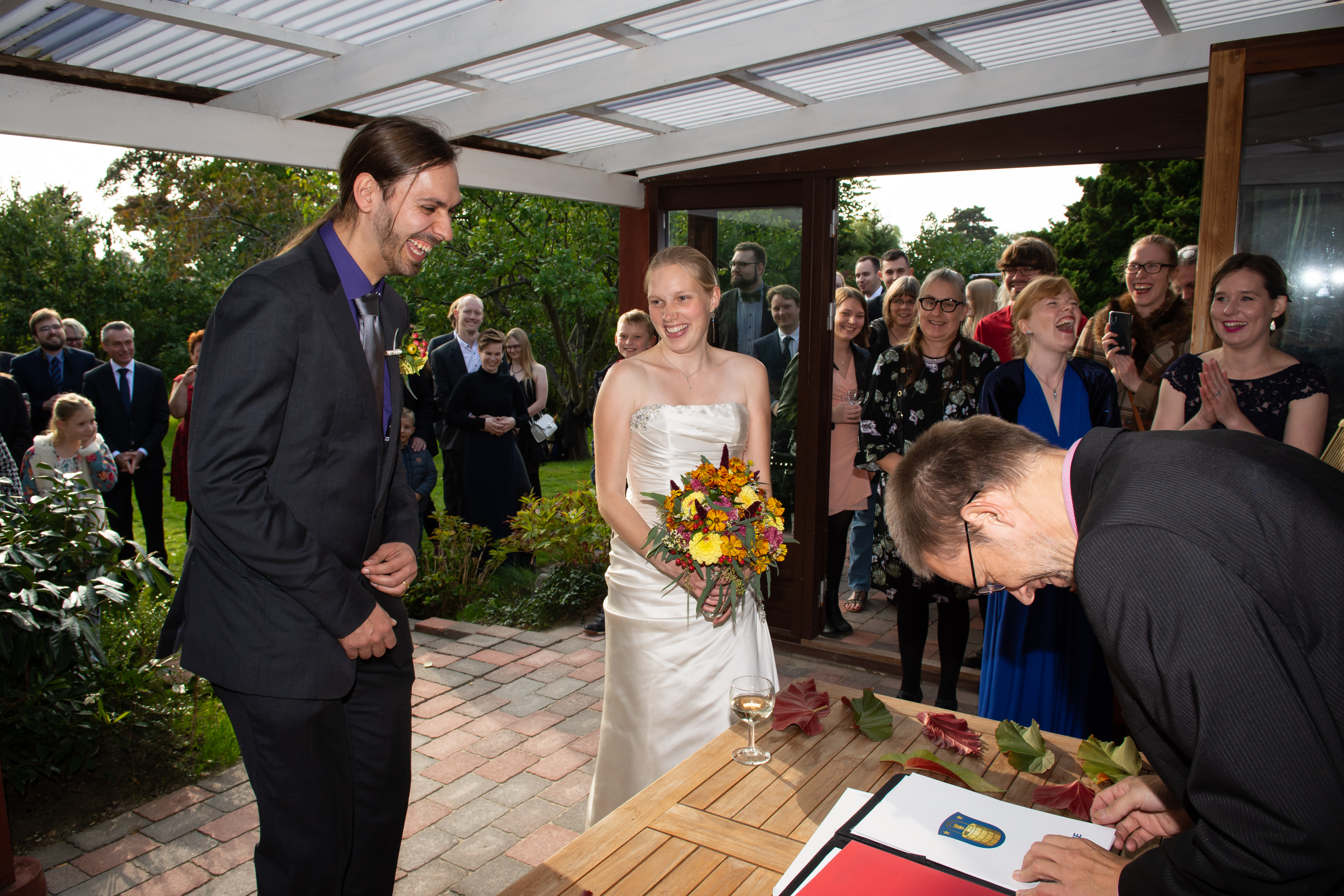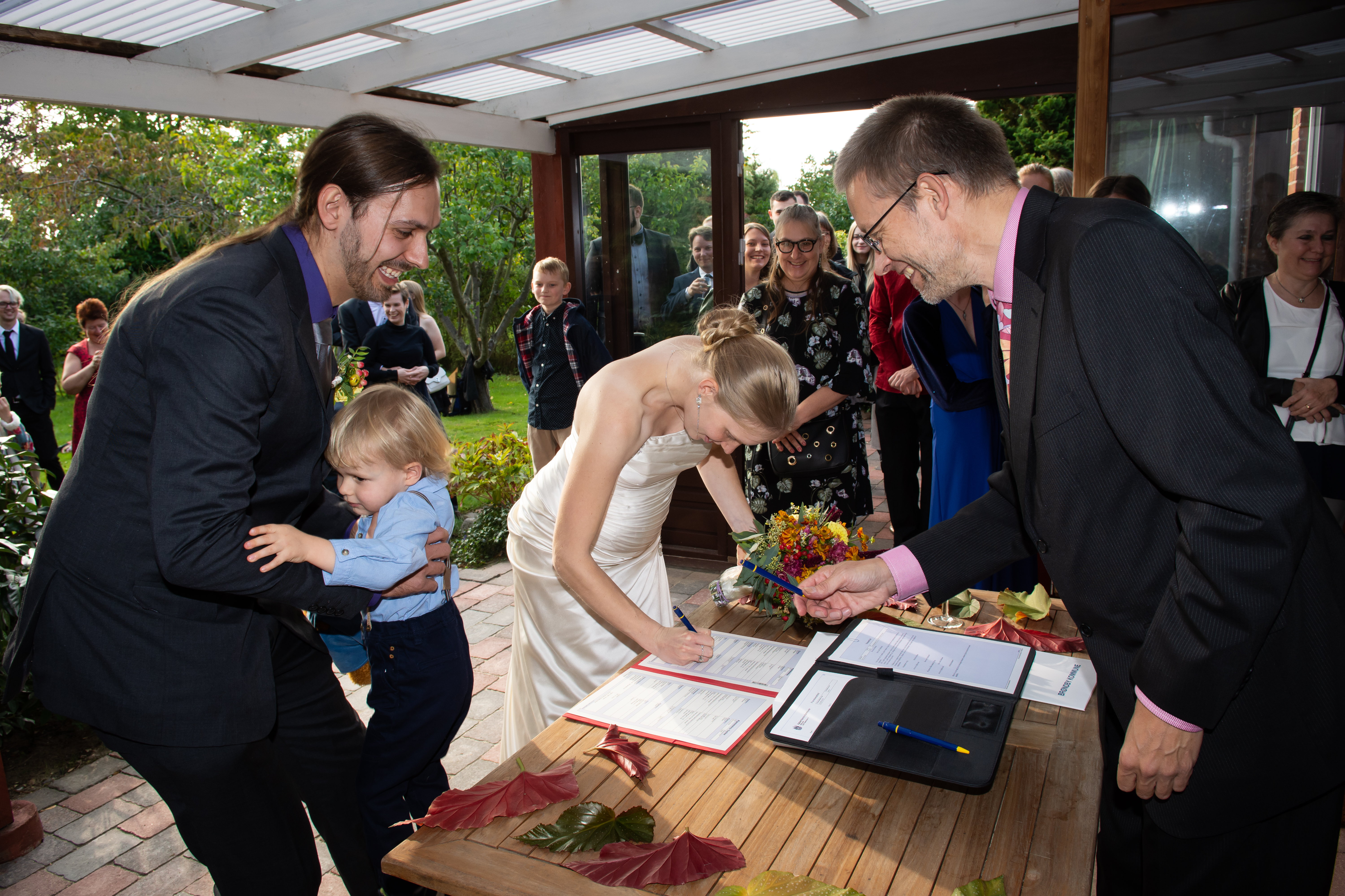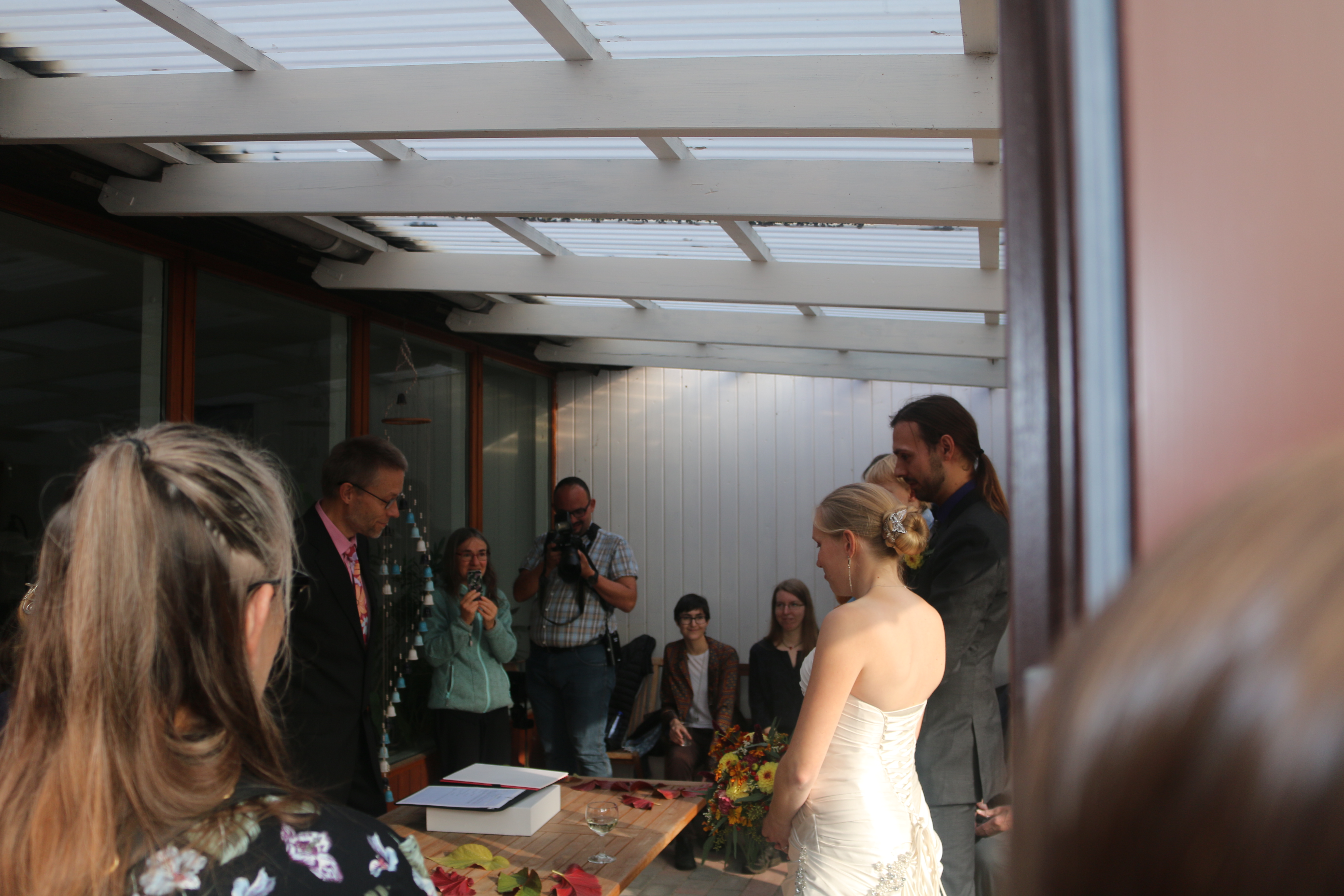 Brøndby Rådhus vil kun afholde bryllup kl. 10 på lørdage. Vielsen kommer derfor i stedet til at foregå hjemme hos Ries far Vagn. Se mere her.