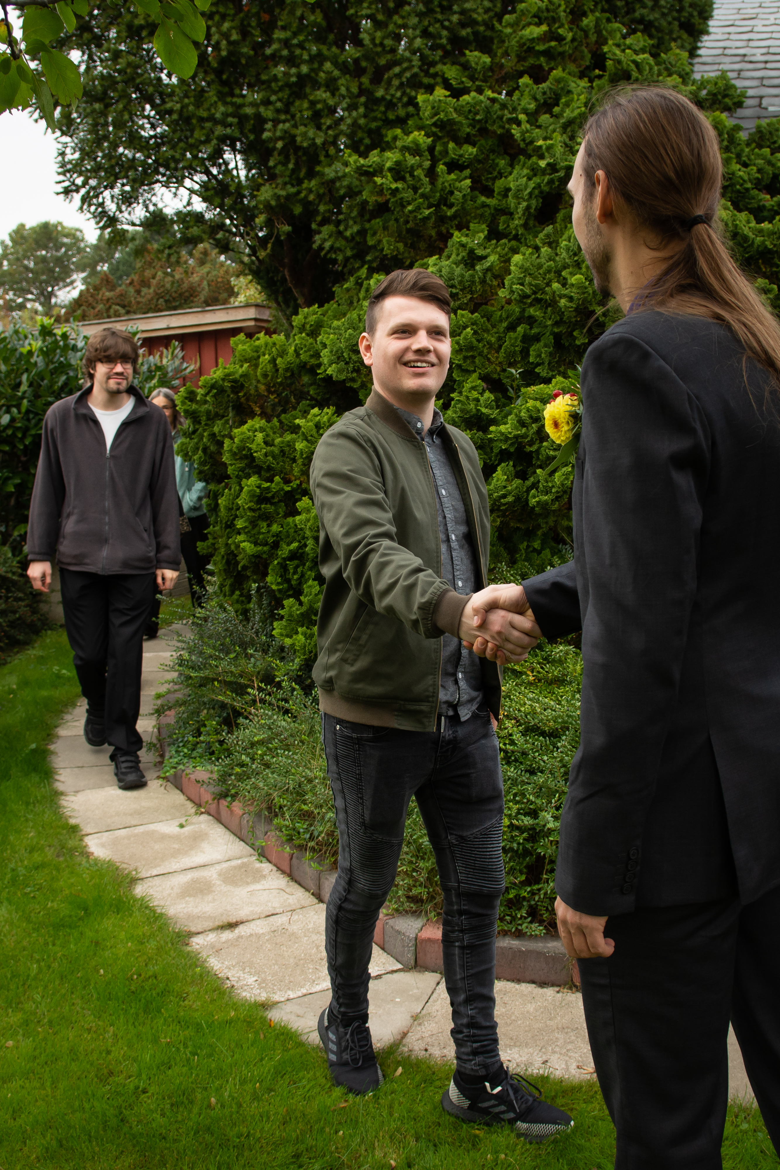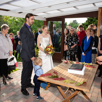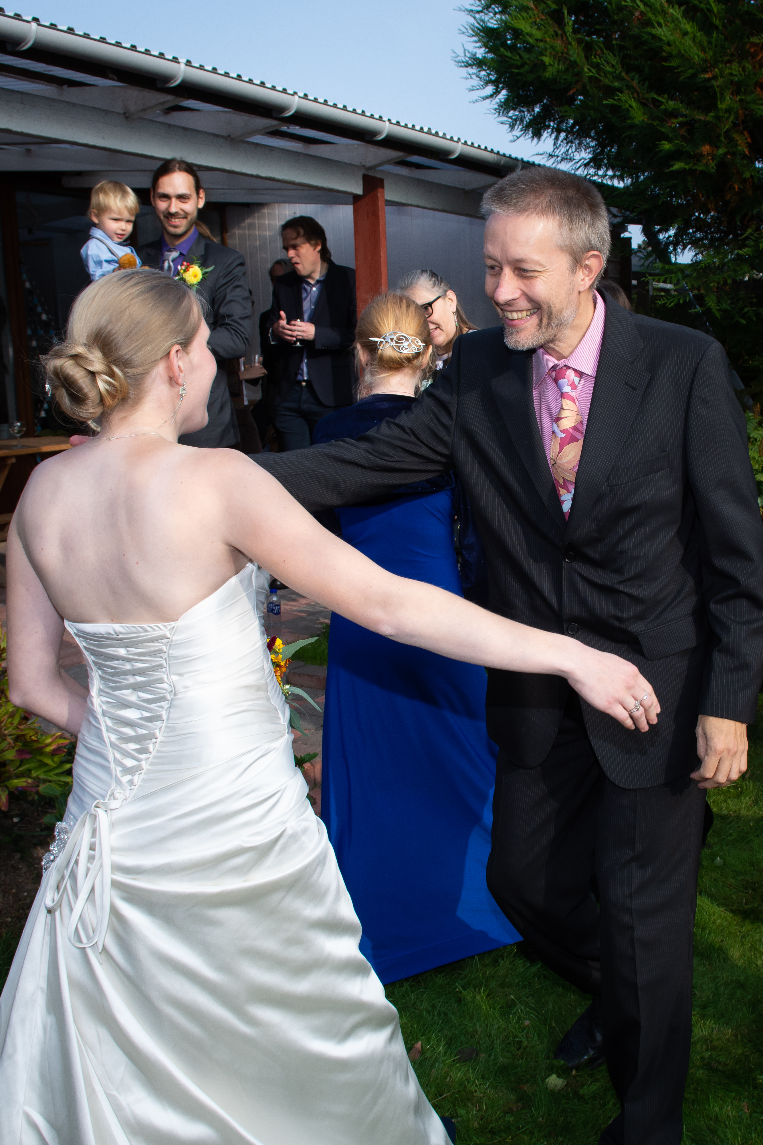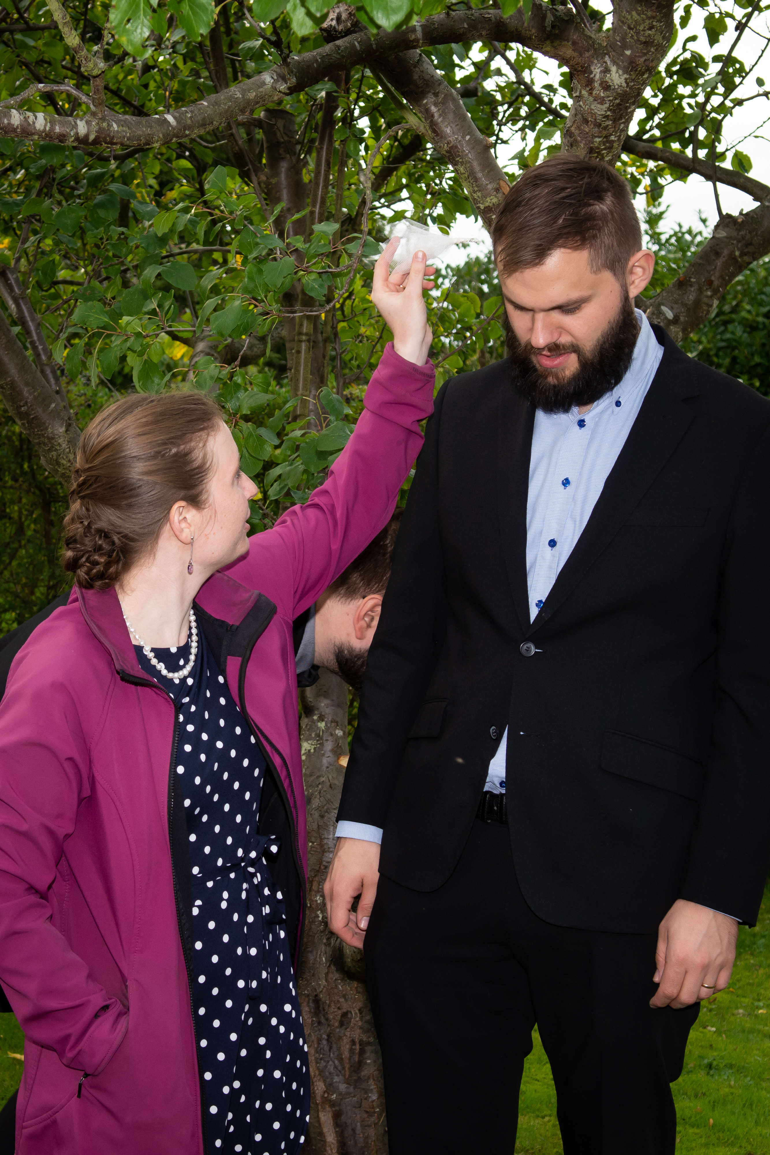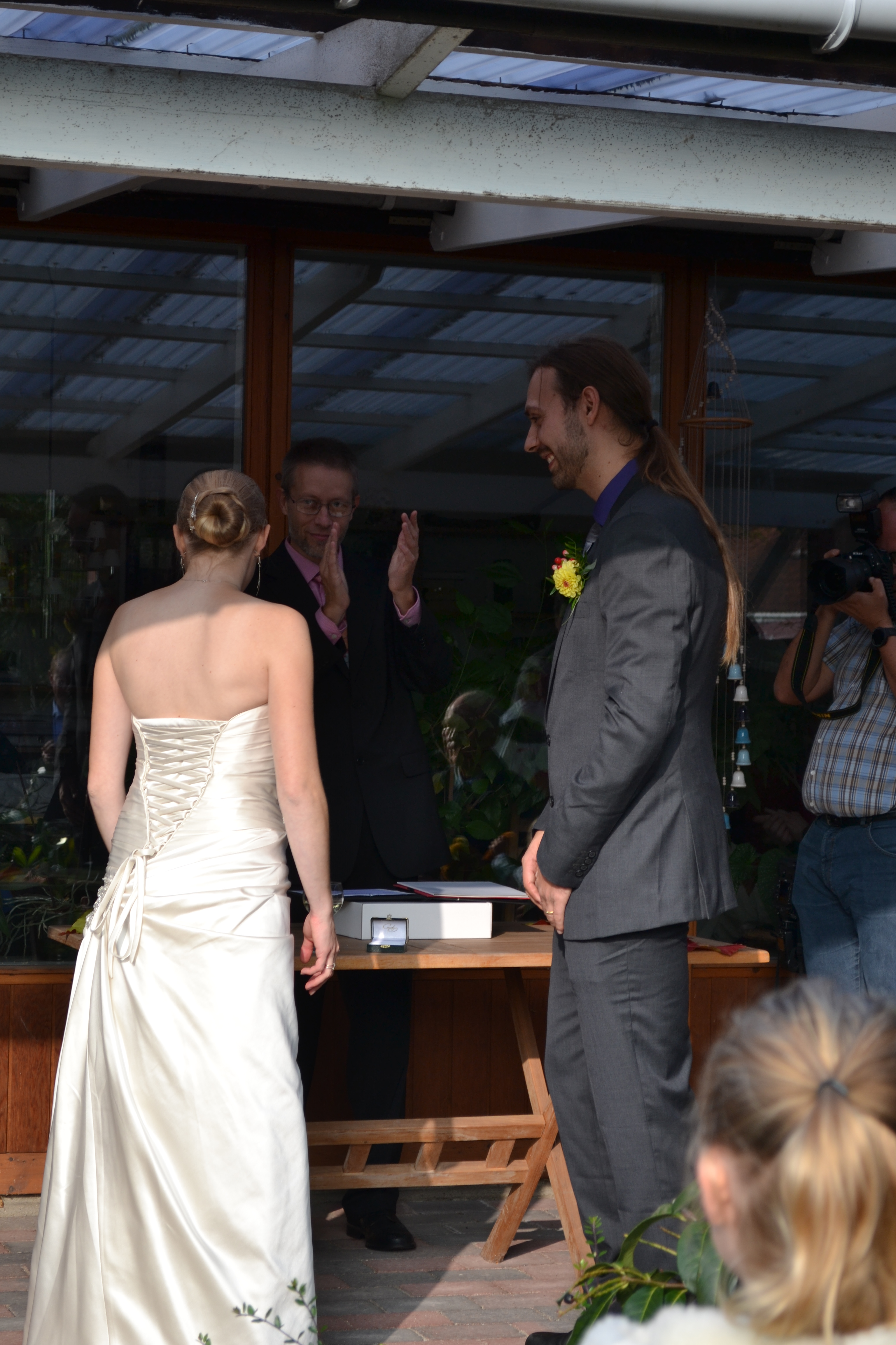 Brøndby Rådhus vil kun afholde bryllup kl. 10 på lørdage. Vielsen kommer derfor i stedet til at foregå hjemme hos Ries far Vagn. Se mere her.