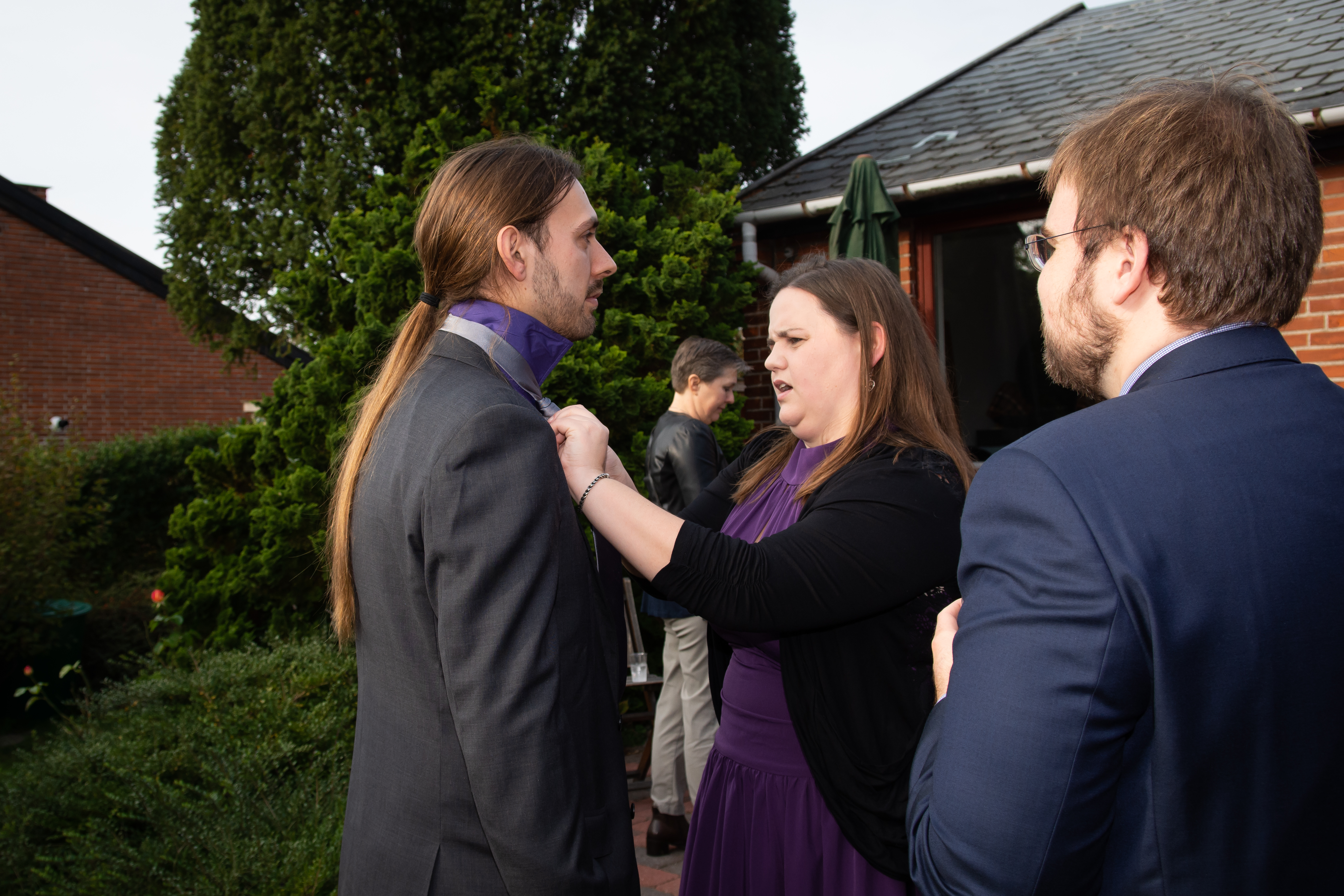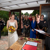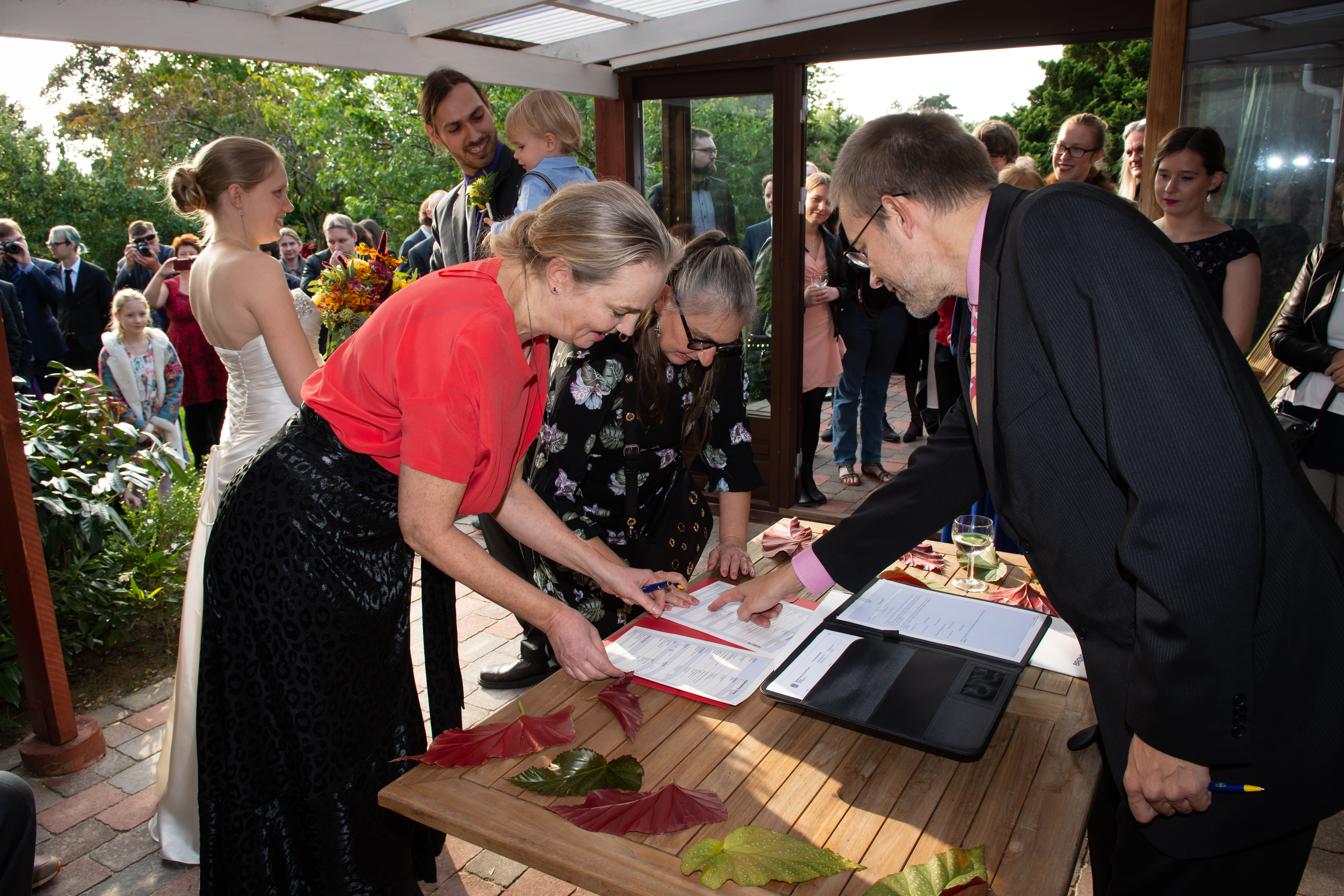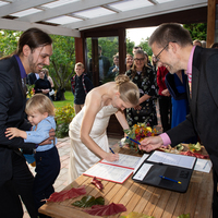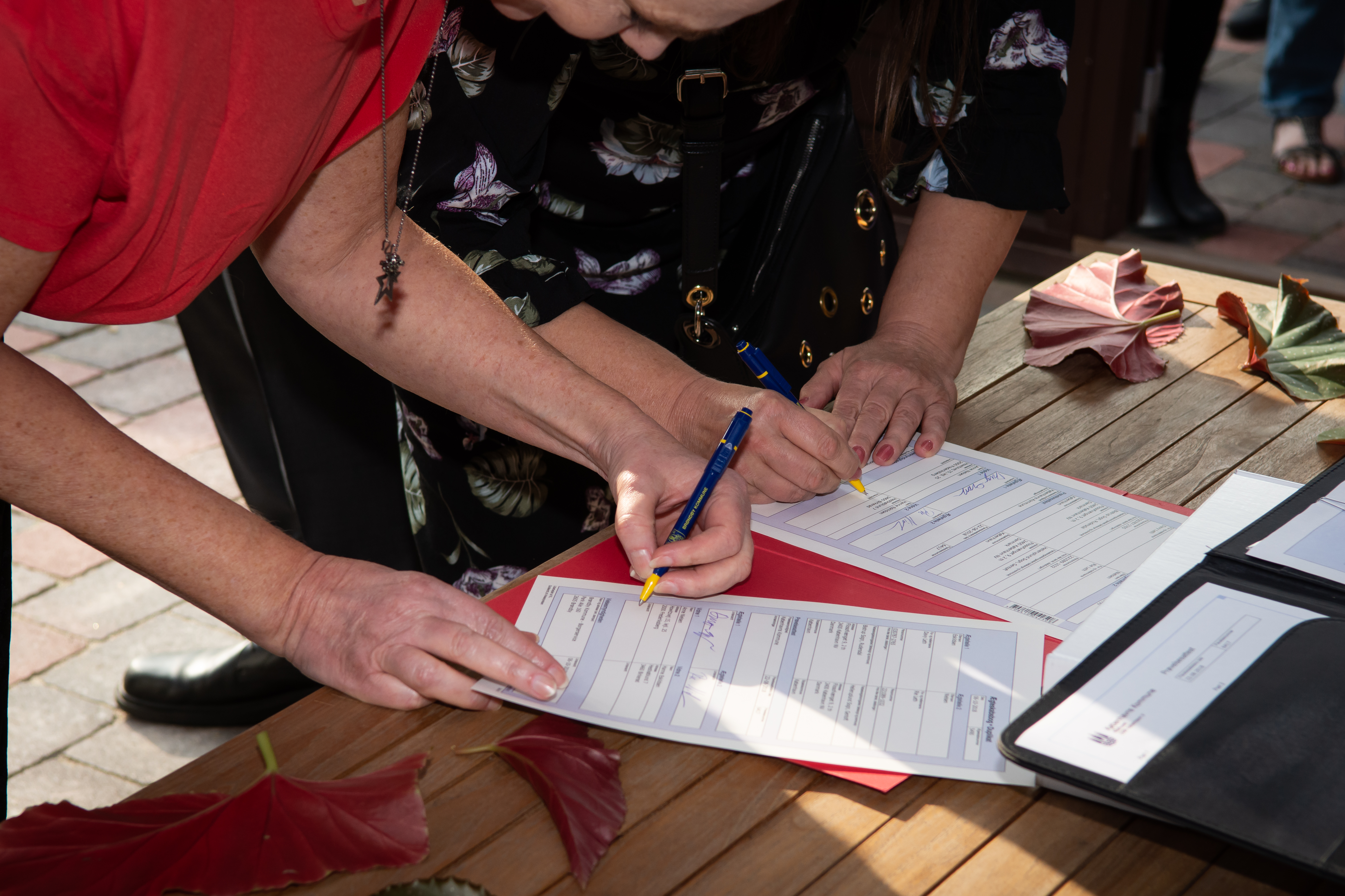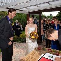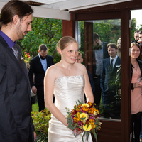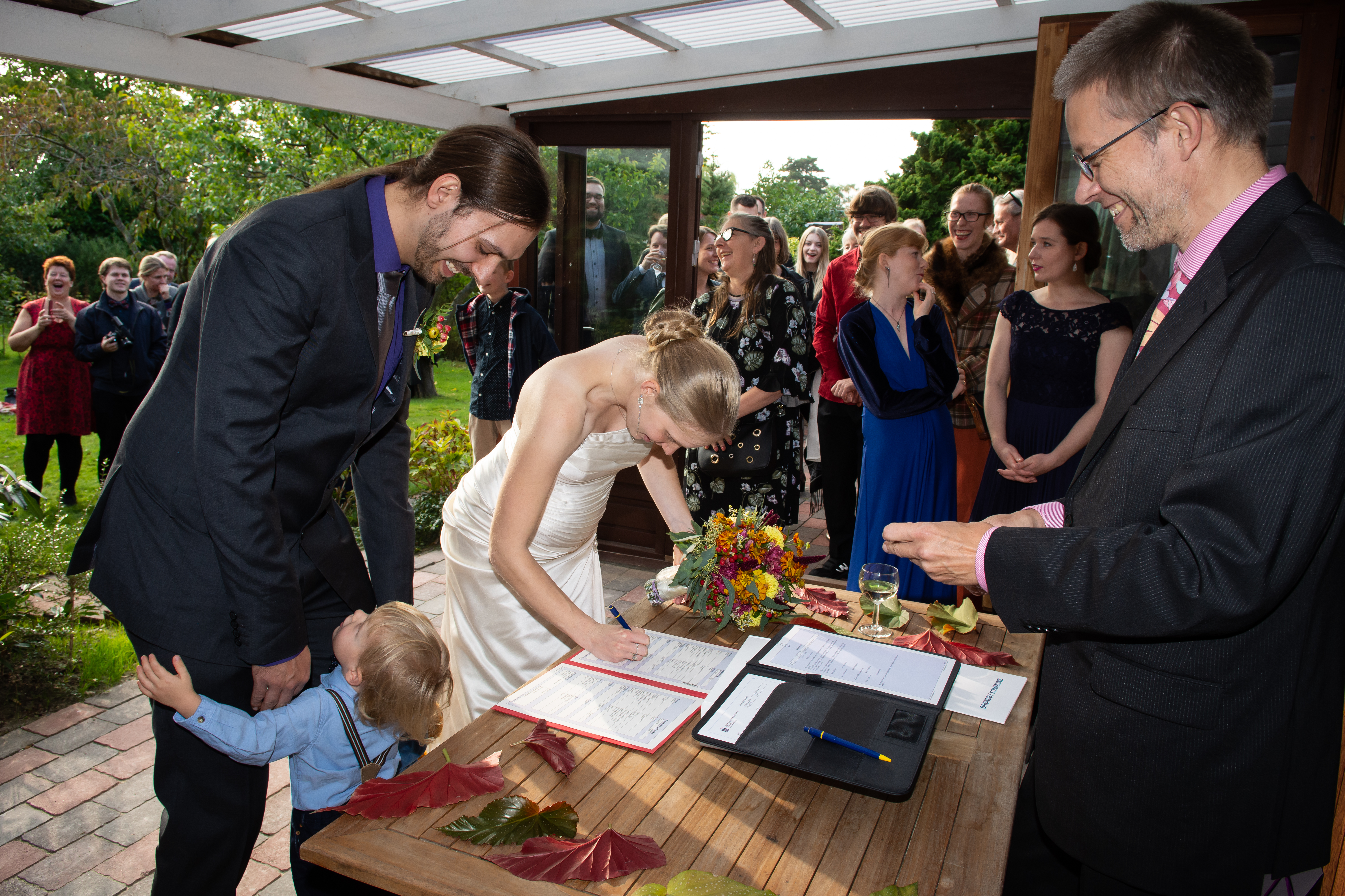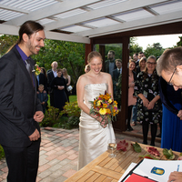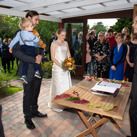 Brøndby Rådhus vil kun afholde bryllup kl. 10 på lørdage. Vielsen kommer derfor i stedet til at foregå hjemme hos Ries far Vagn. Se mere her.