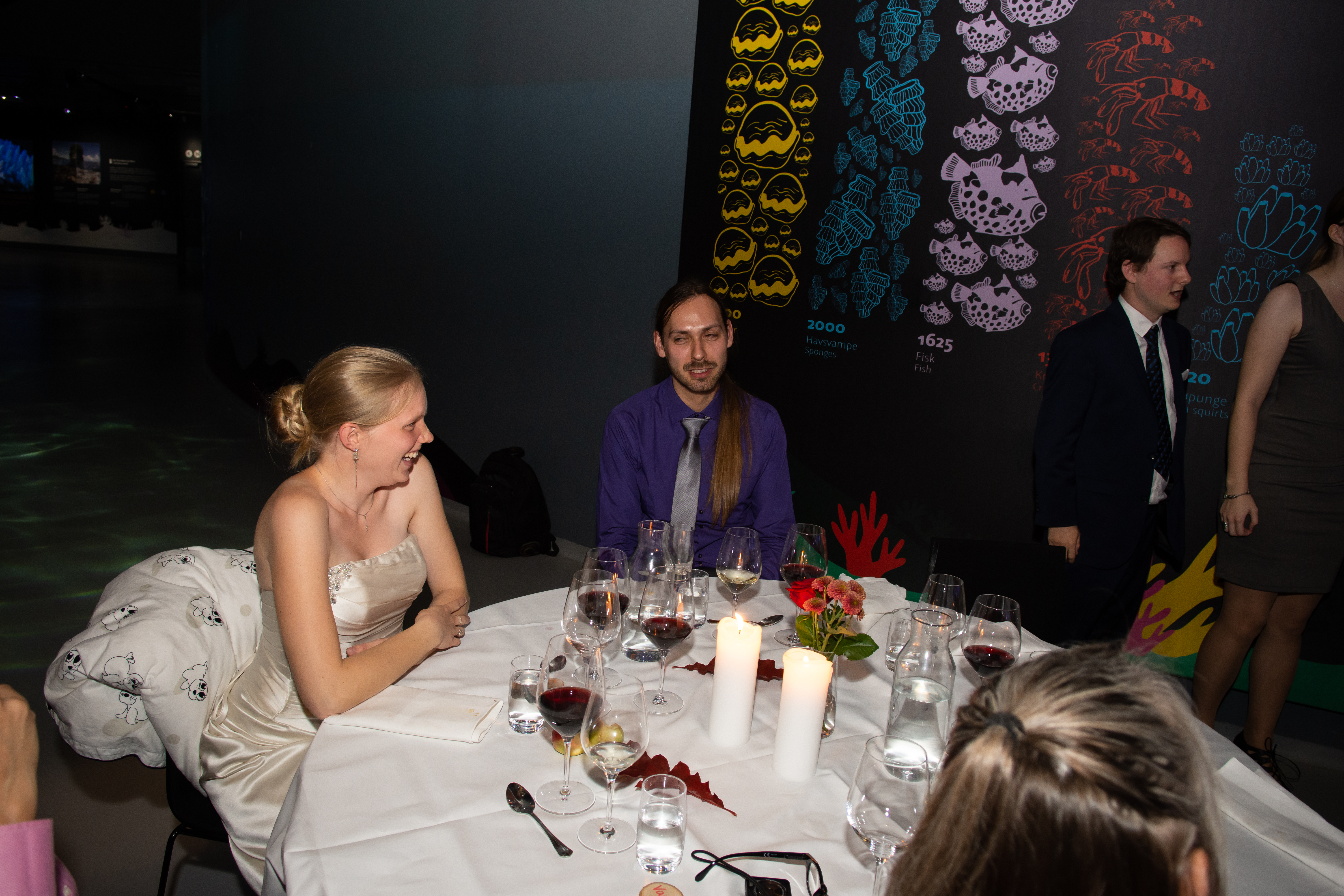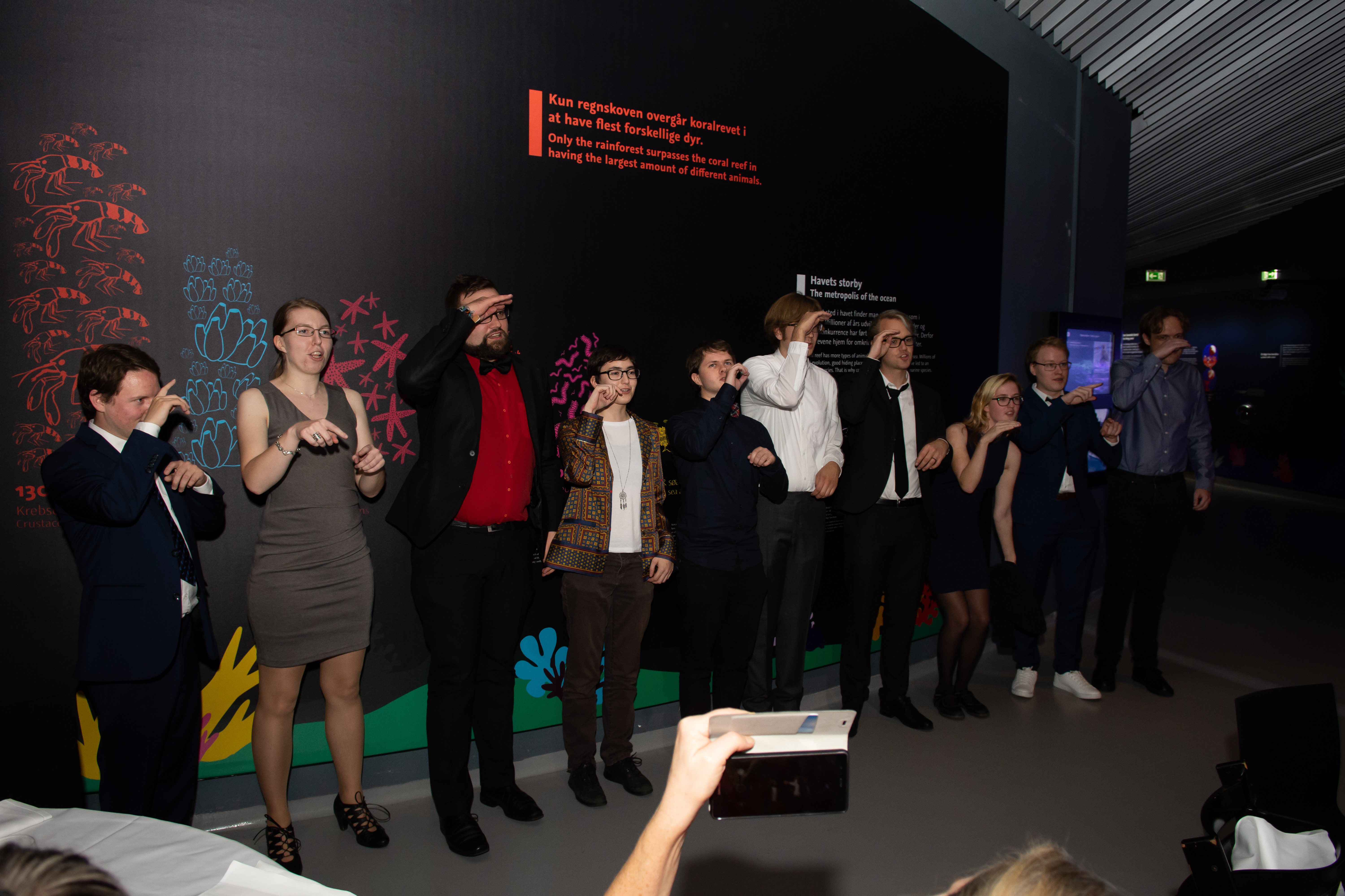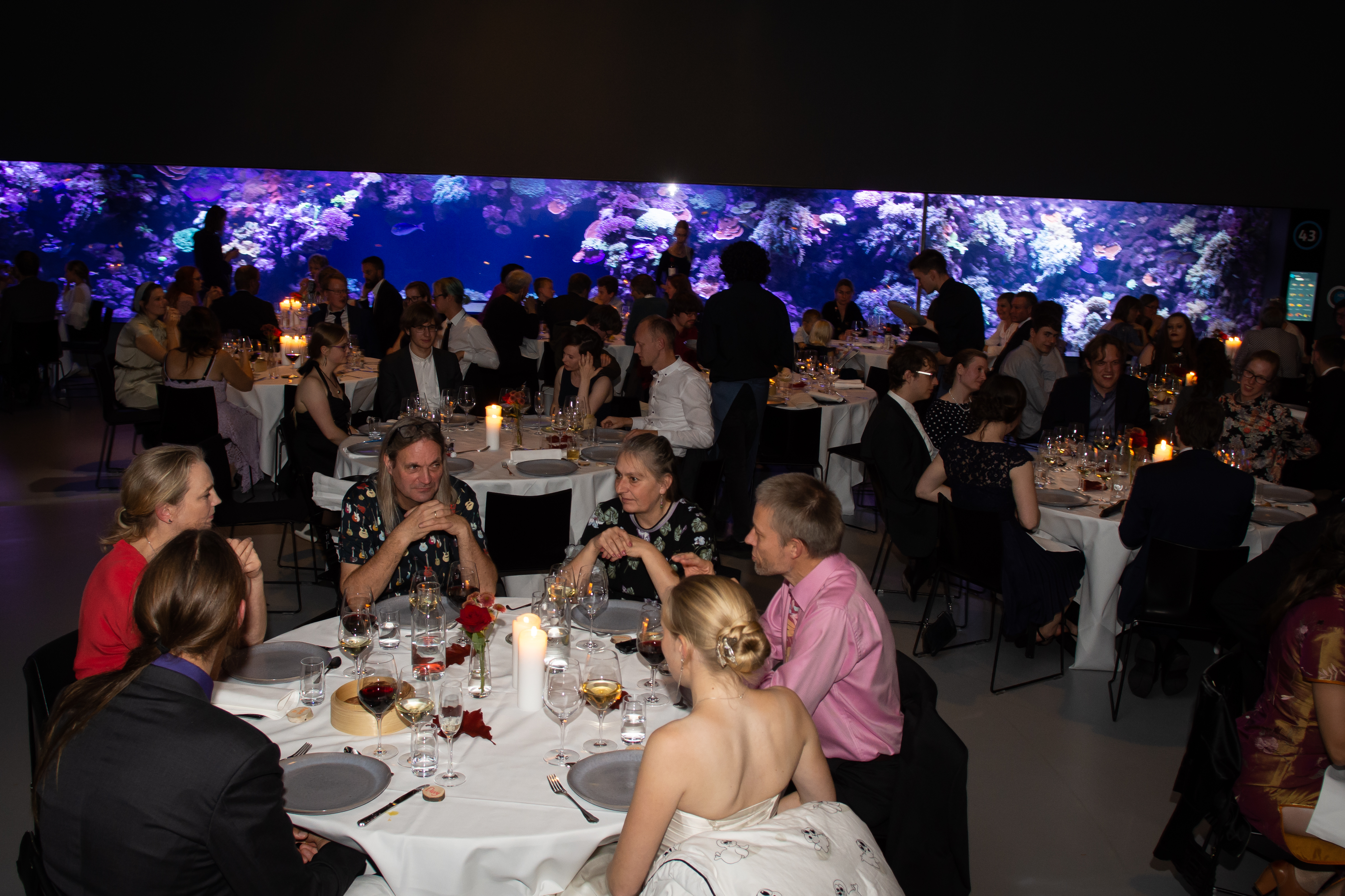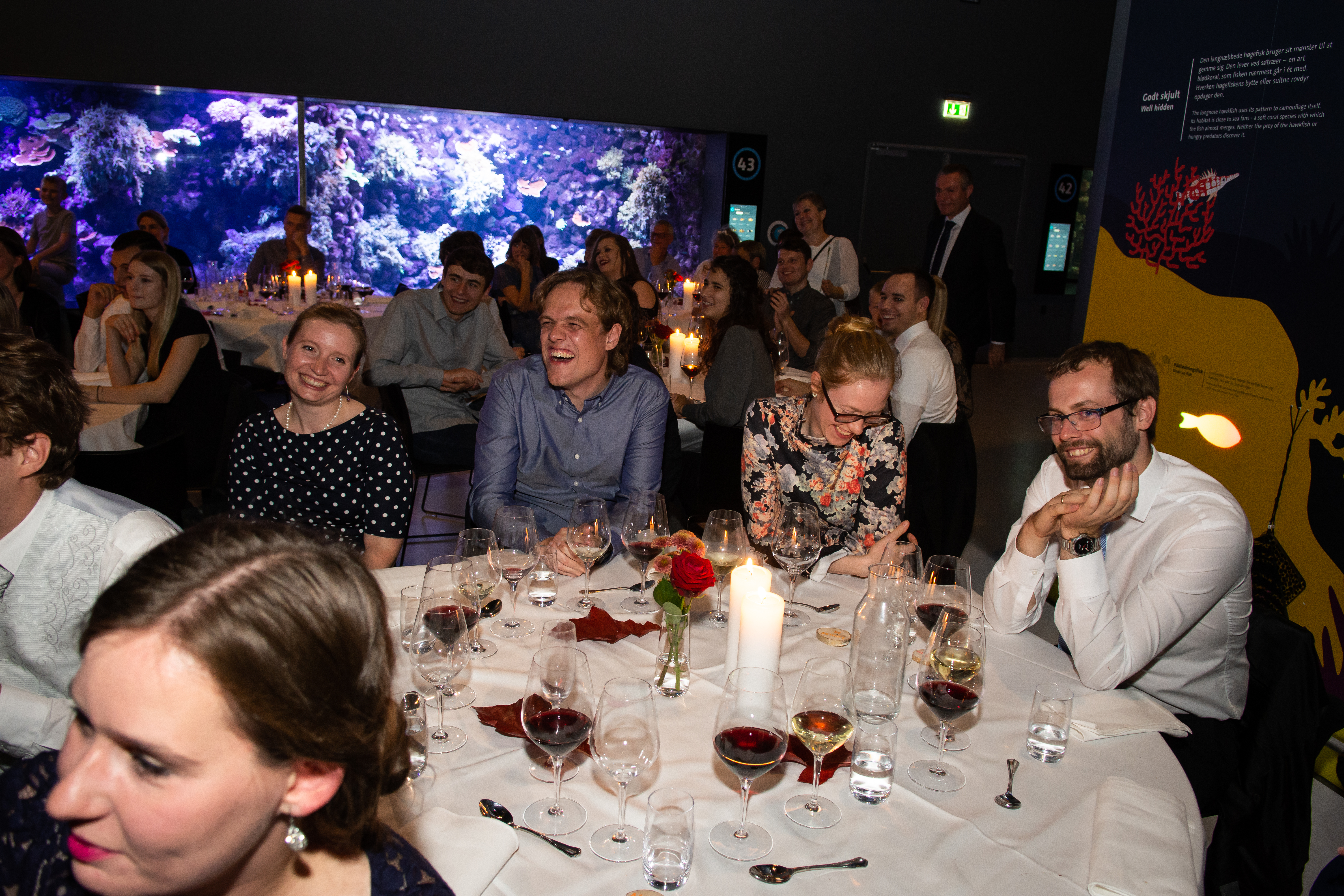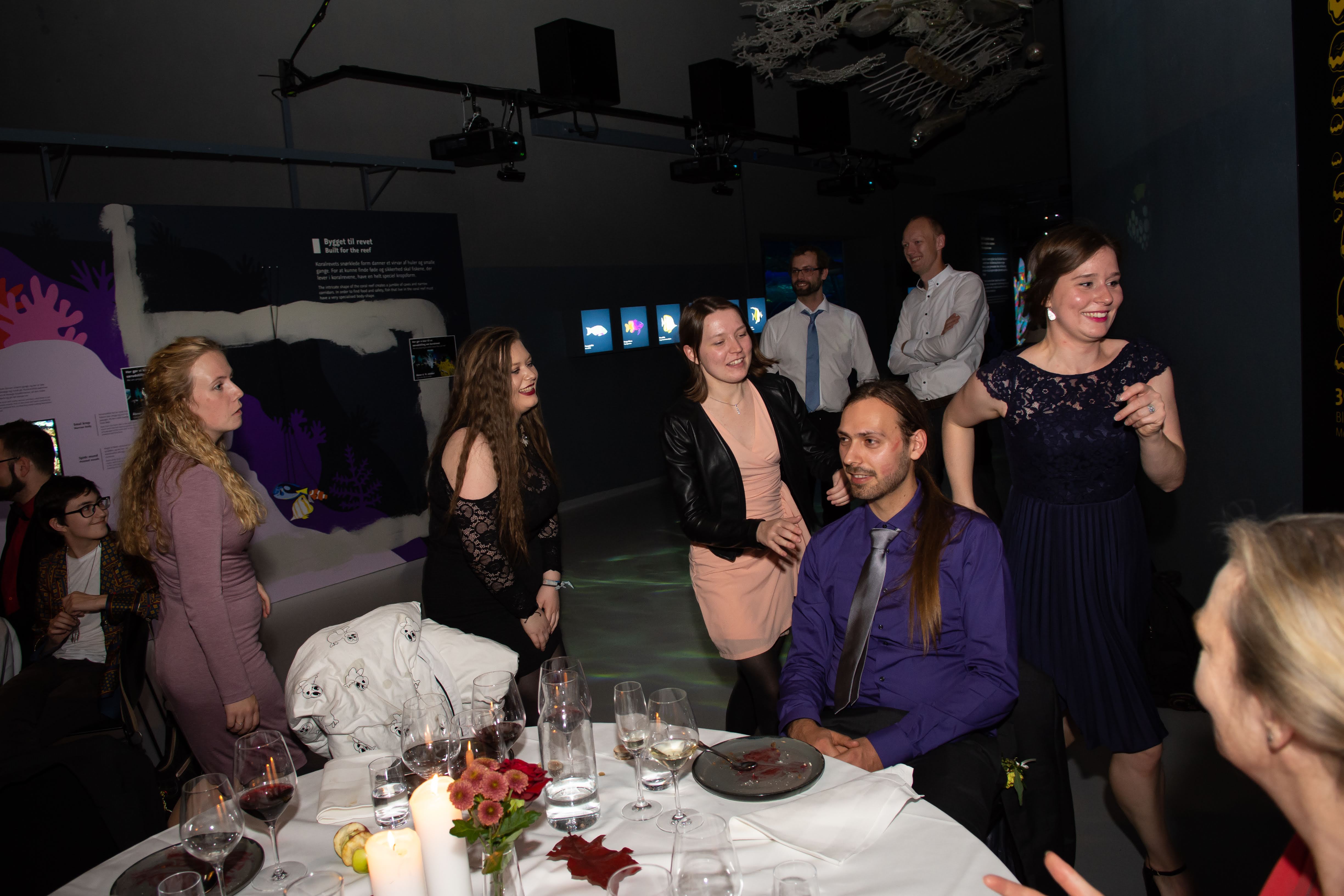 Festen forgår på Den Blå Planet. De holder åbent for deres normale besøgende indtil kl. 17 og derefter skal de nå at gøre klar til festen. Derfor vil det ikke være muligt at komme ind før kl. , hvor vi vil starte ud med velkomstdrinks.