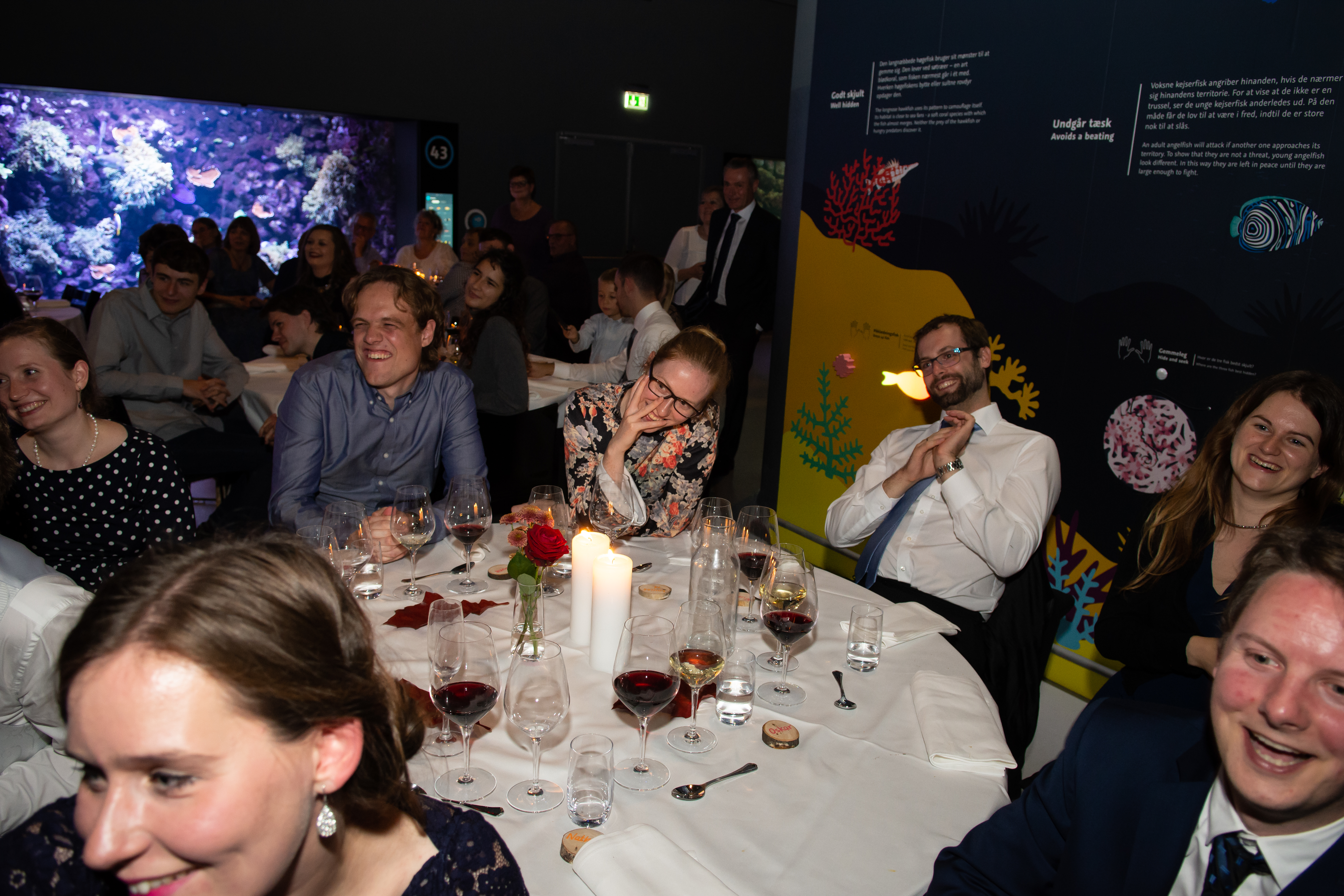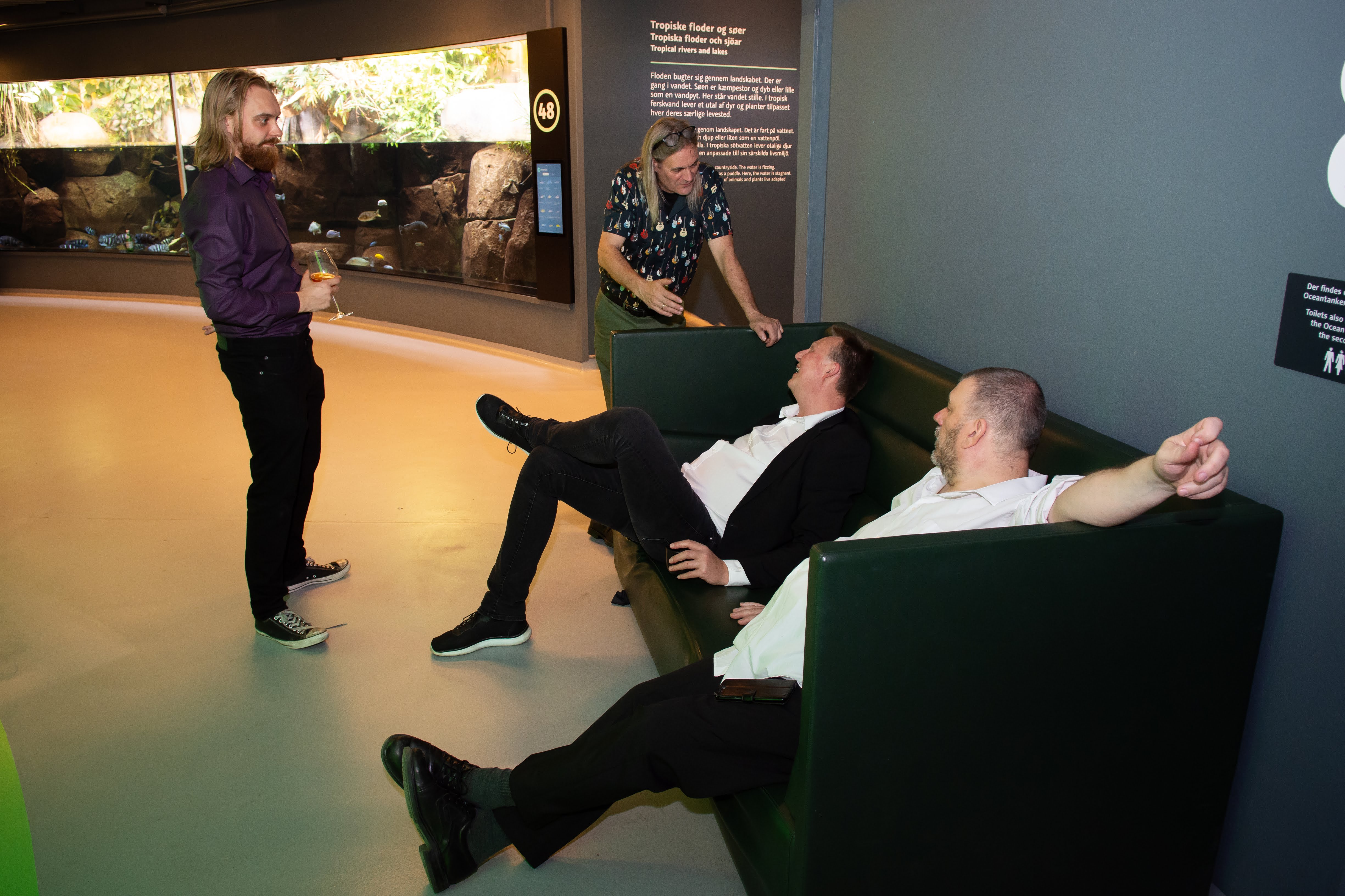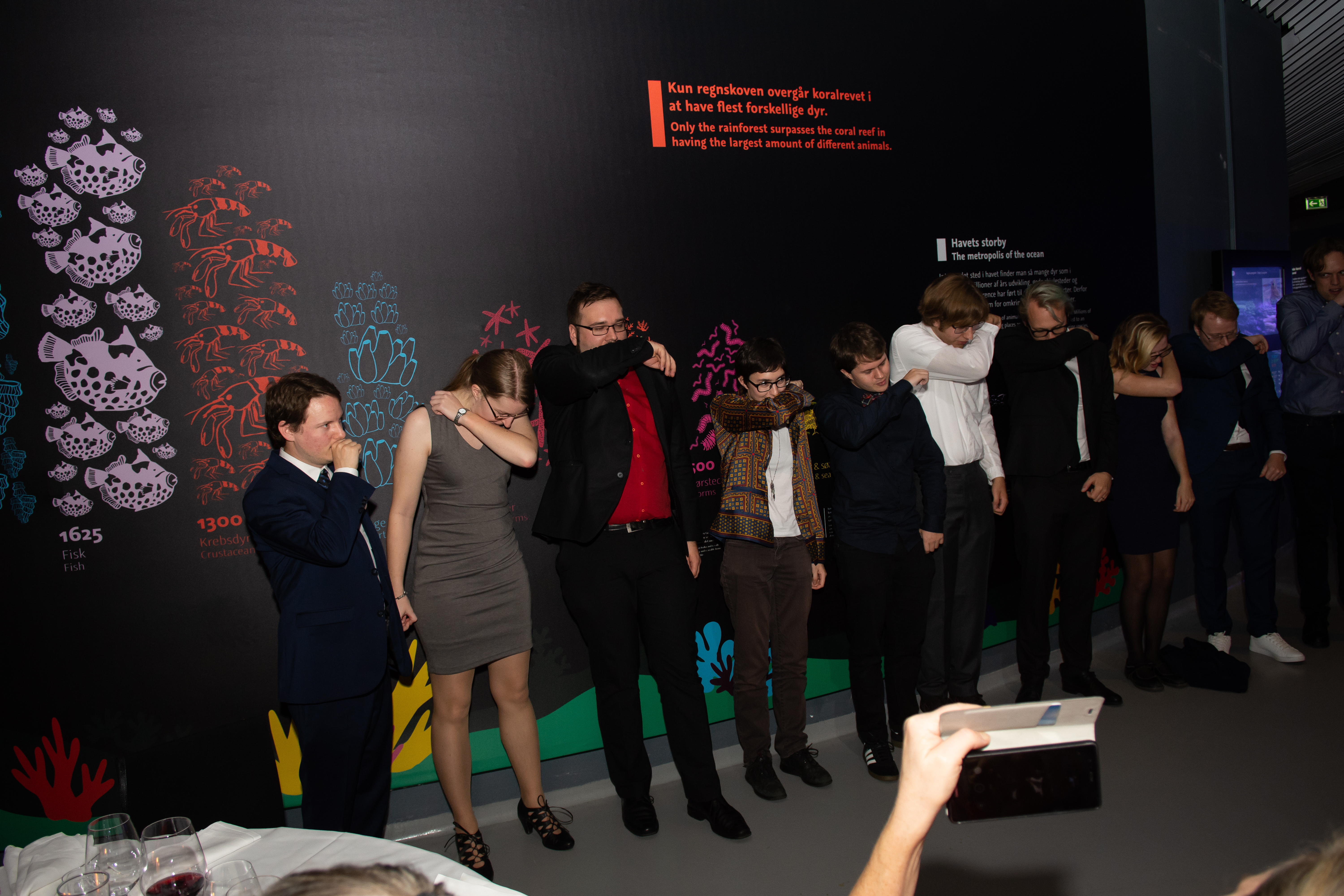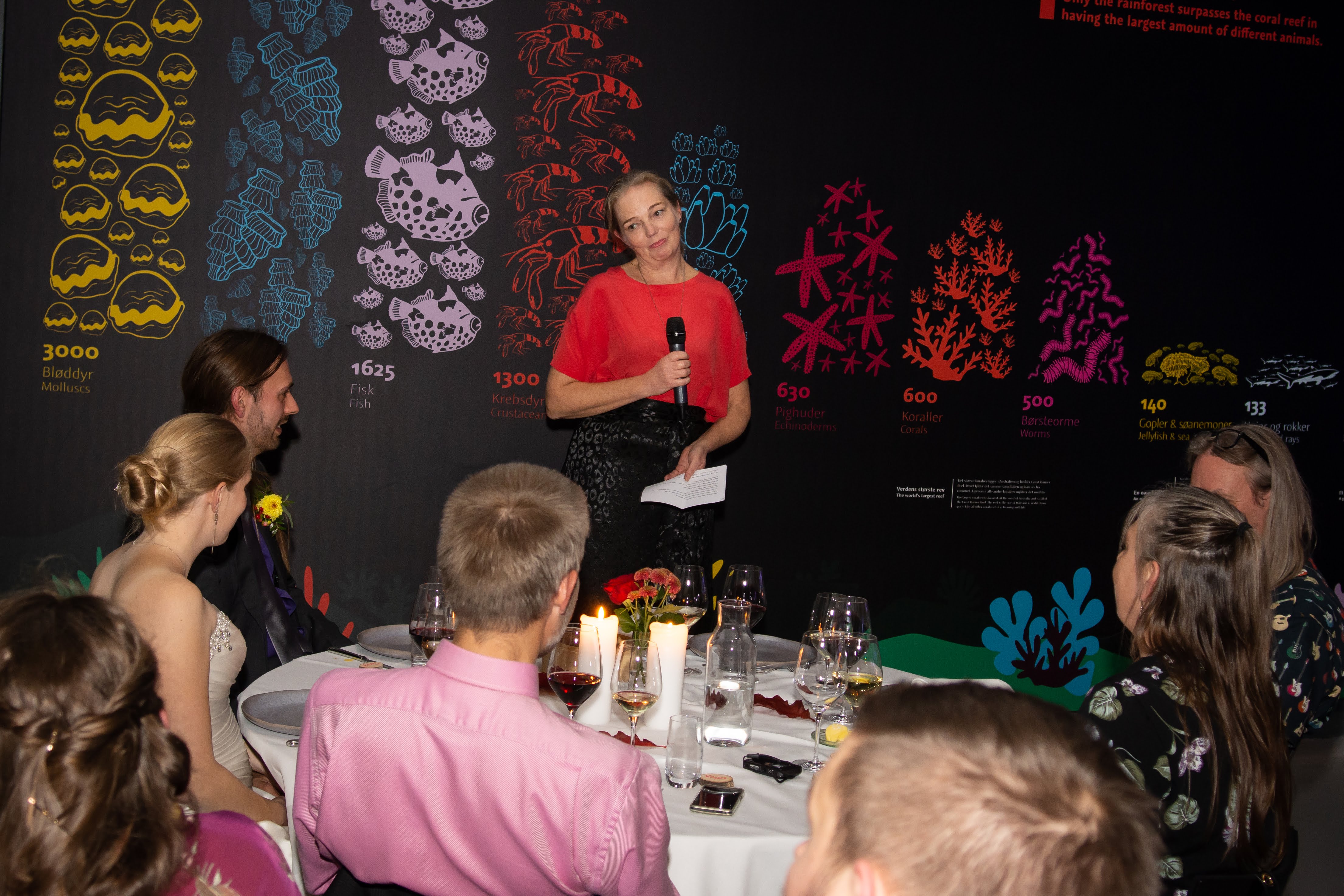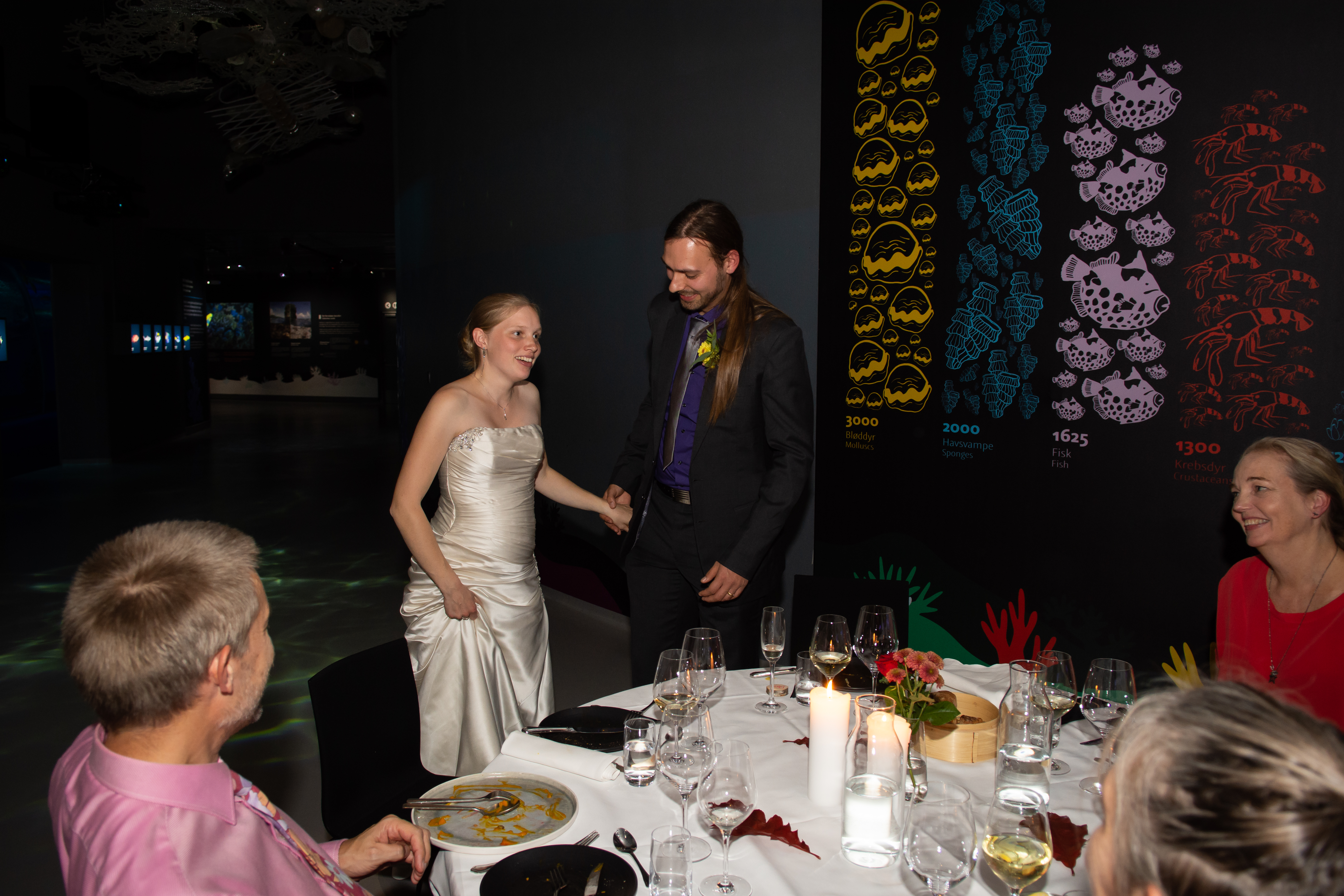 Festen forgår på Den Blå Planet. De holder åbent for deres normale besøgende indtil kl. 17 og derefter skal de nå at gøre klar til festen. Derfor vil det ikke være muligt at komme ind før kl. , hvor vi vil starte ud med velkomstdrinks.