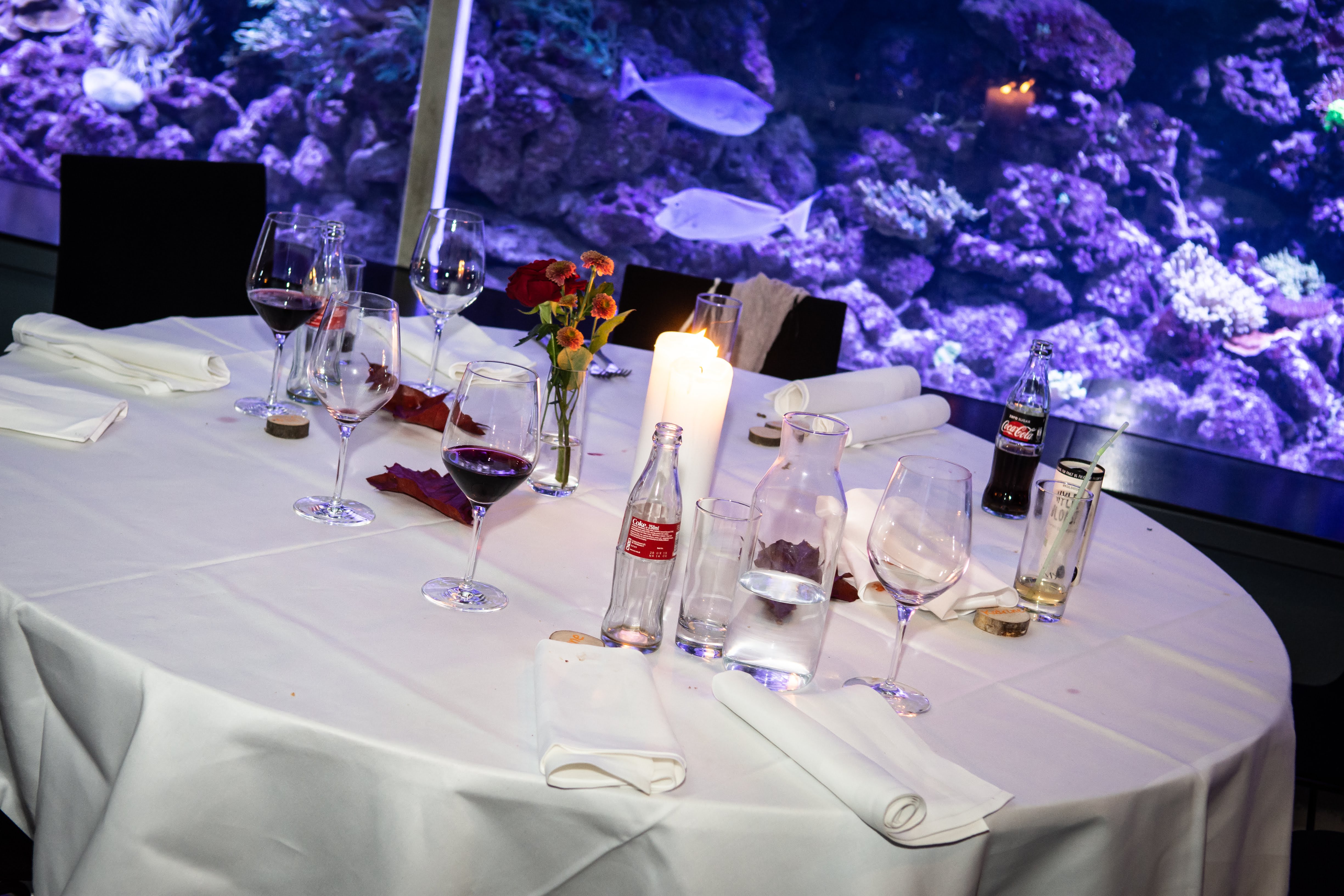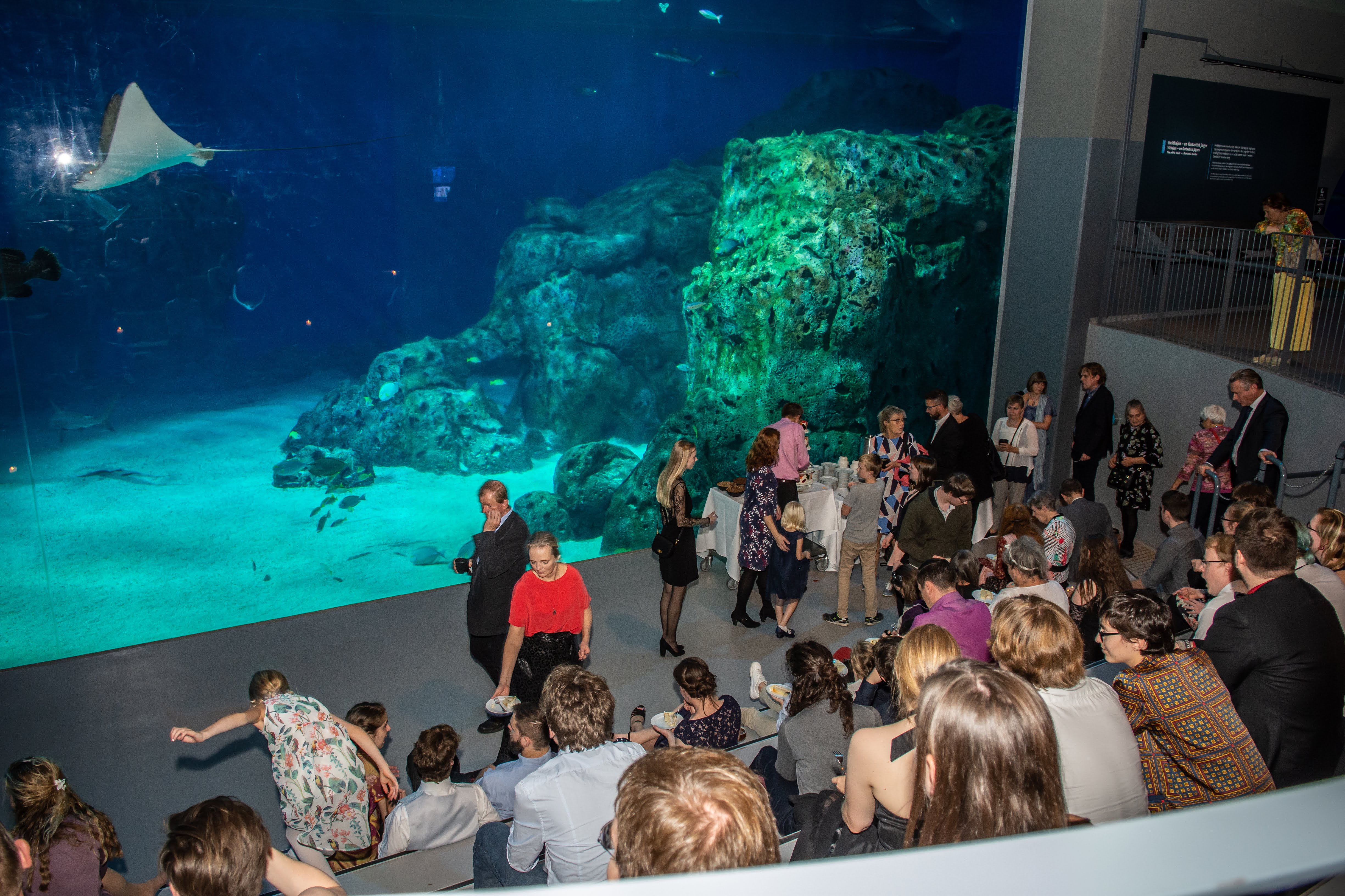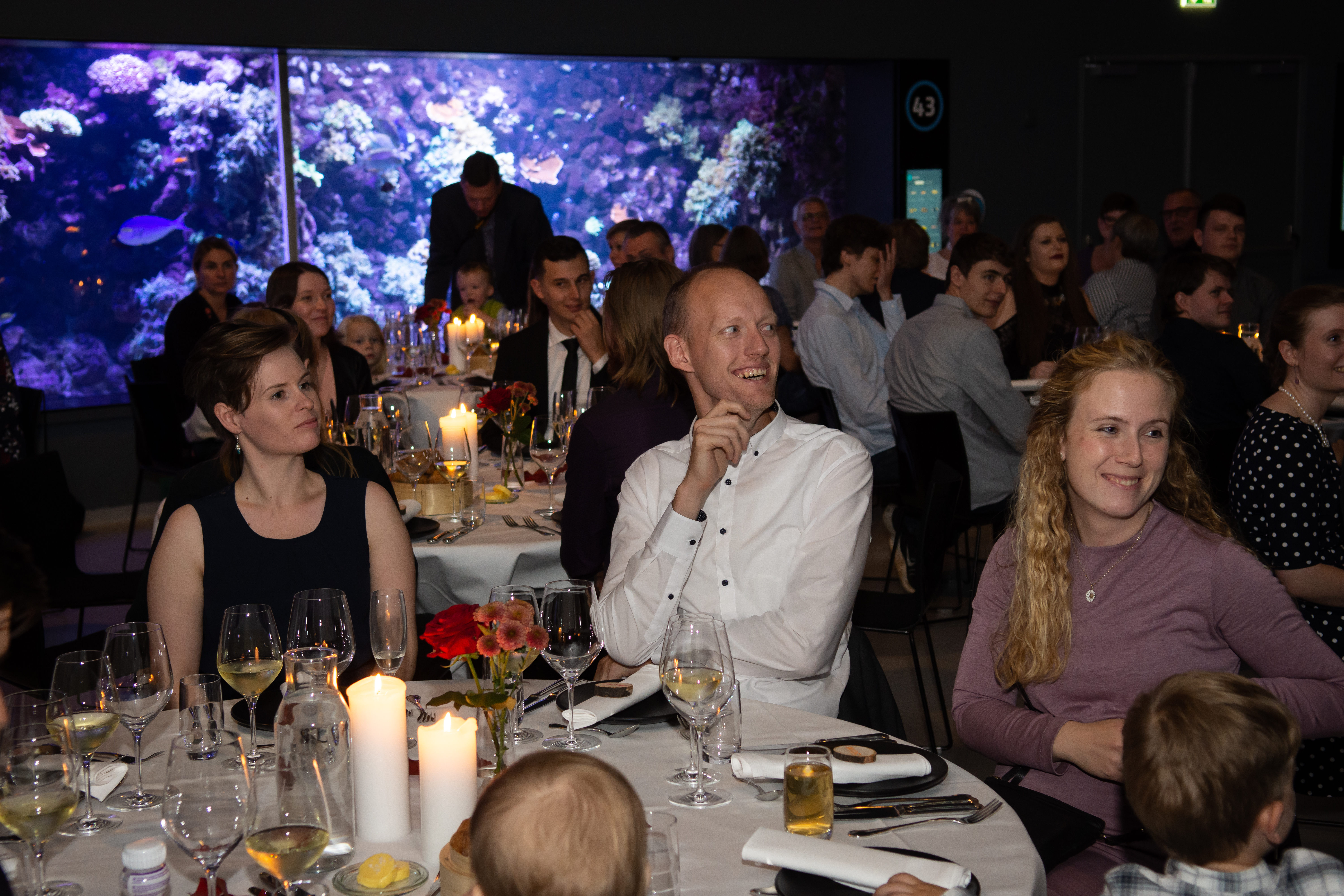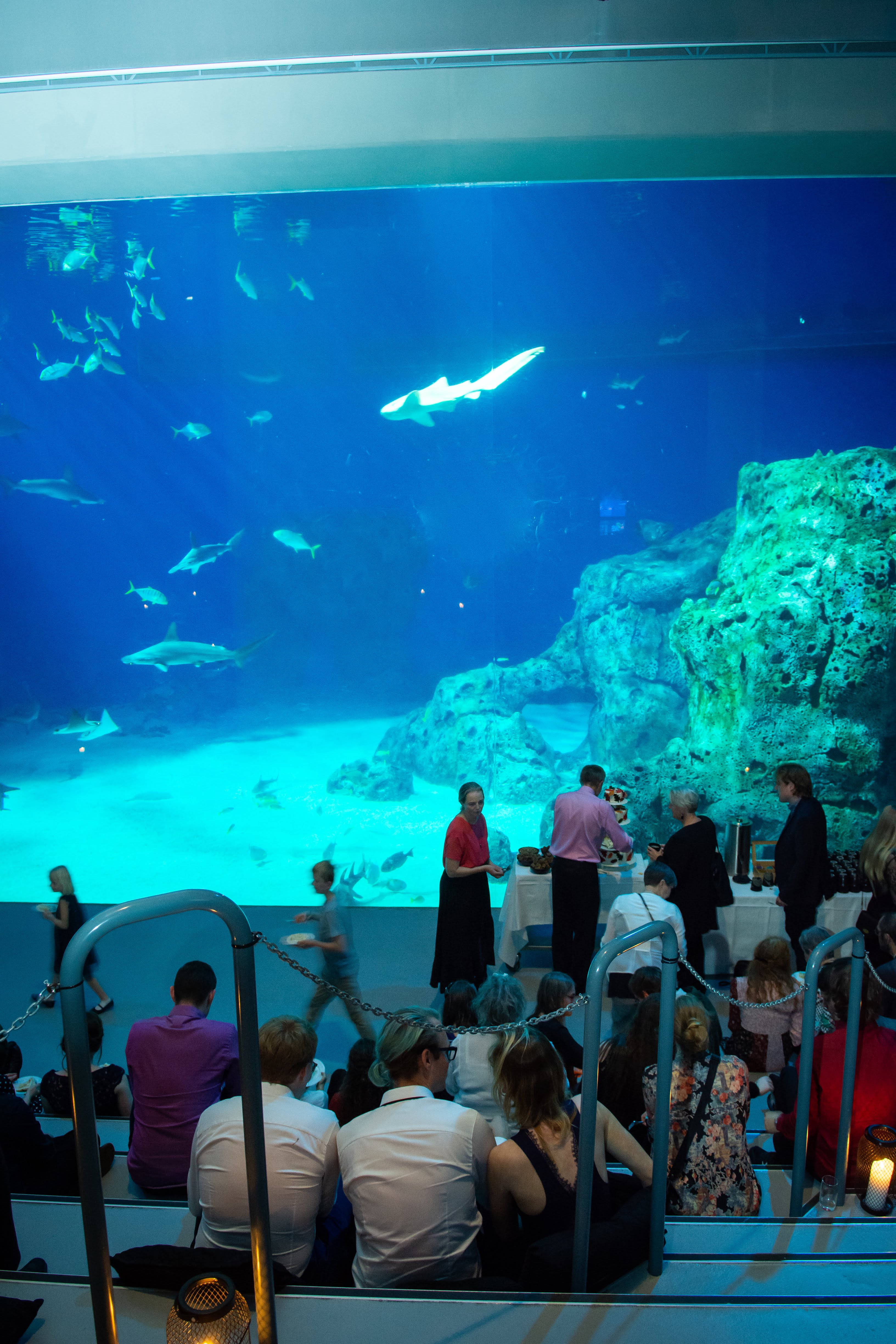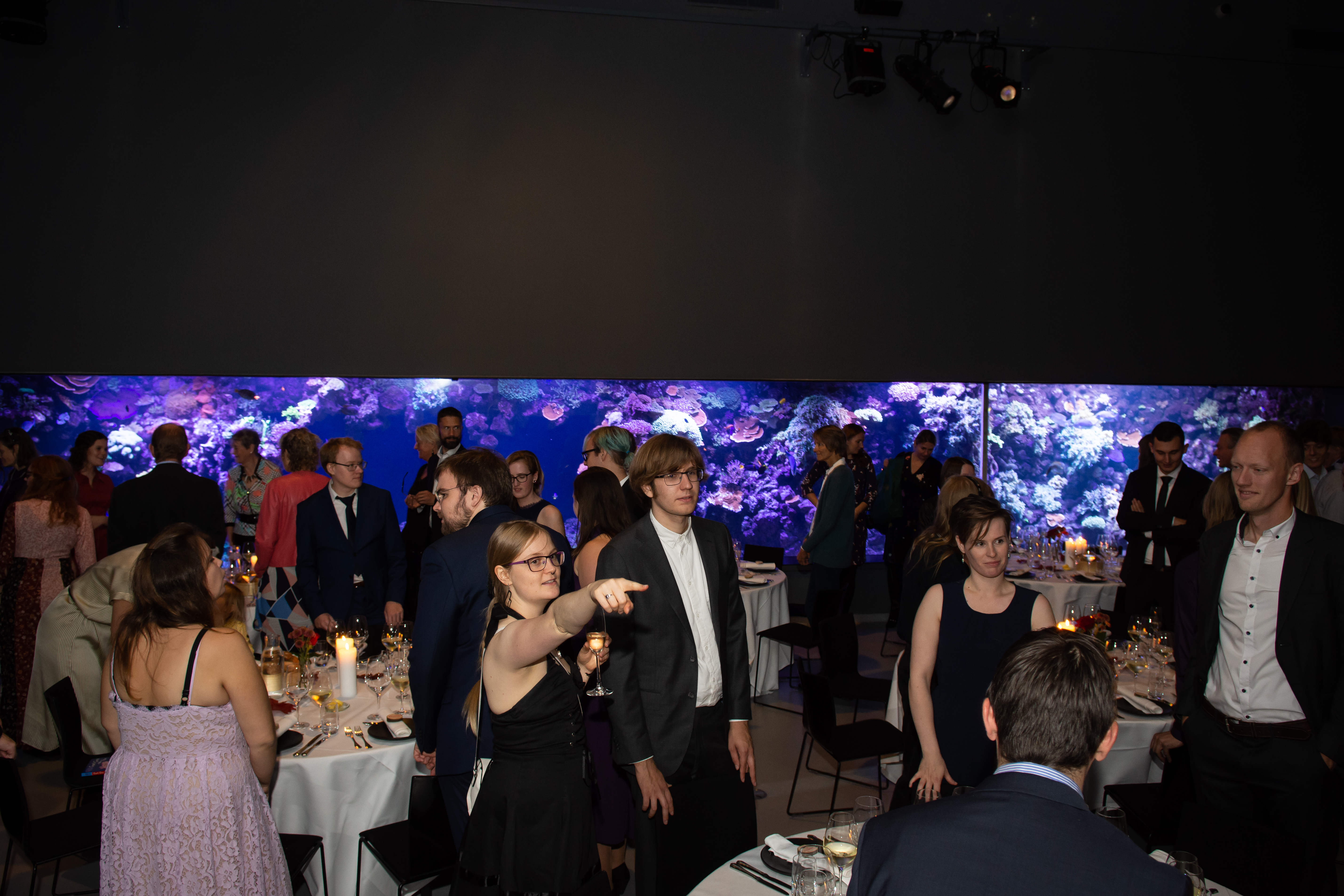 Festen forgår på Den Blå Planet. De holder åbent for deres normale besøgende indtil kl. 17 og derefter skal de nå at gøre klar til festen. Derfor vil det ikke være muligt at komme ind før kl. , hvor vi vil starte ud med velkomstdrinks.