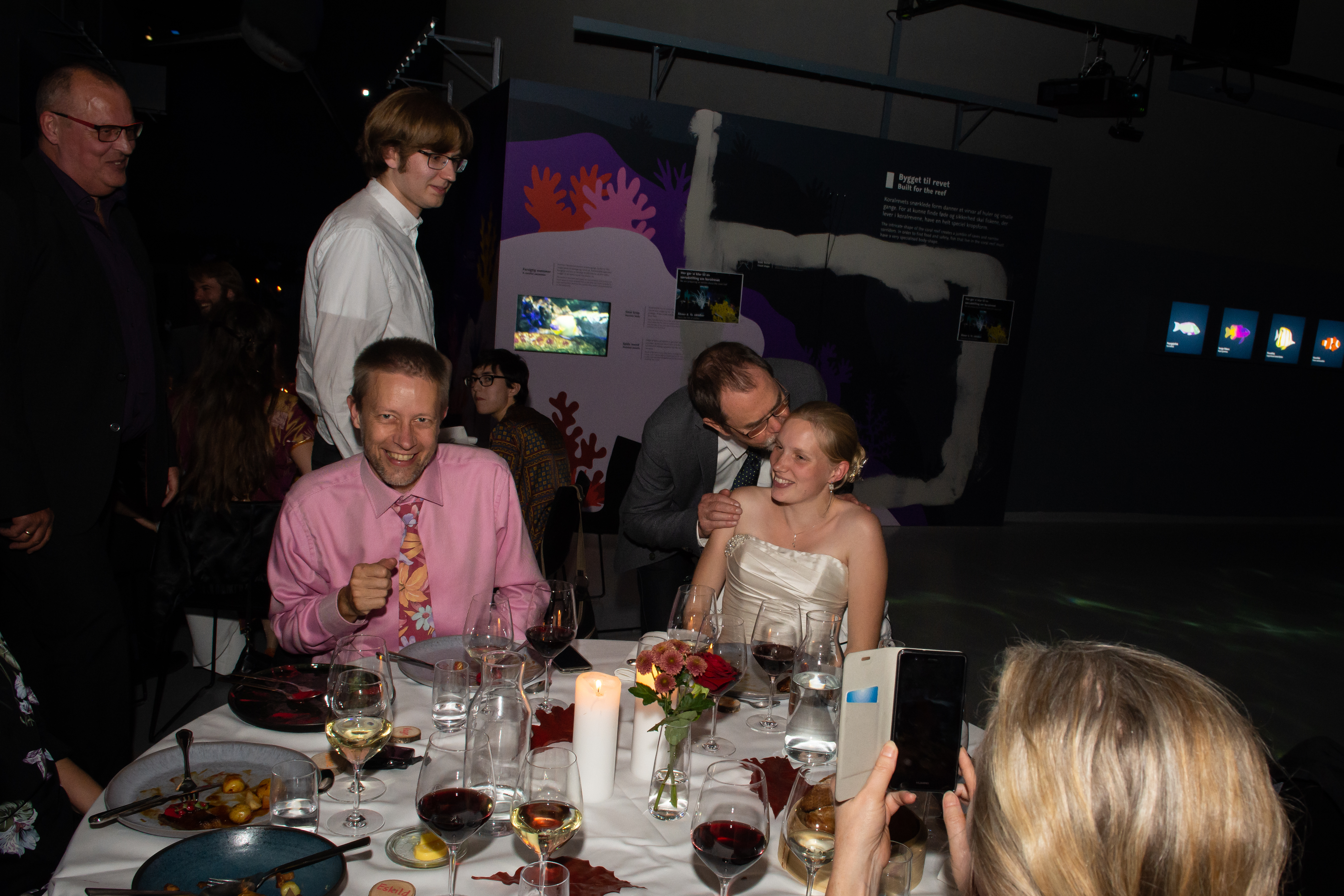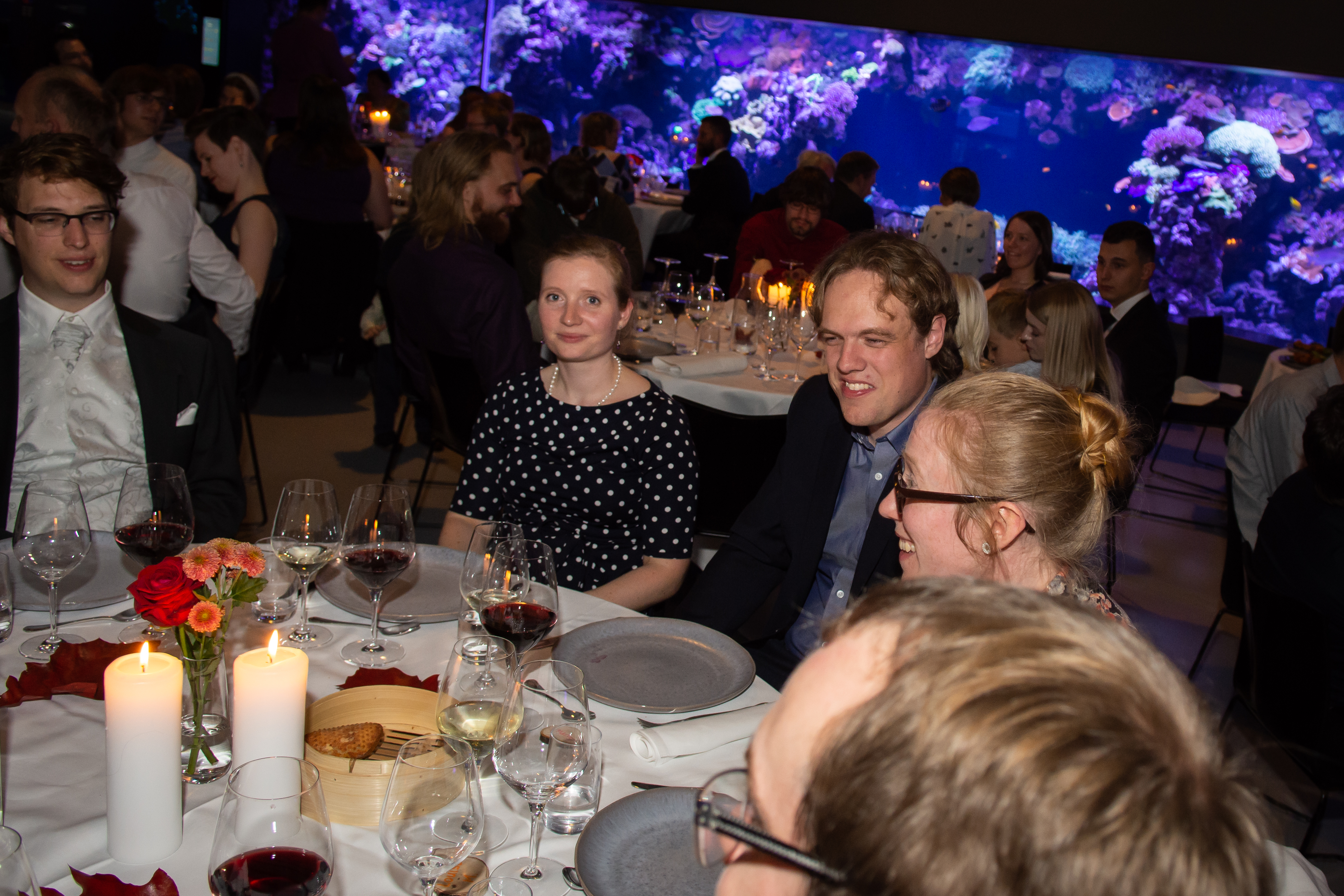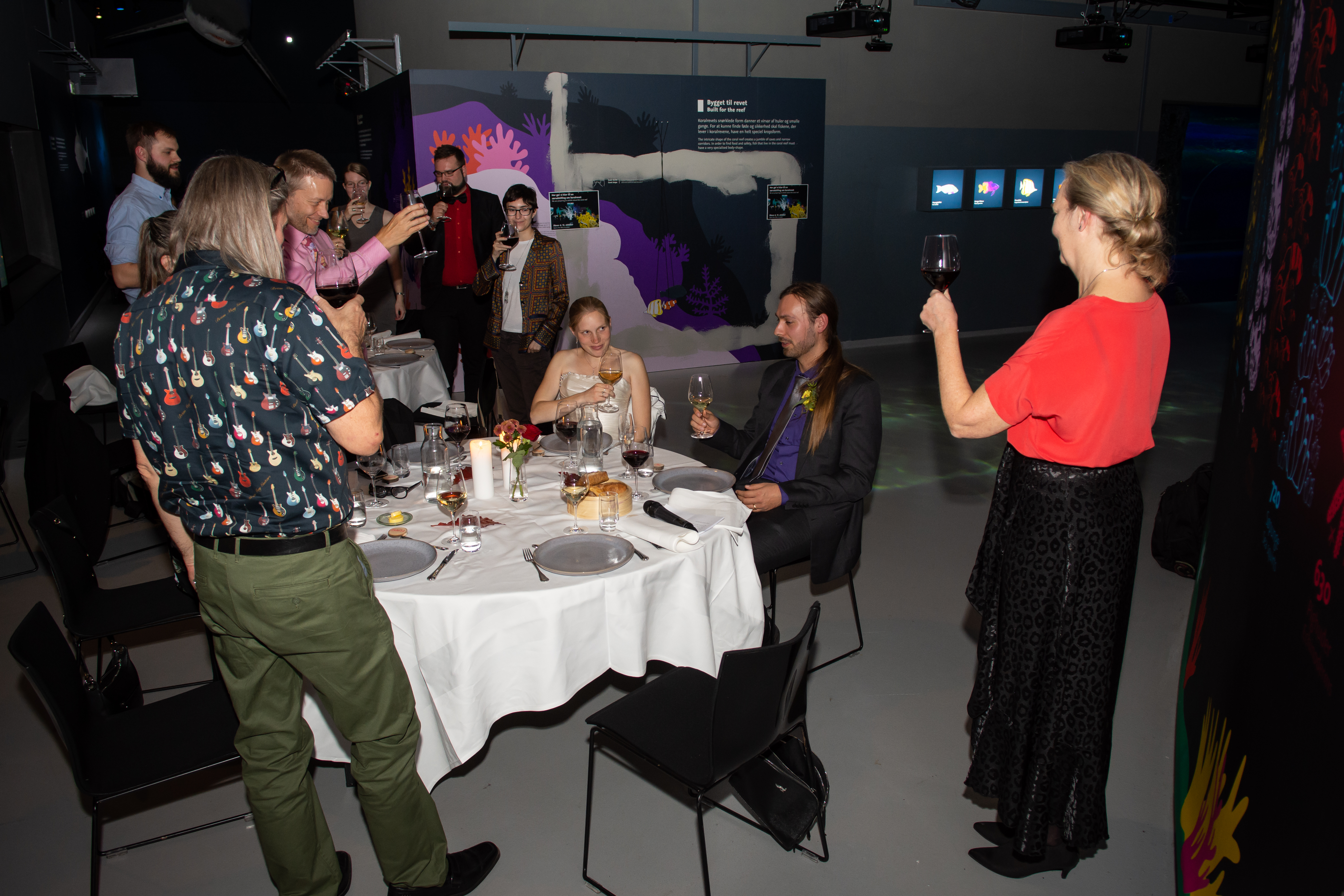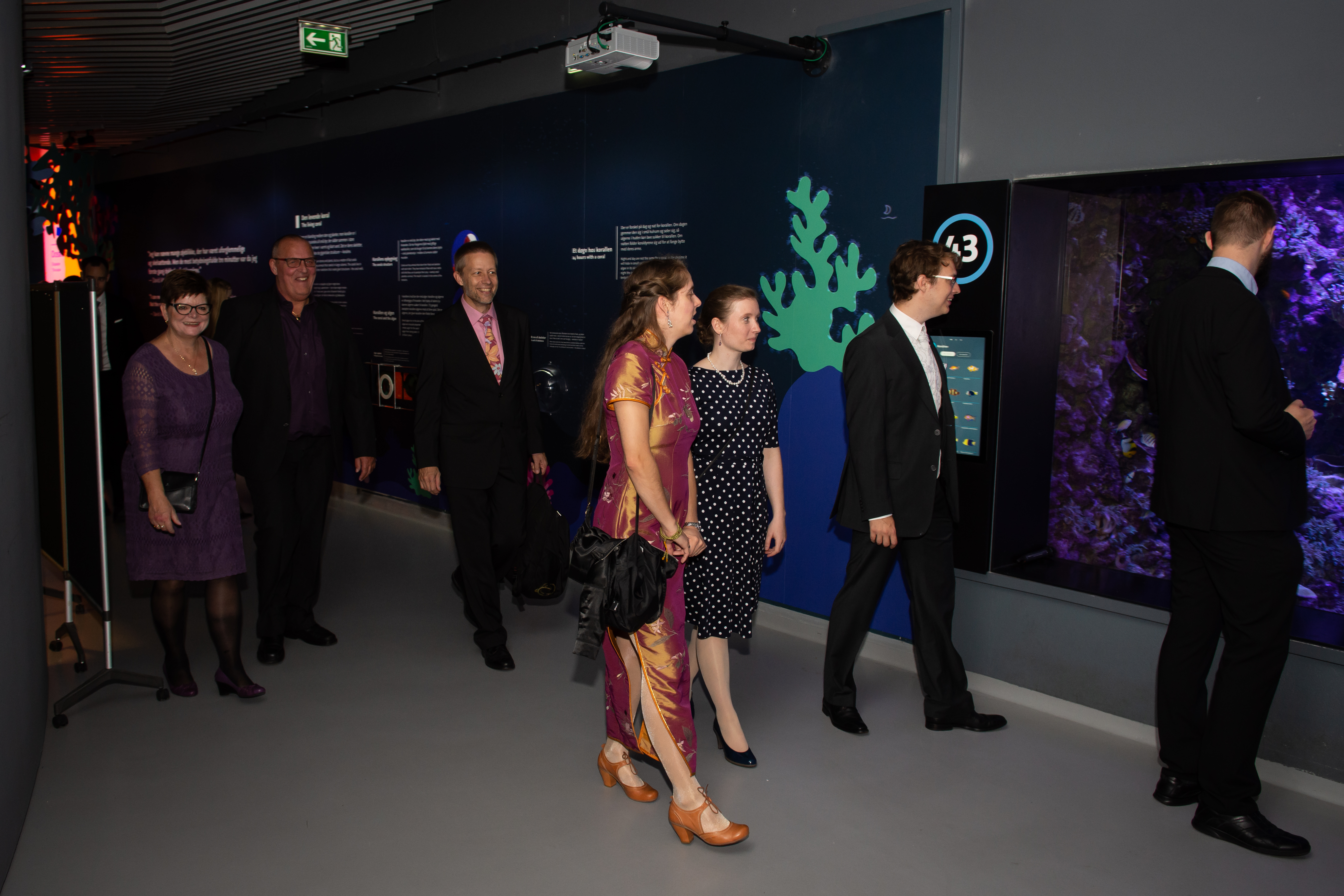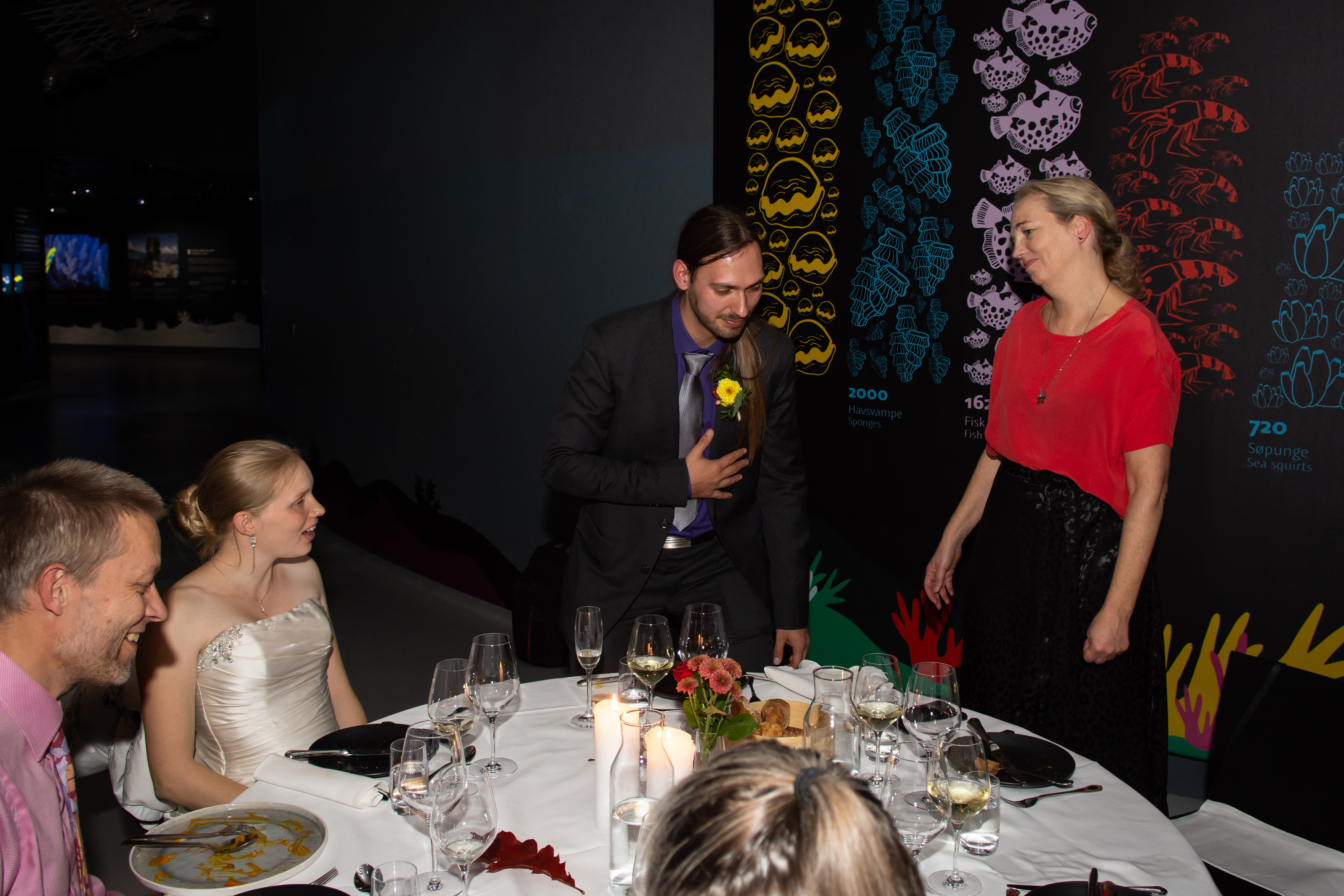 Festen forgår på Den Blå Planet. De holder åbent for deres normale besøgende indtil kl. 17 og derefter skal de nå at gøre klar til festen. Derfor vil det ikke være muligt at komme ind før kl. , hvor vi vil starte ud med velkomstdrinks.