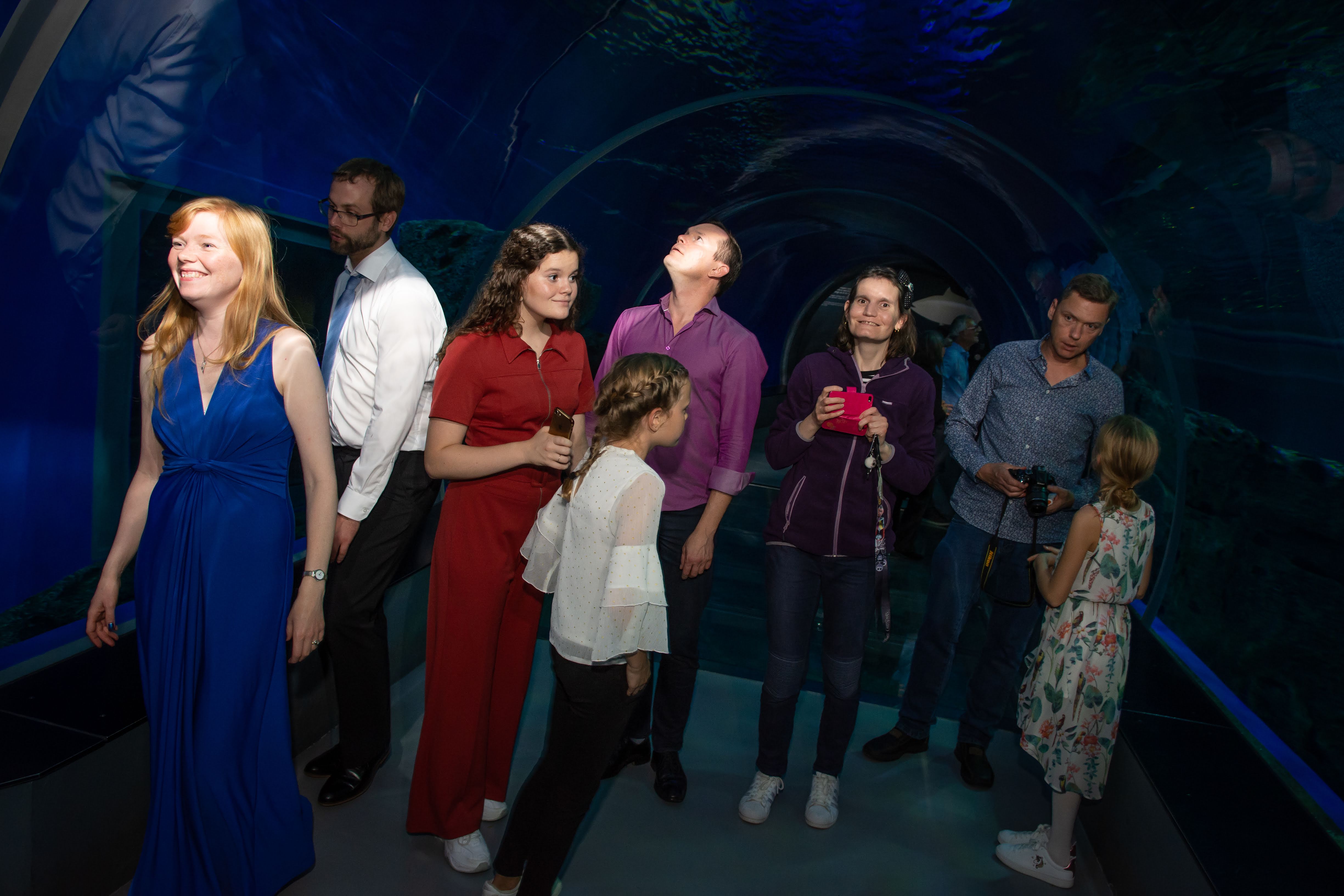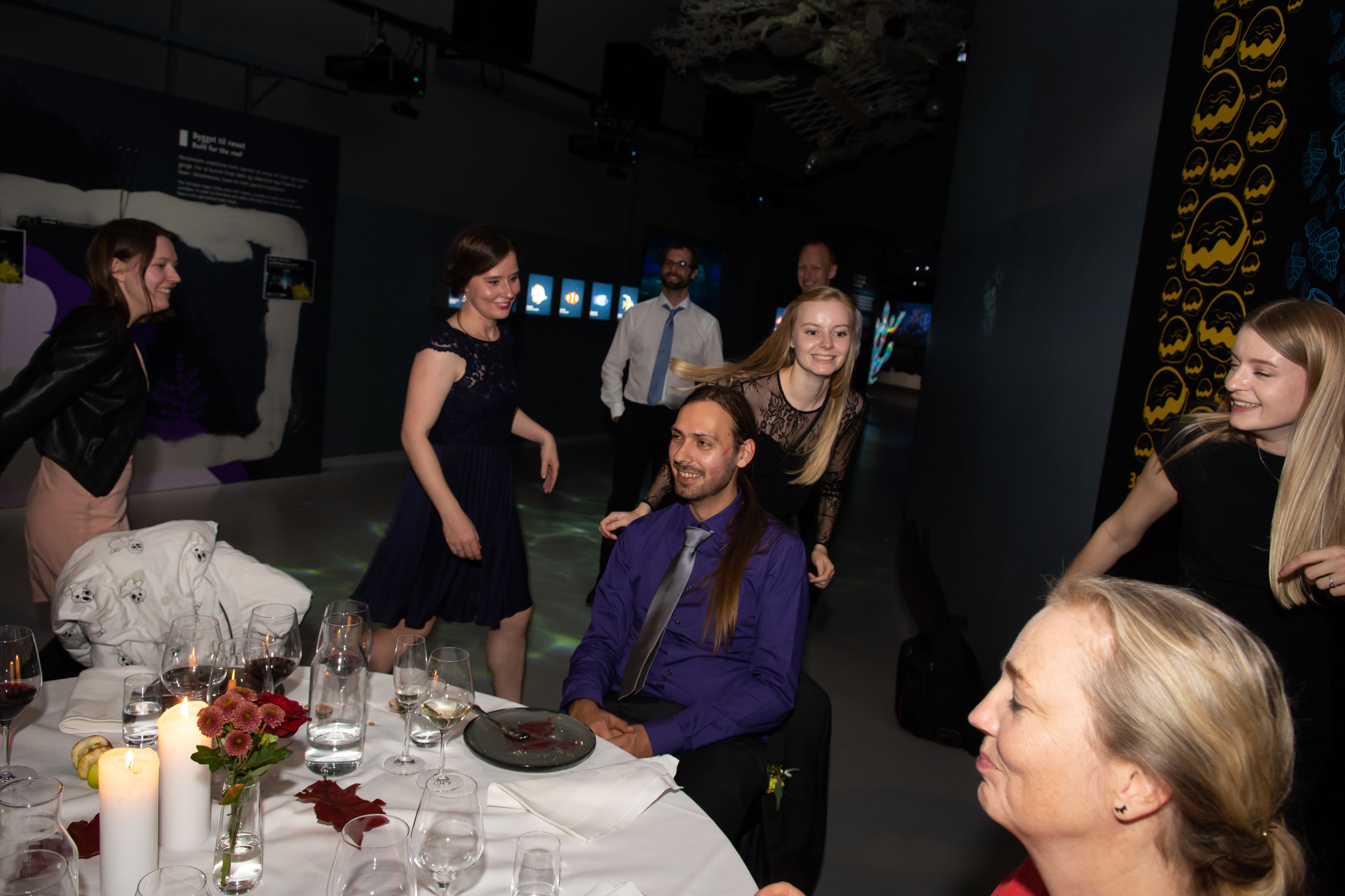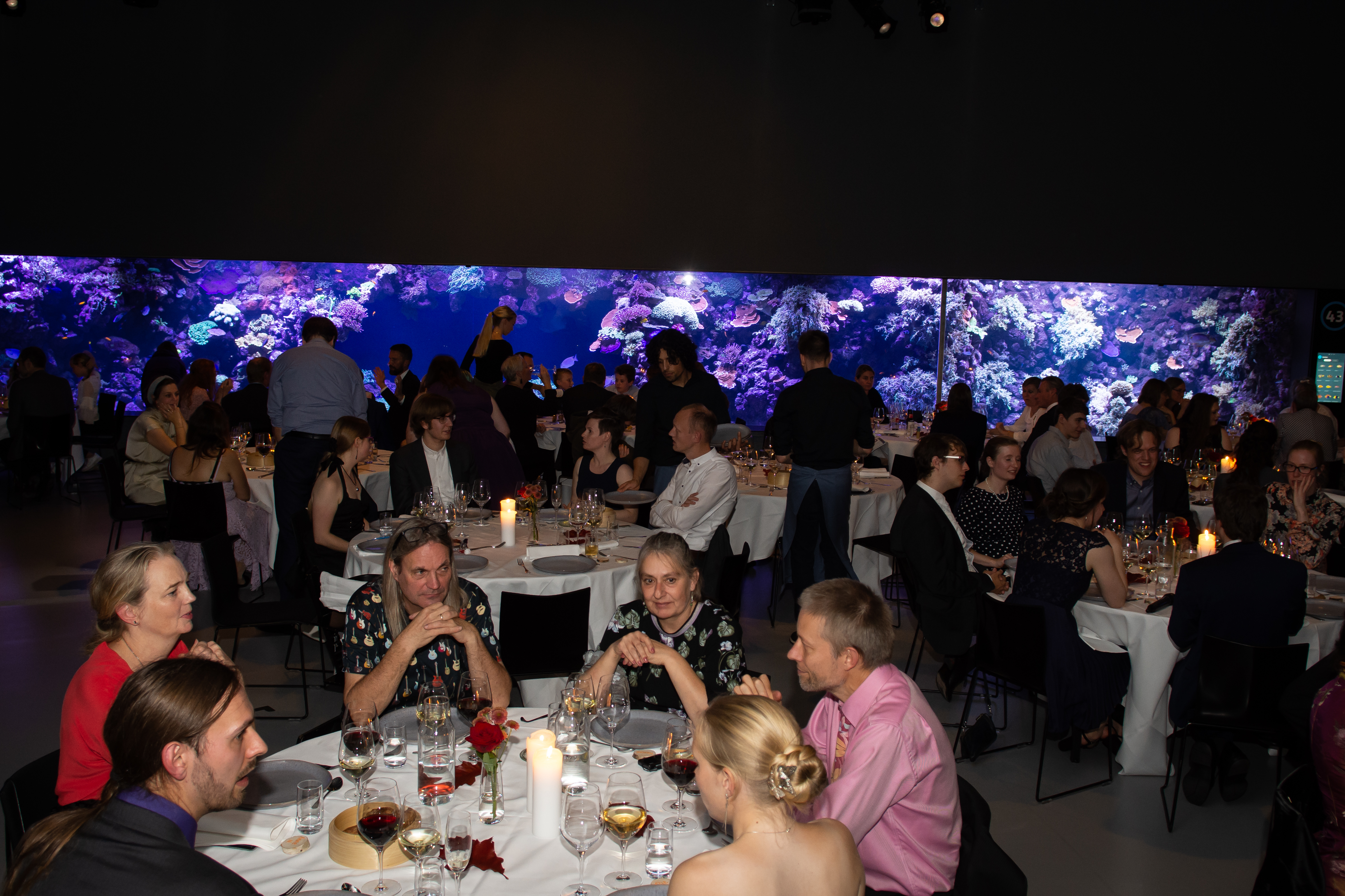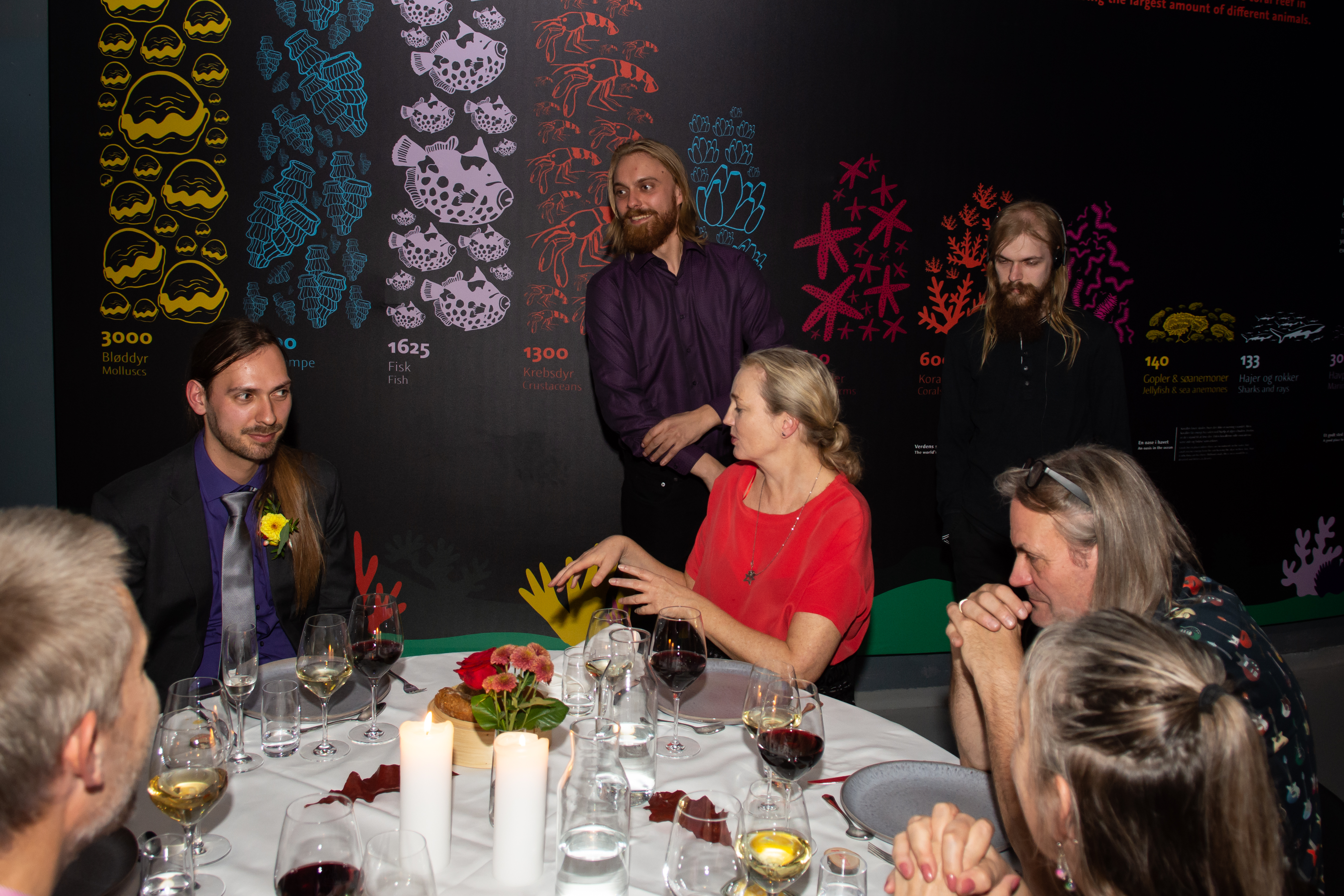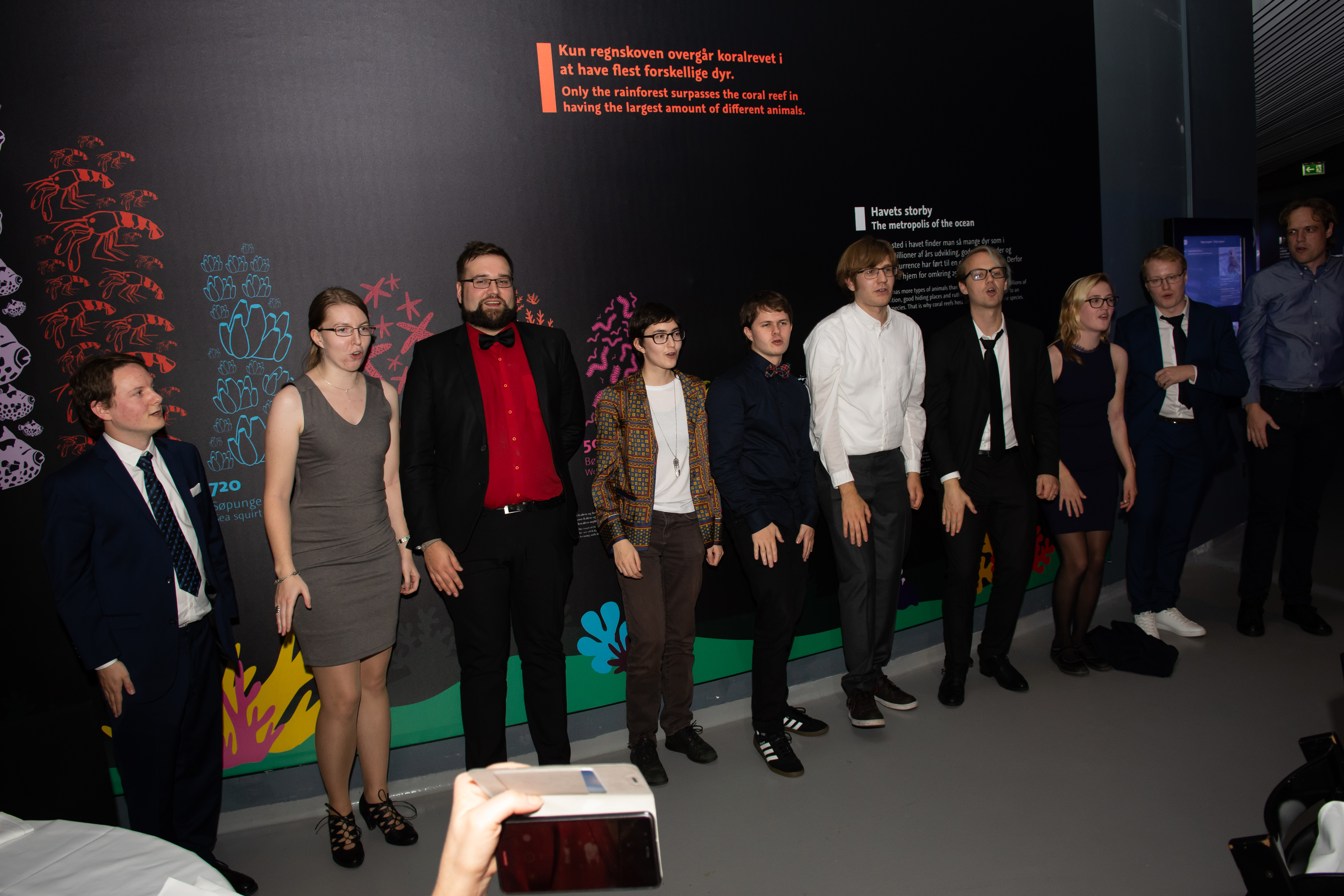 Festen forgår på Den Blå Planet. De holder åbent for deres normale besøgende indtil kl. 17 og derefter skal de nå at gøre klar til festen. Derfor vil det ikke være muligt at komme ind før kl. , hvor vi vil starte ud med velkomstdrinks.