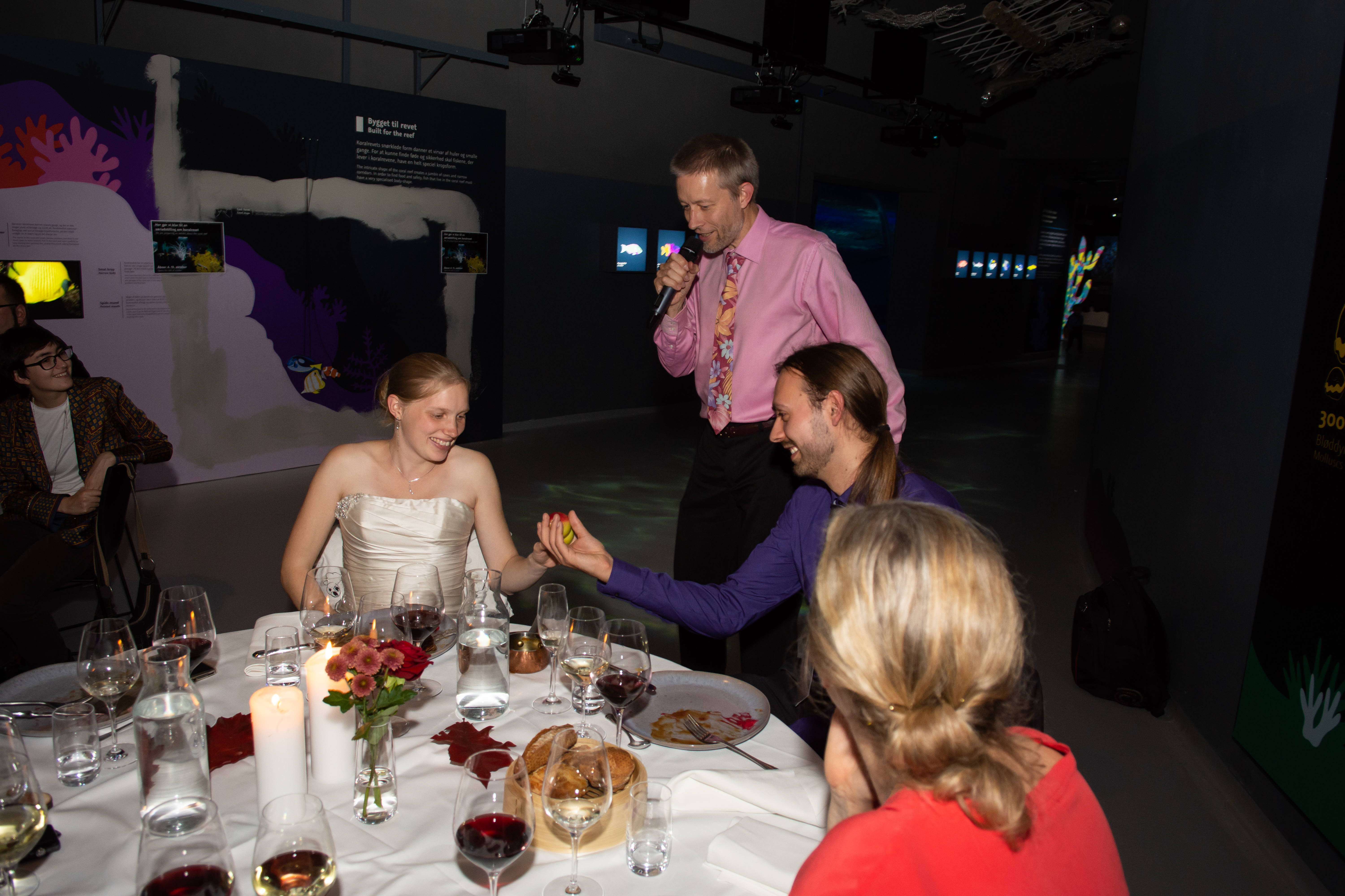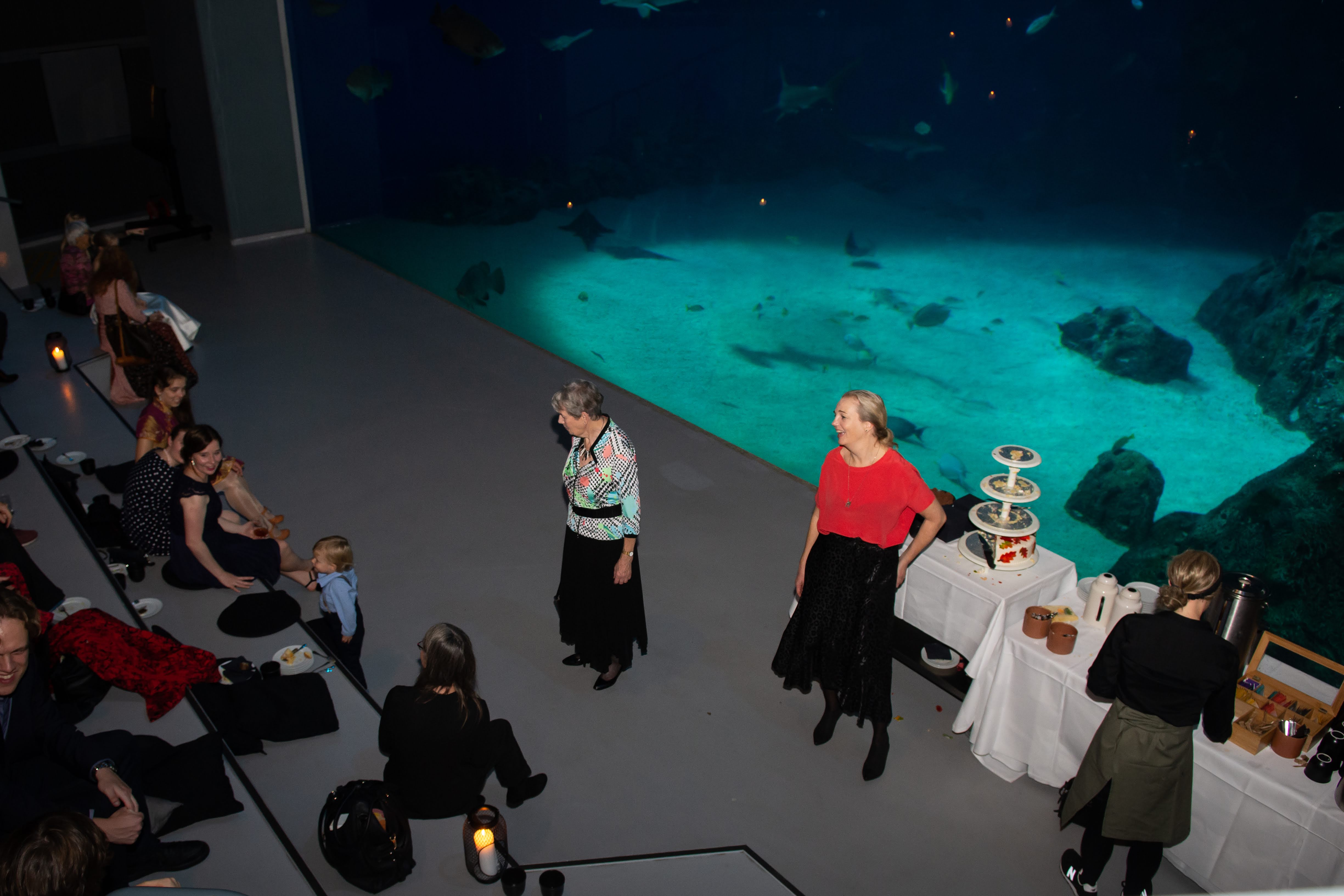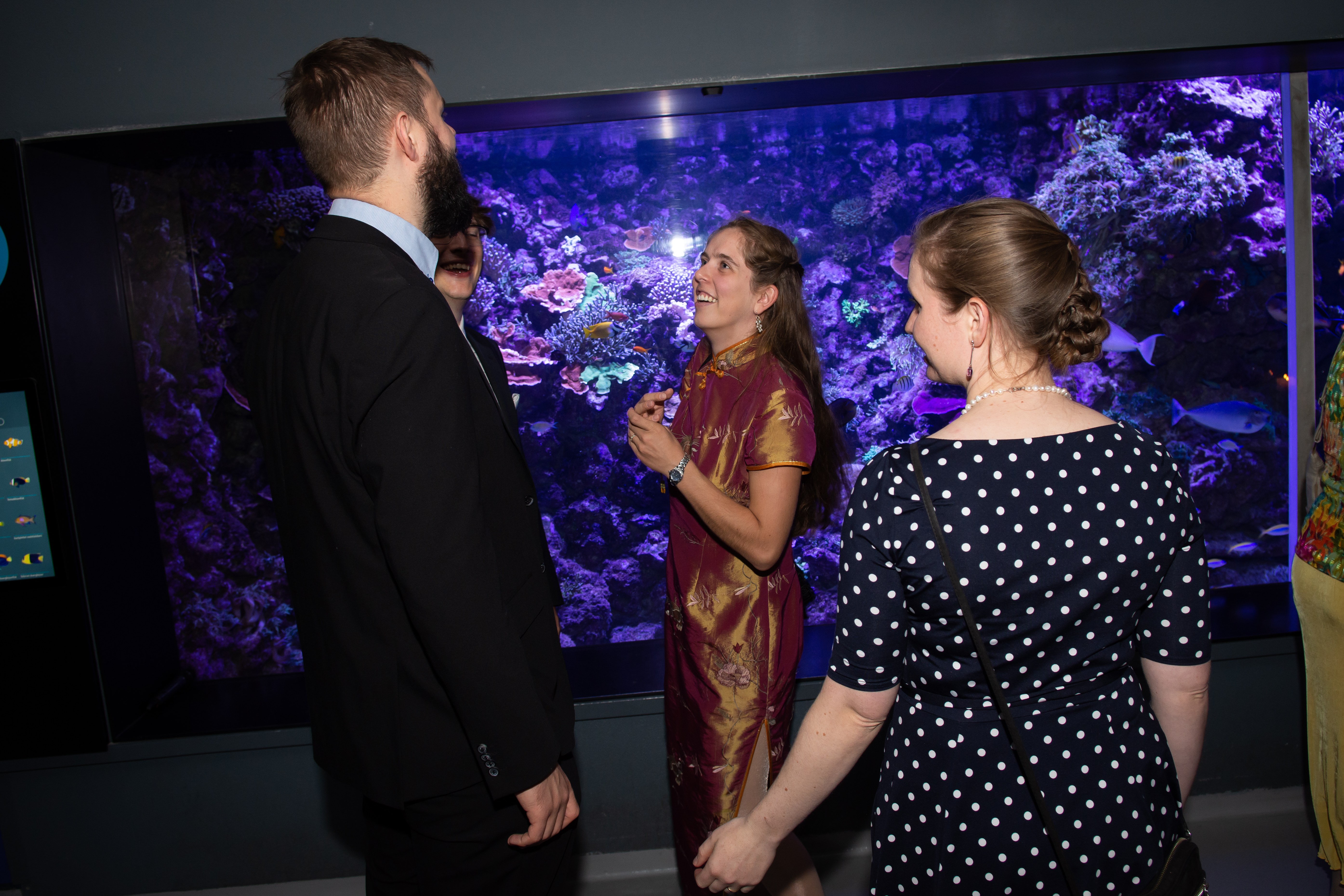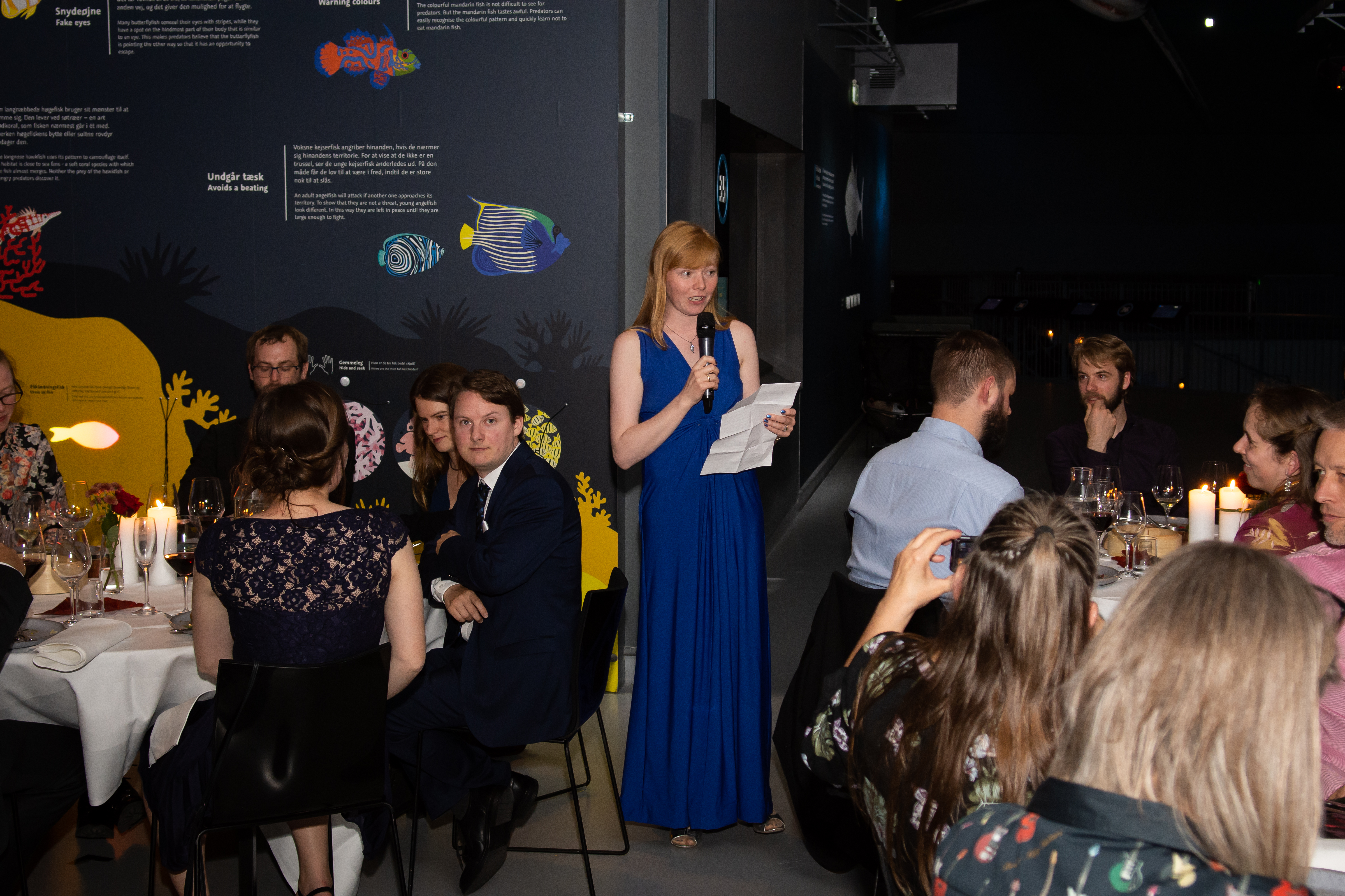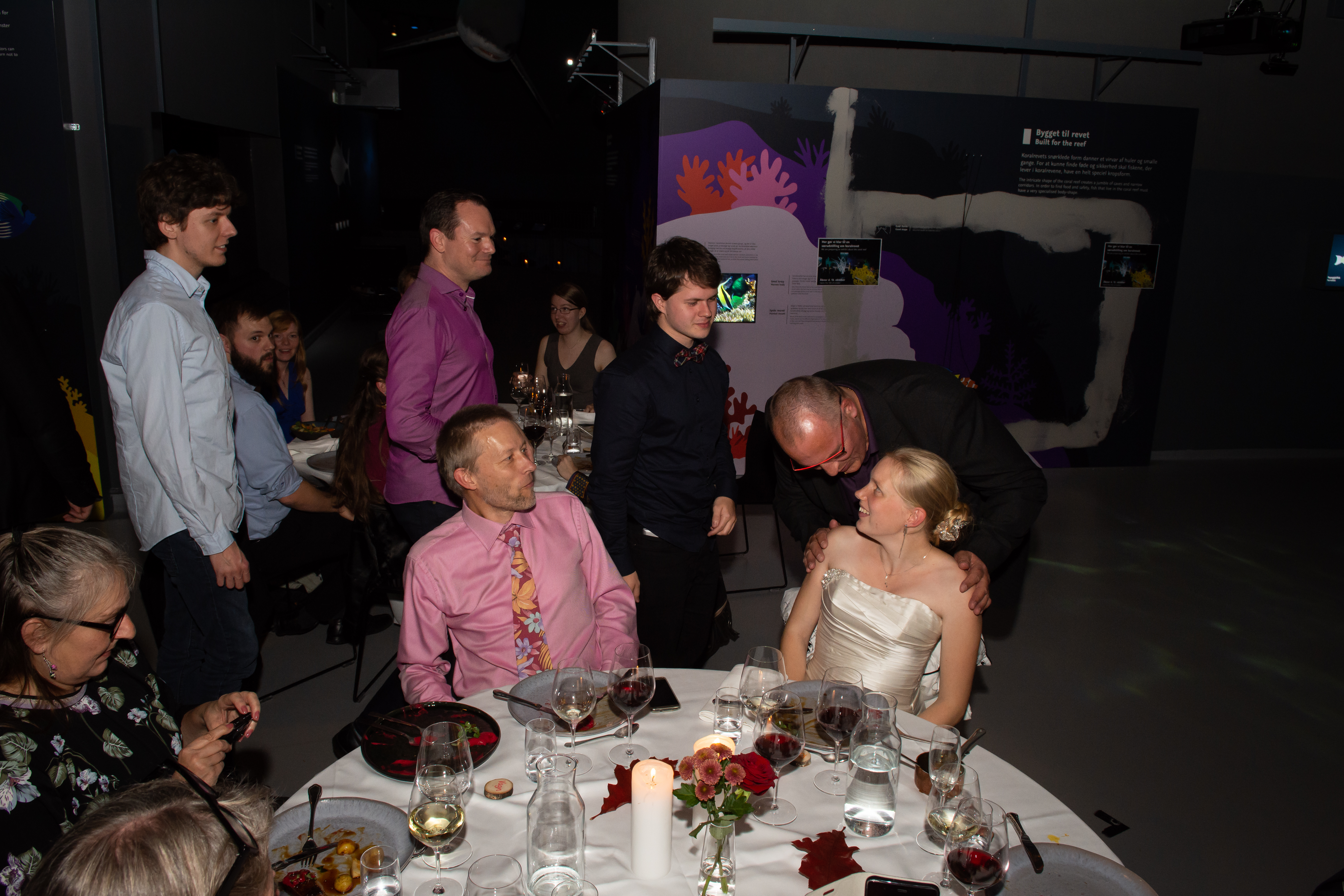 Festen forgår på Den Blå Planet. De holder åbent for deres normale besøgende indtil kl. 17 og derefter skal de nå at gøre klar til festen. Derfor vil det ikke være muligt at komme ind før kl. , hvor vi vil starte ud med velkomstdrinks.