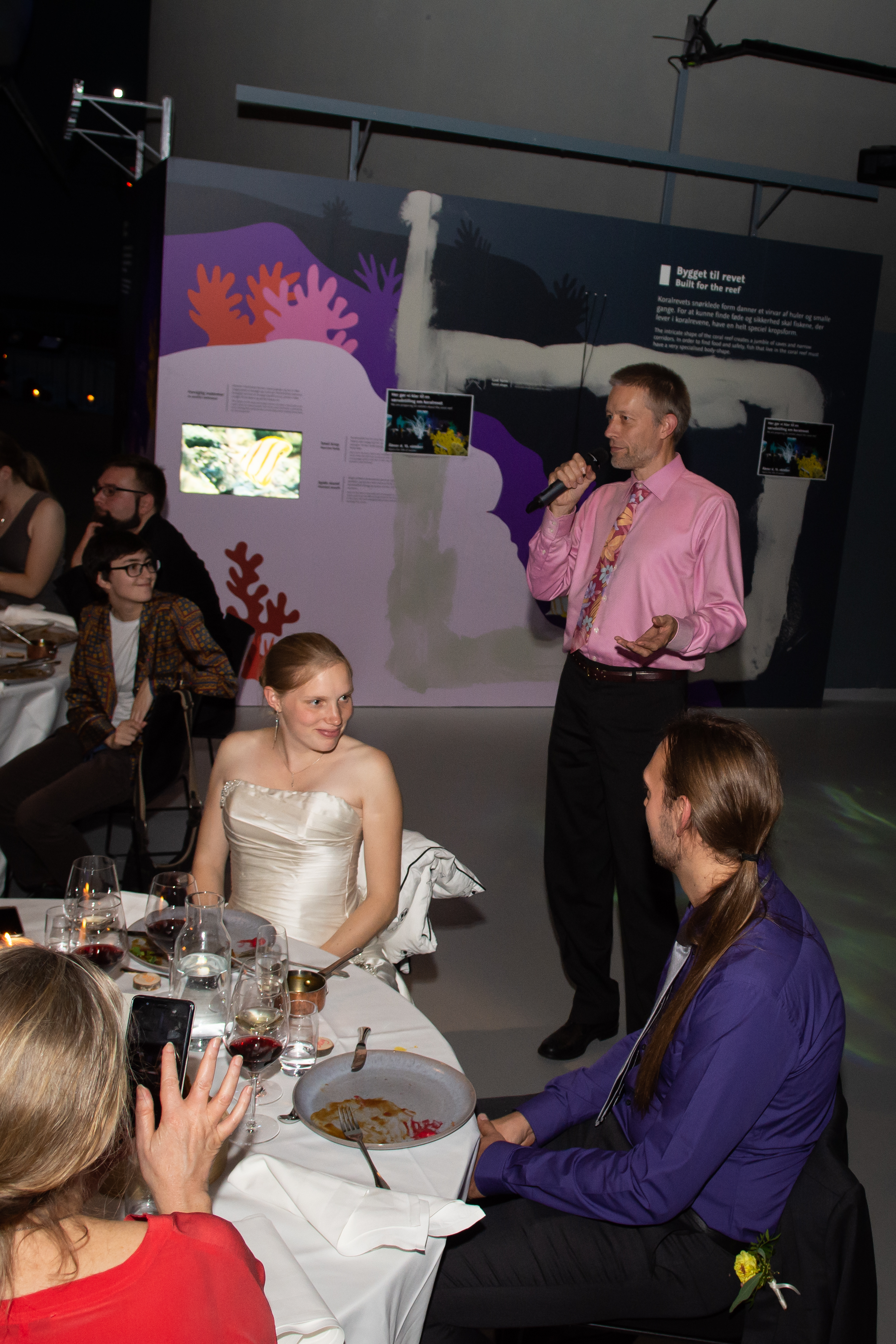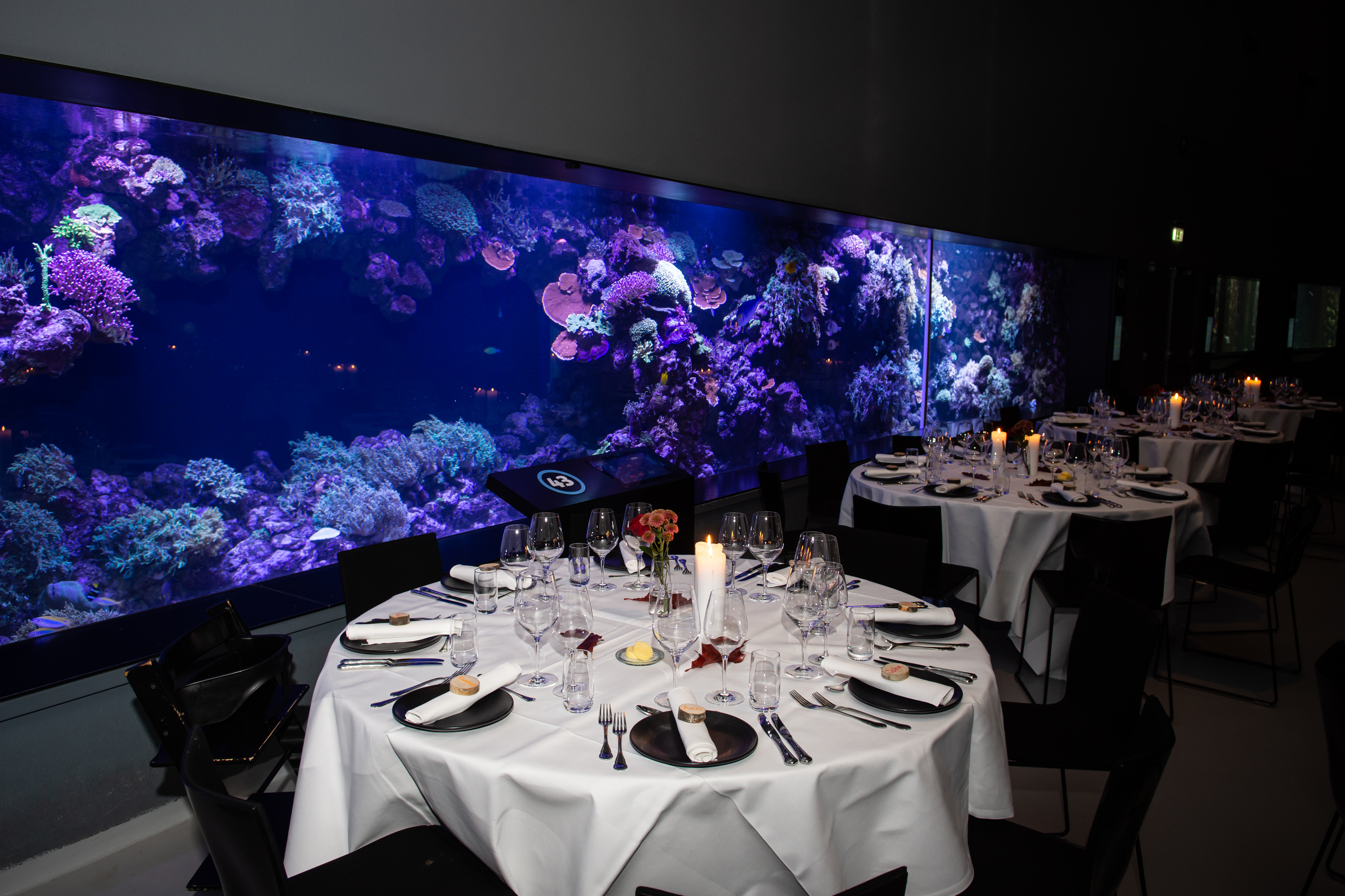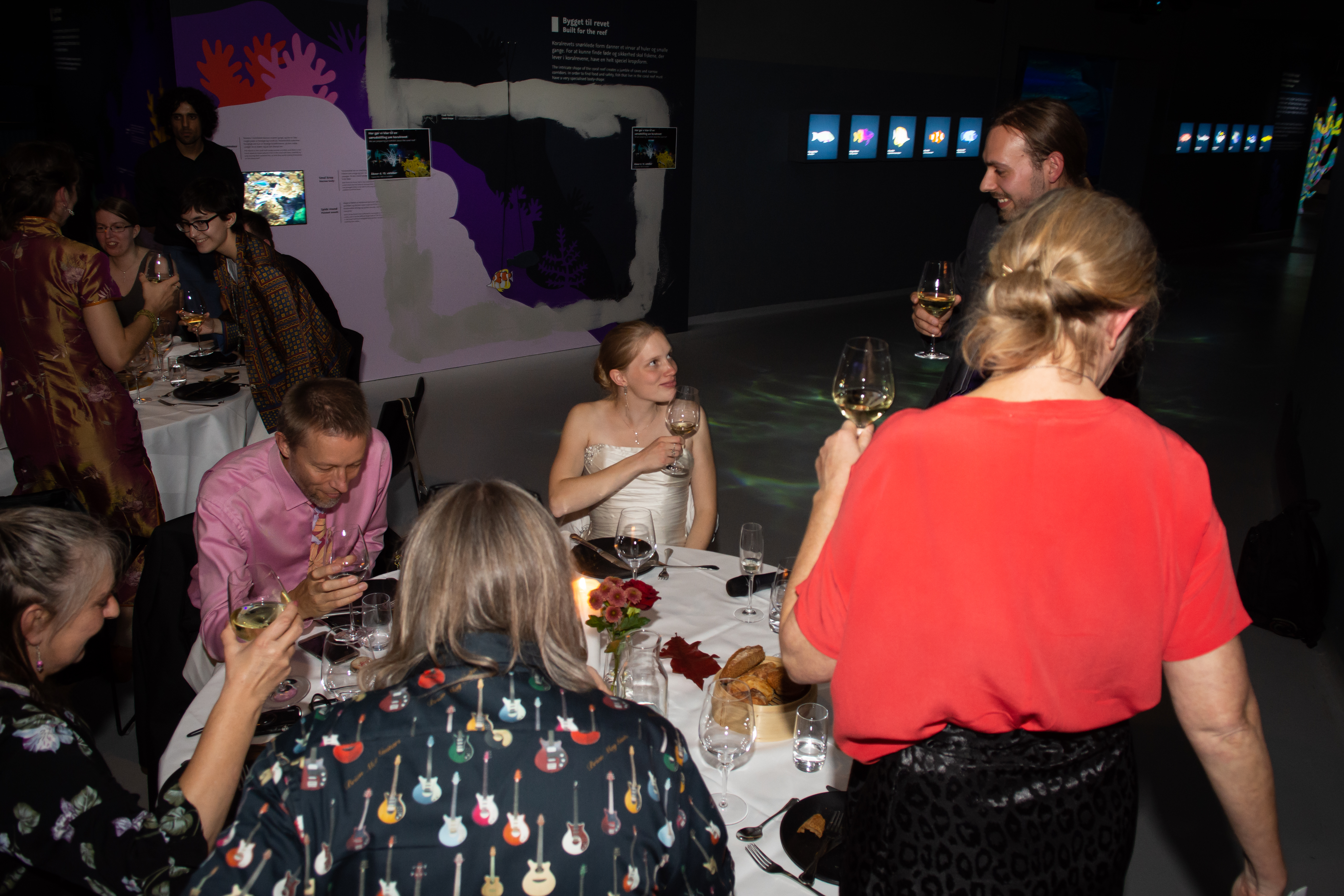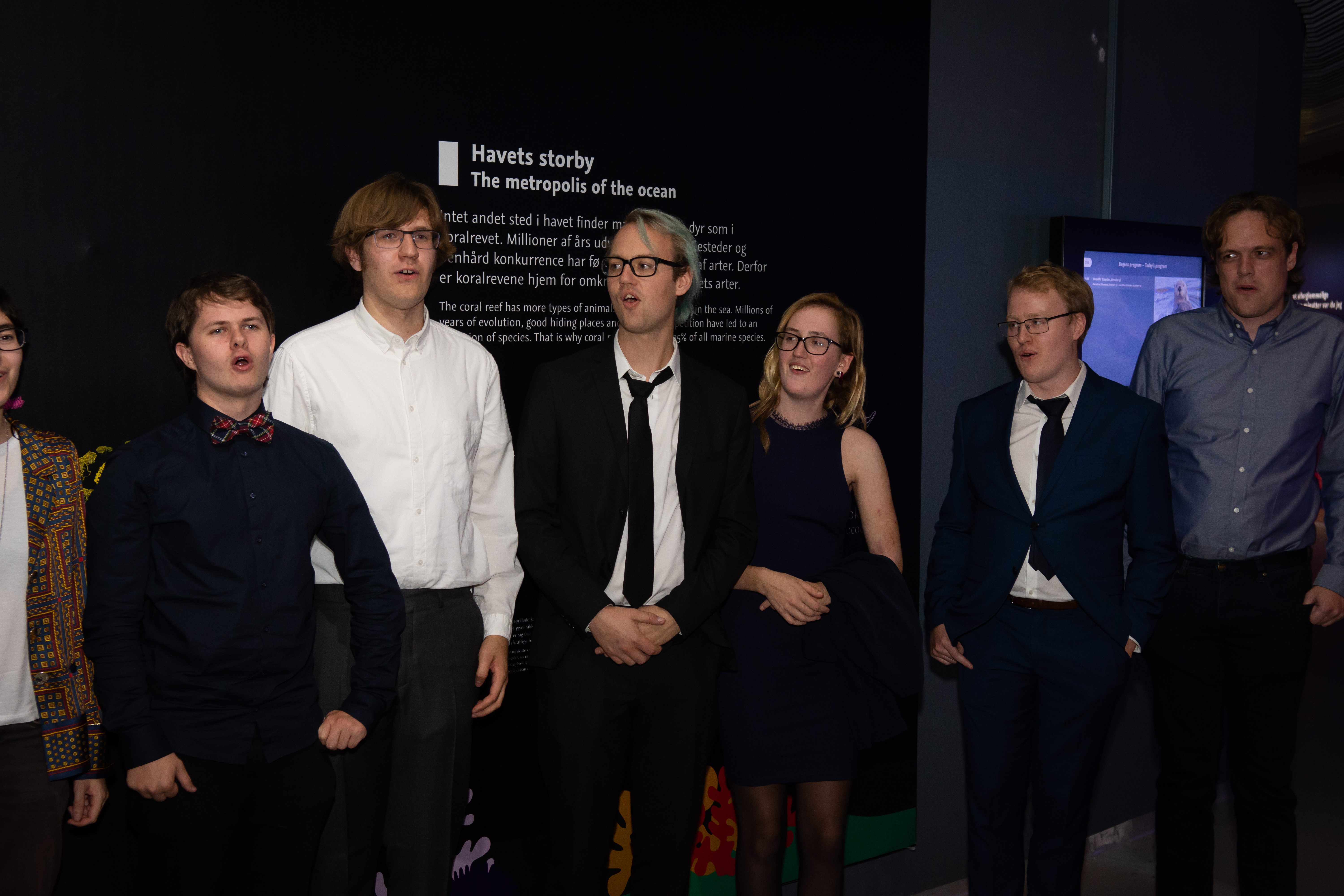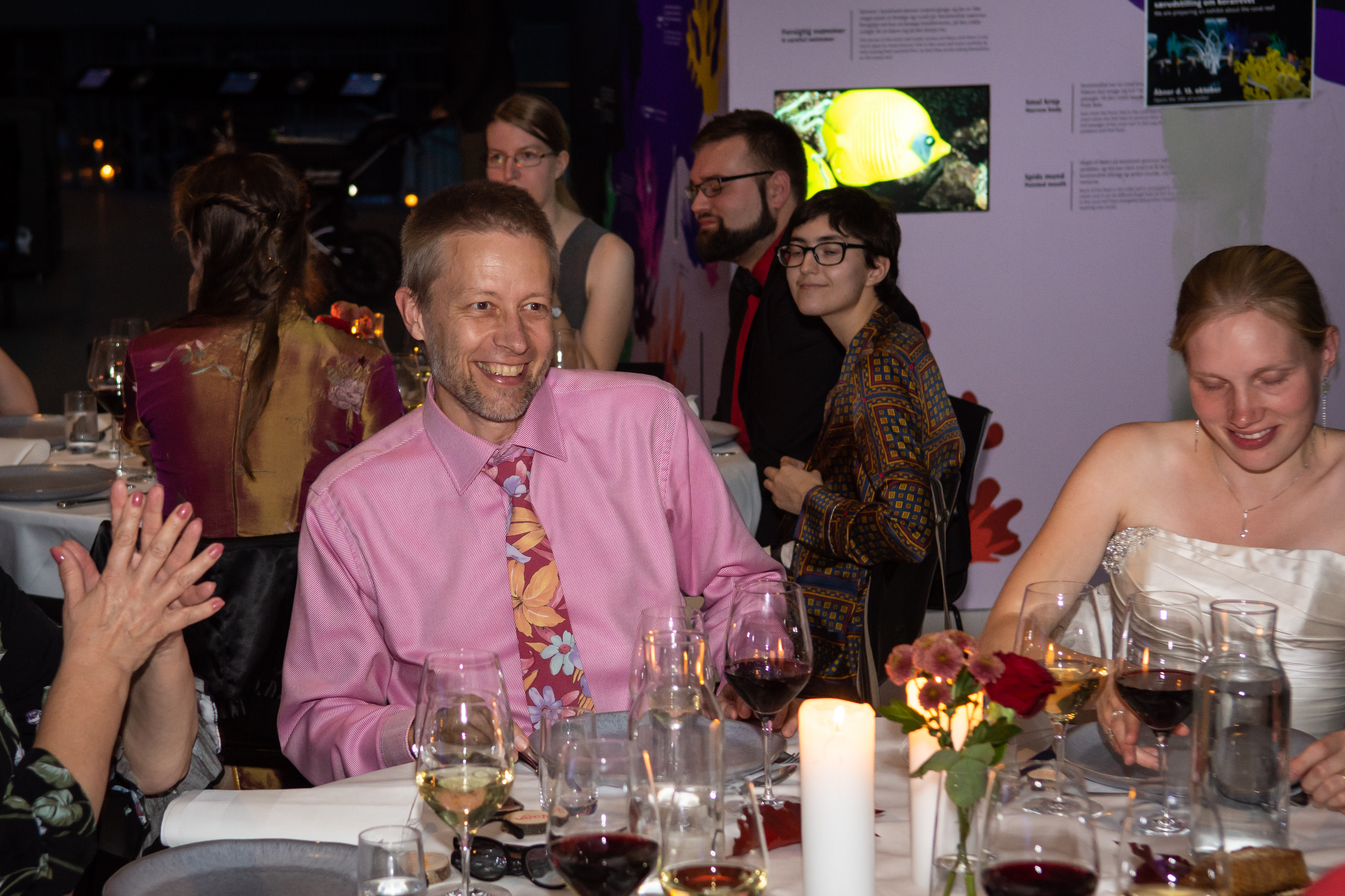 Festen forgår på Den Blå Planet. De holder åbent for deres normale besøgende indtil kl. 17 og derefter skal de nå at gøre klar til festen. Derfor vil det ikke være muligt at komme ind før kl. , hvor vi vil starte ud med velkomstdrinks.