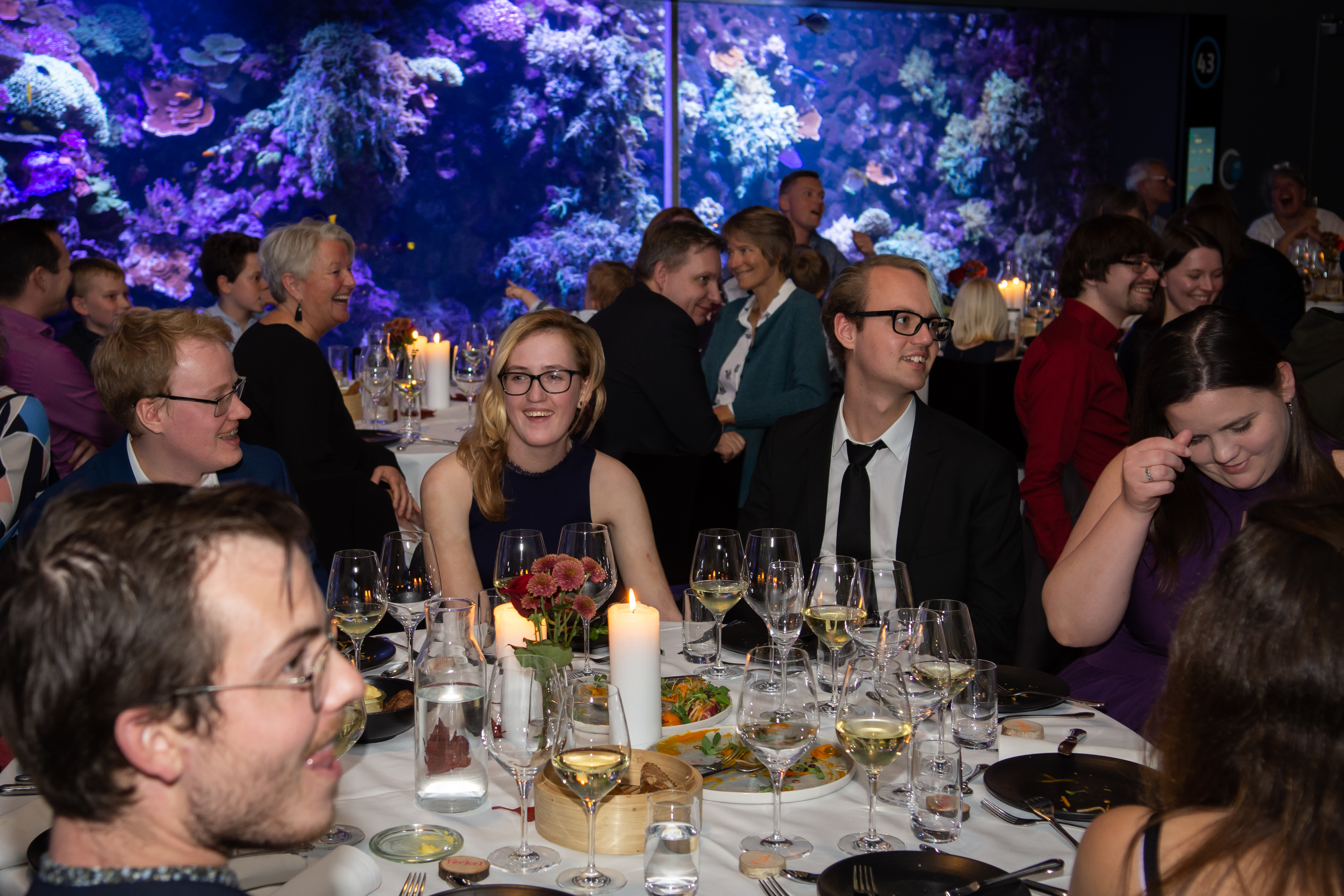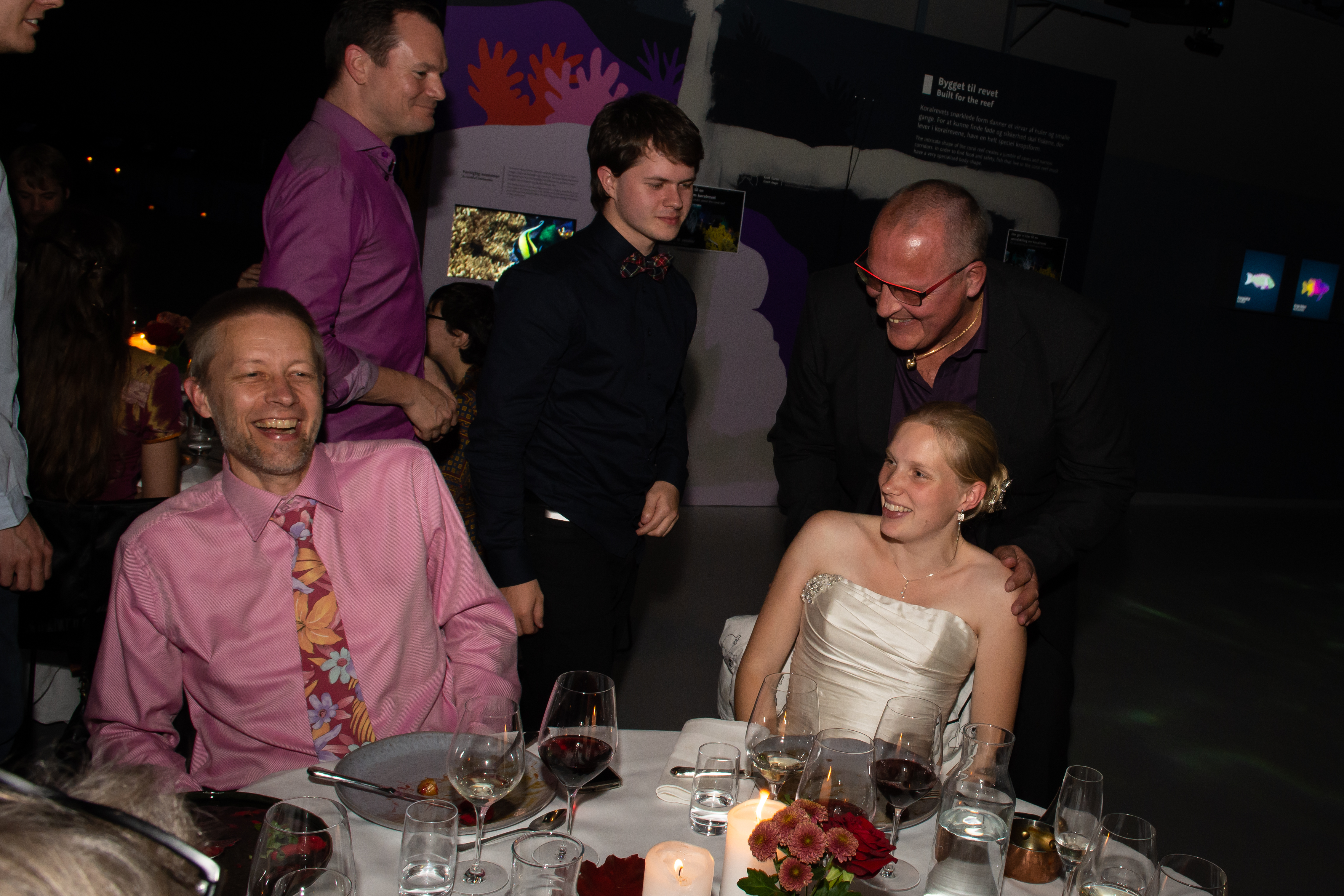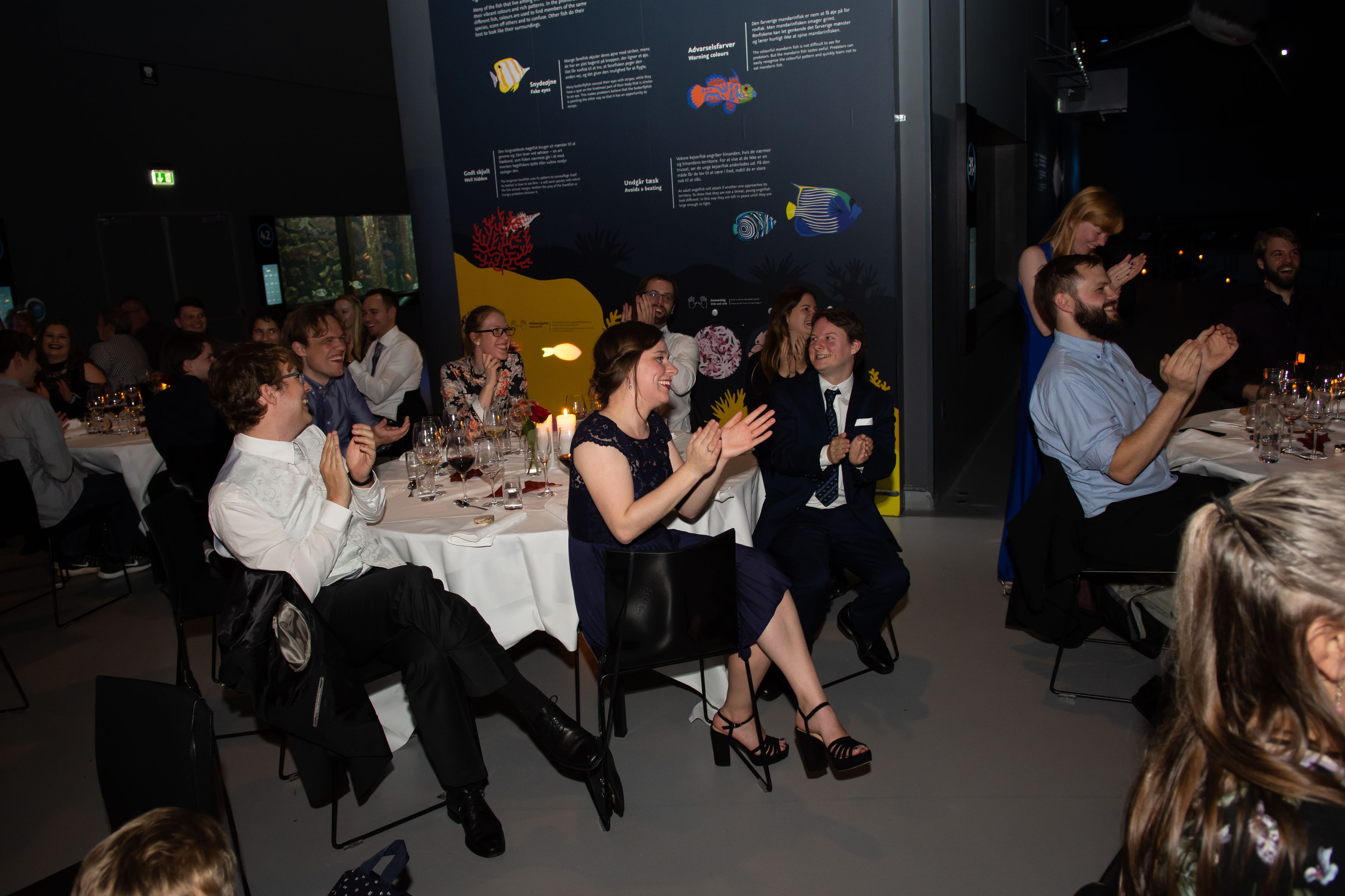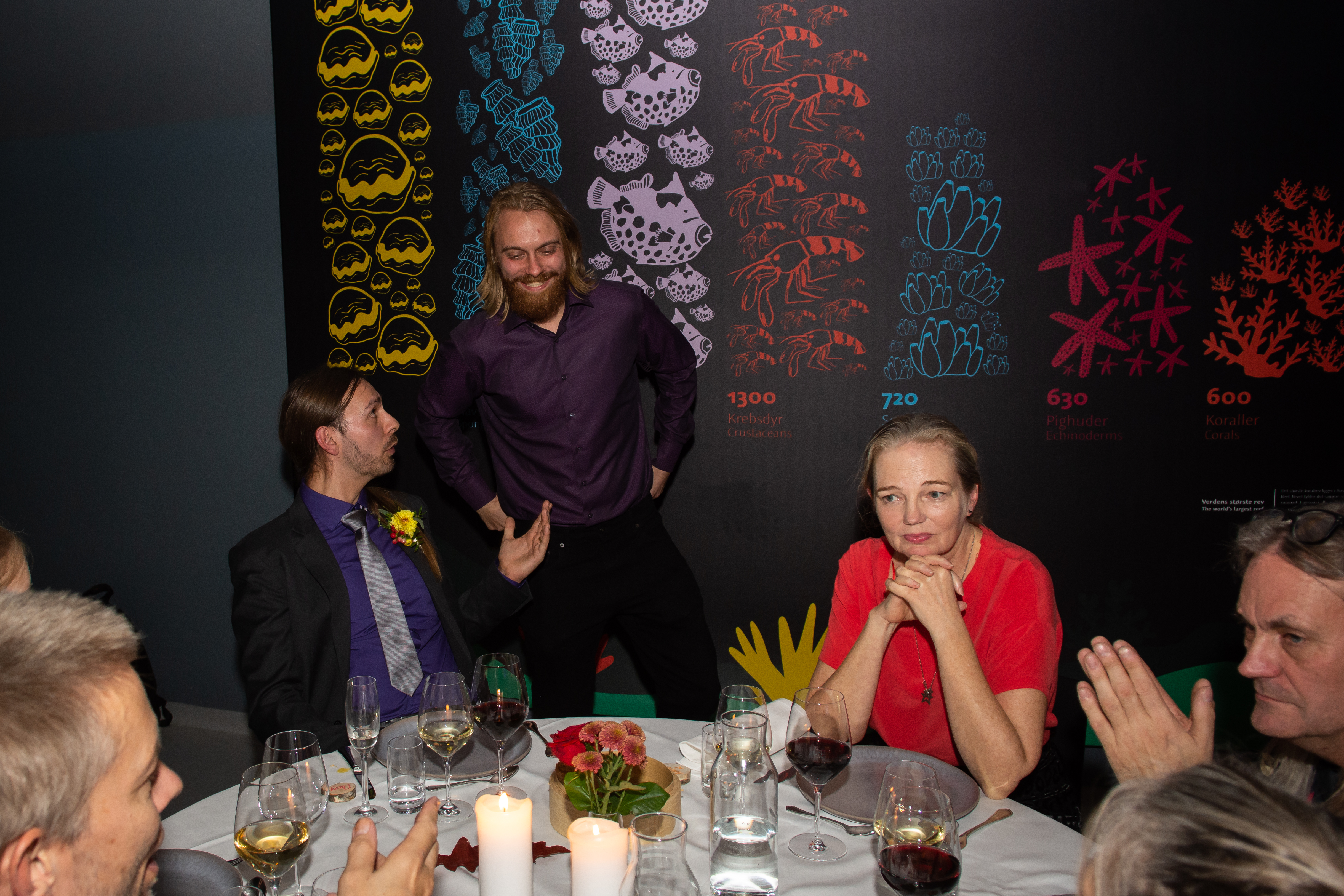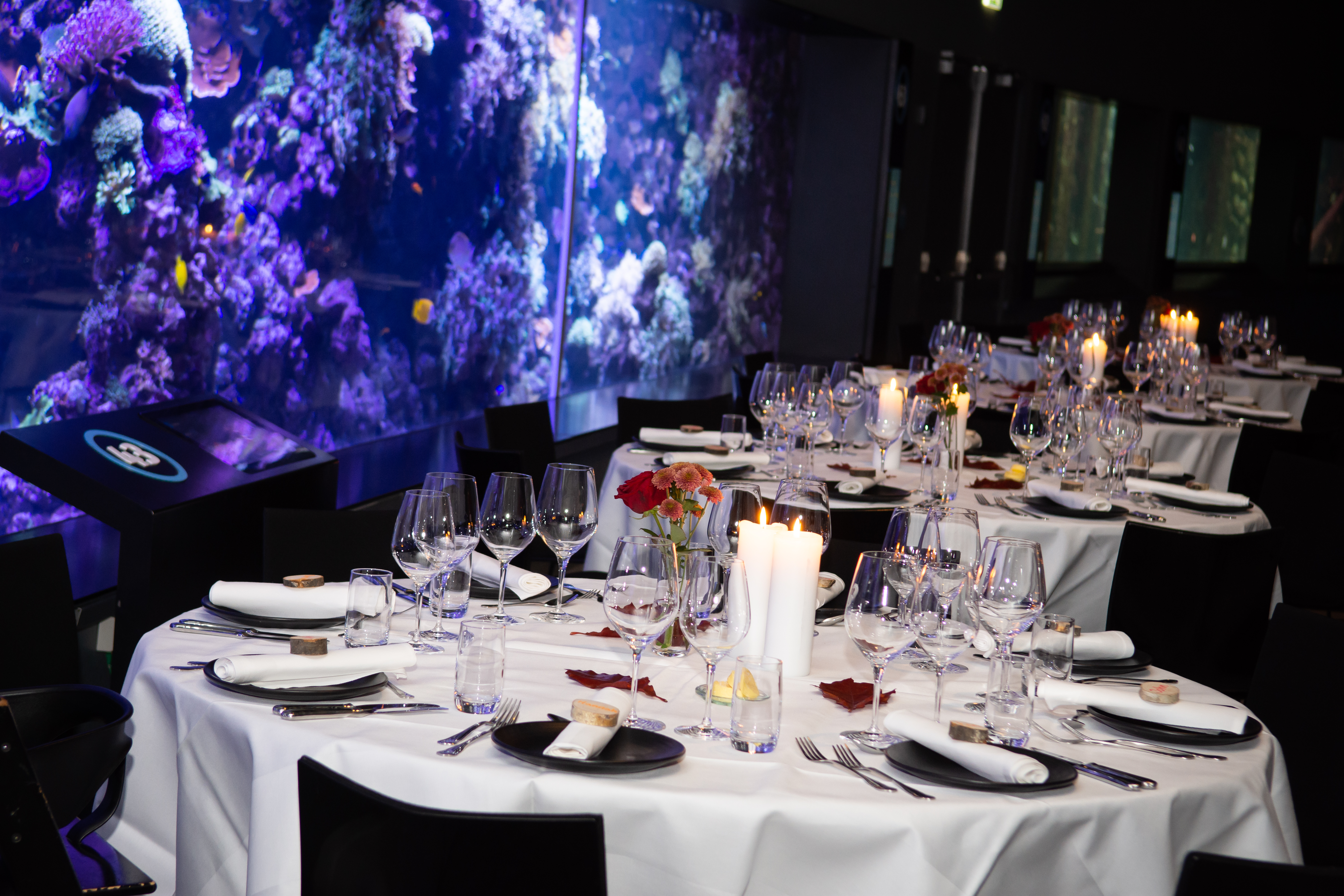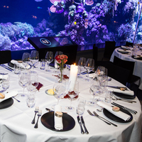 Festen forgår på Den Blå Planet. De holder åbent for deres normale besøgende indtil kl. 17 og derefter skal de nå at gøre klar til festen. Derfor vil det ikke være muligt at komme ind før kl. , hvor vi vil starte ud med velkomstdrinks.