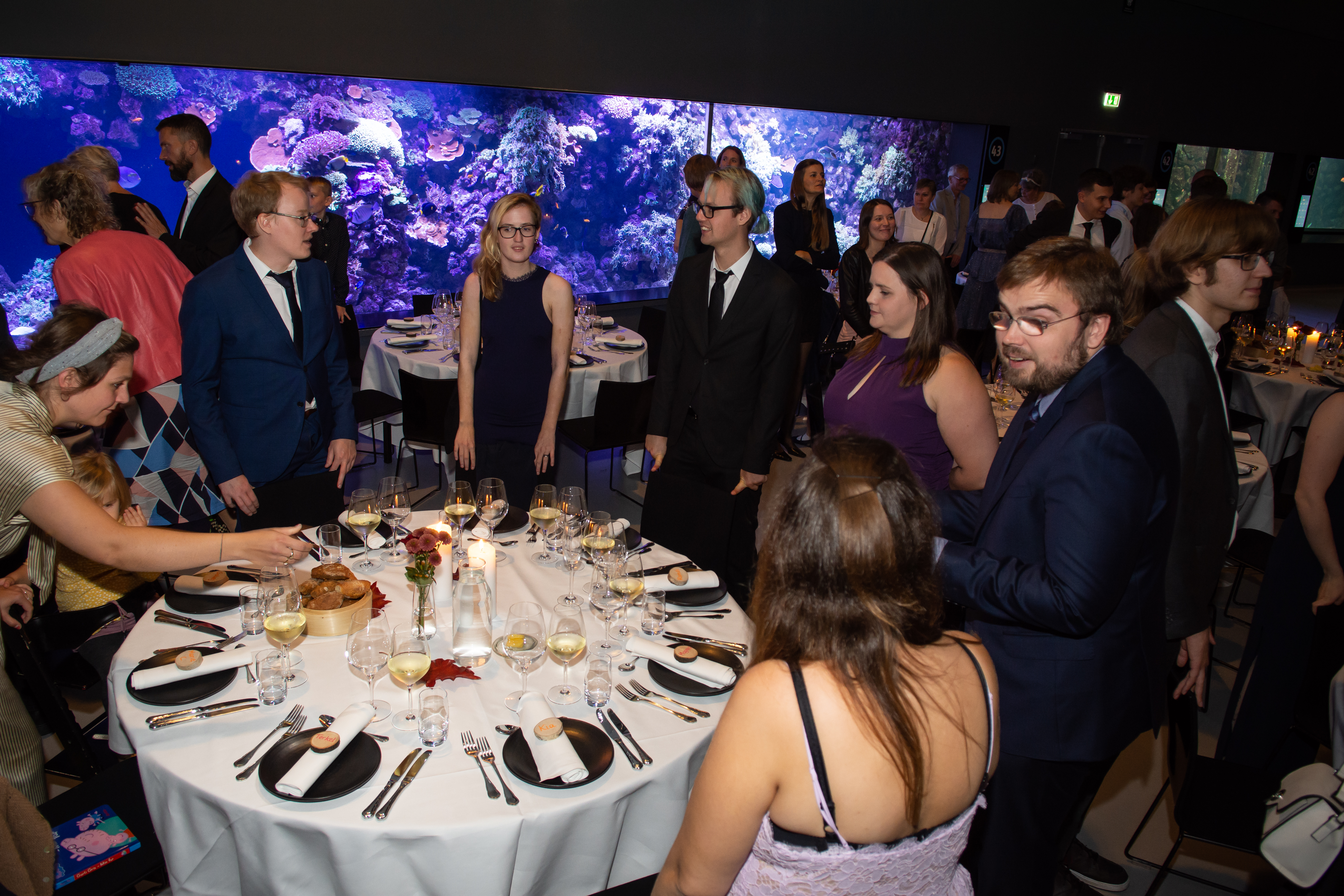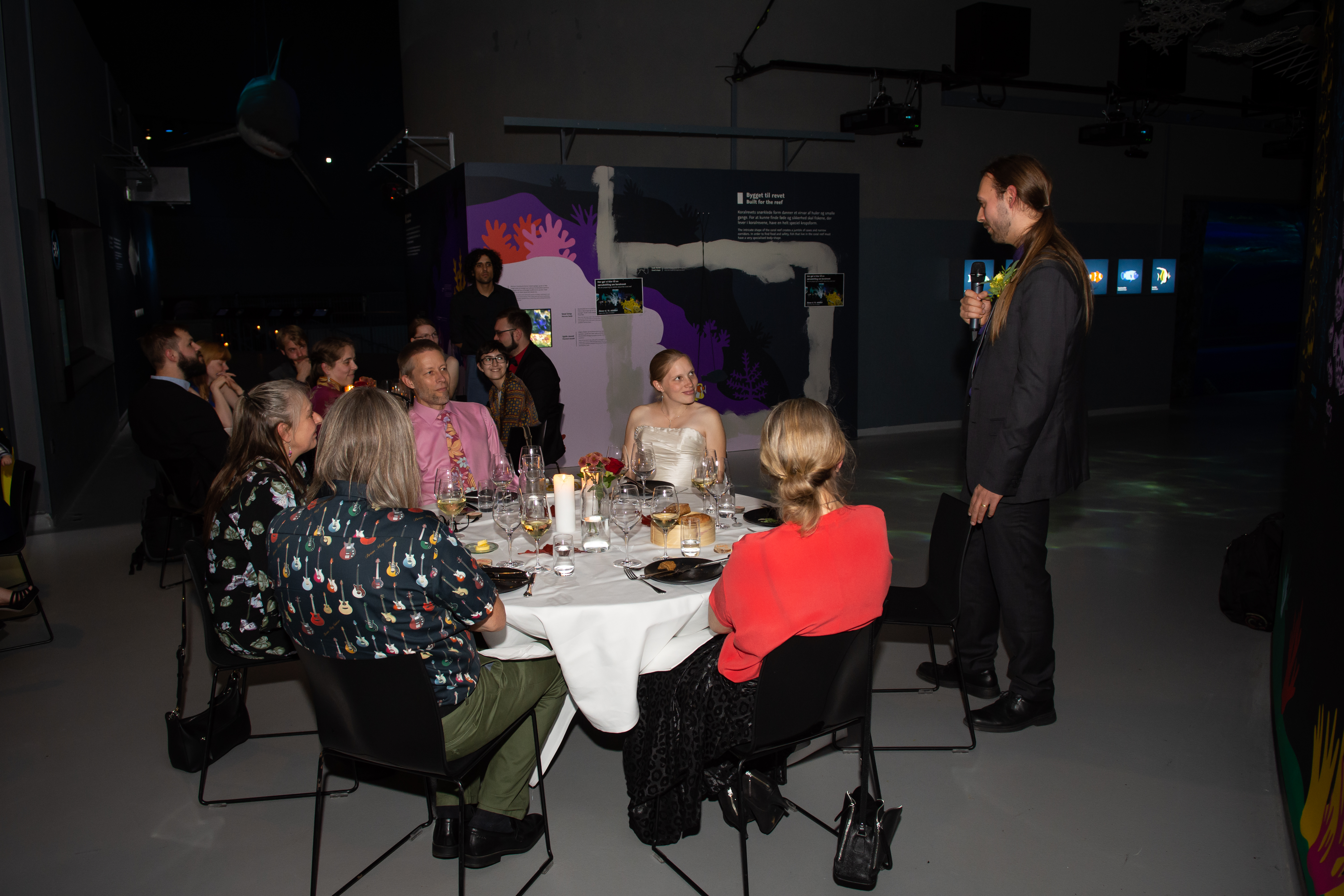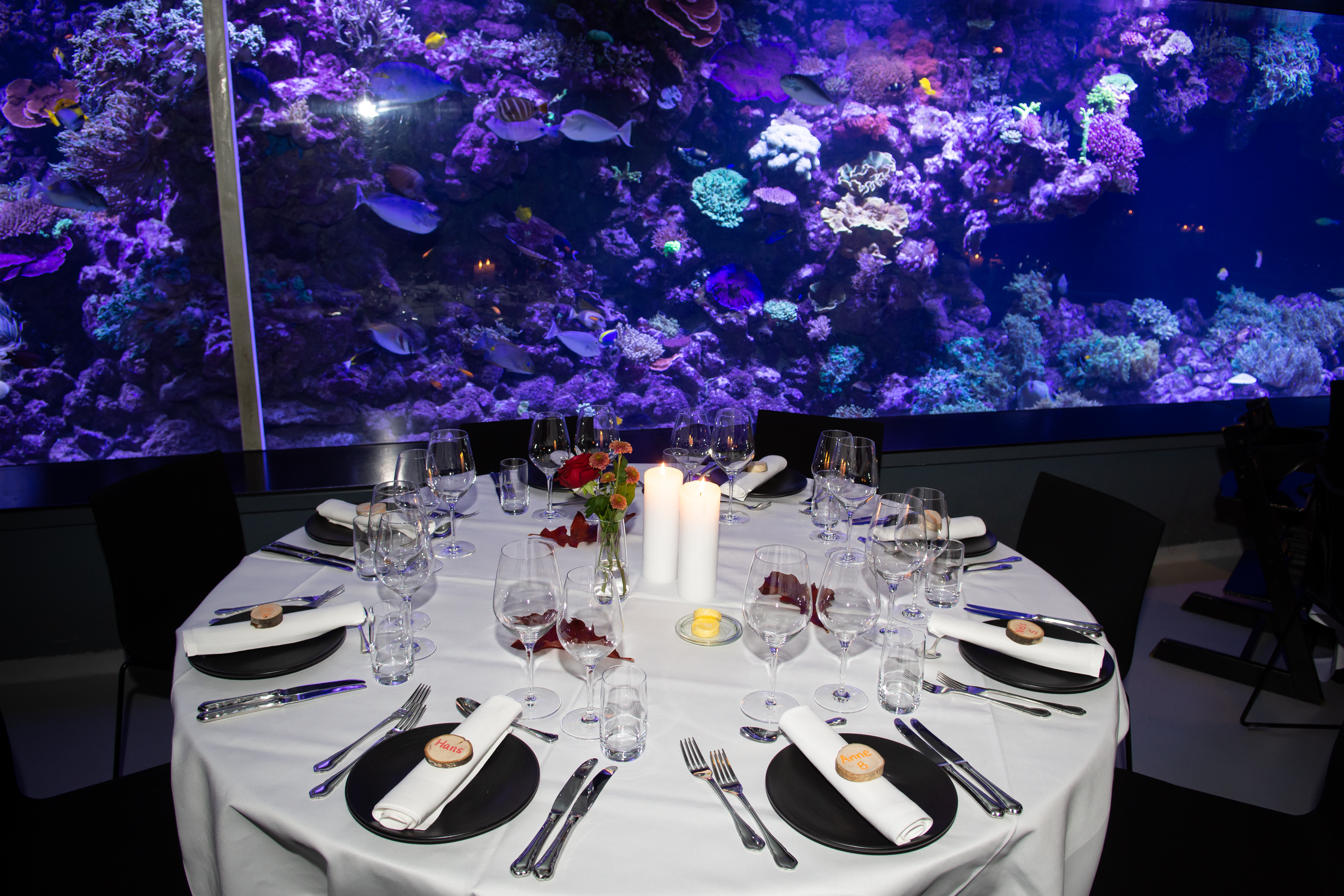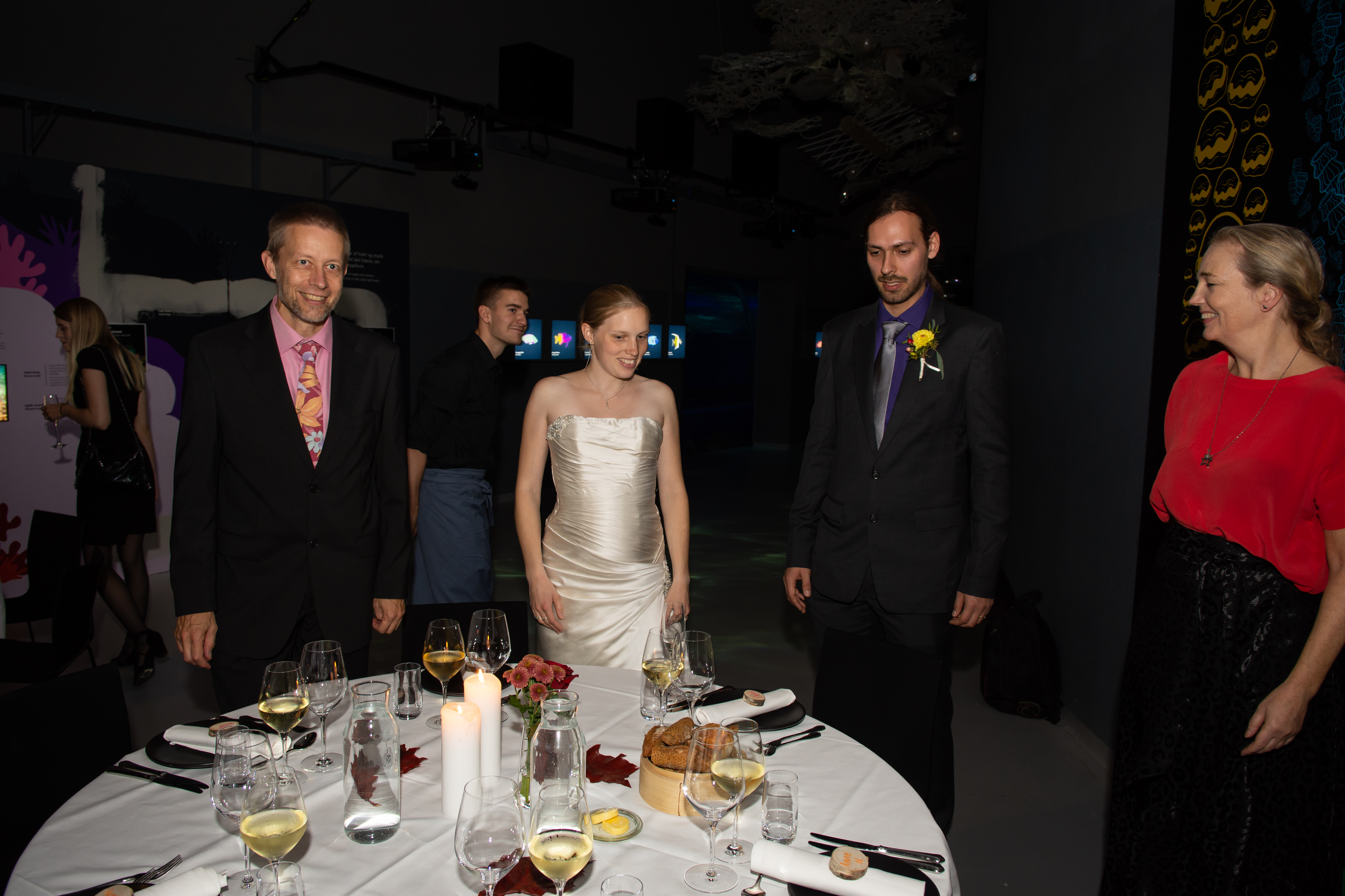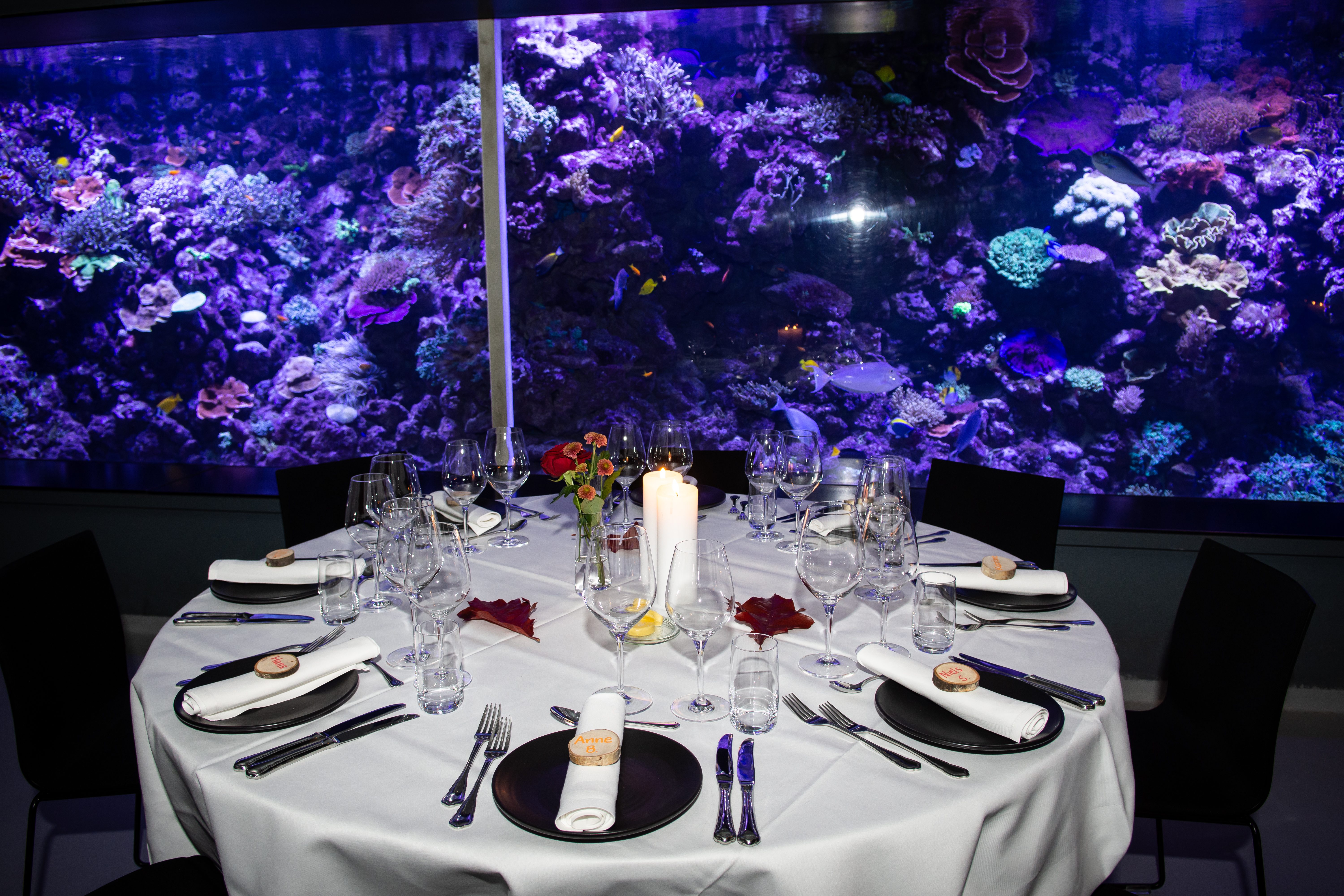 Festen forgår på Den Blå Planet. De holder åbent for deres normale besøgende indtil kl. 17 og derefter skal de nå at gøre klar til festen. Derfor vil det ikke være muligt at komme ind før kl. , hvor vi vil starte ud med velkomstdrinks.