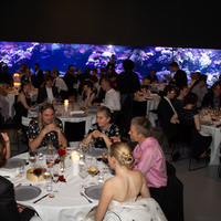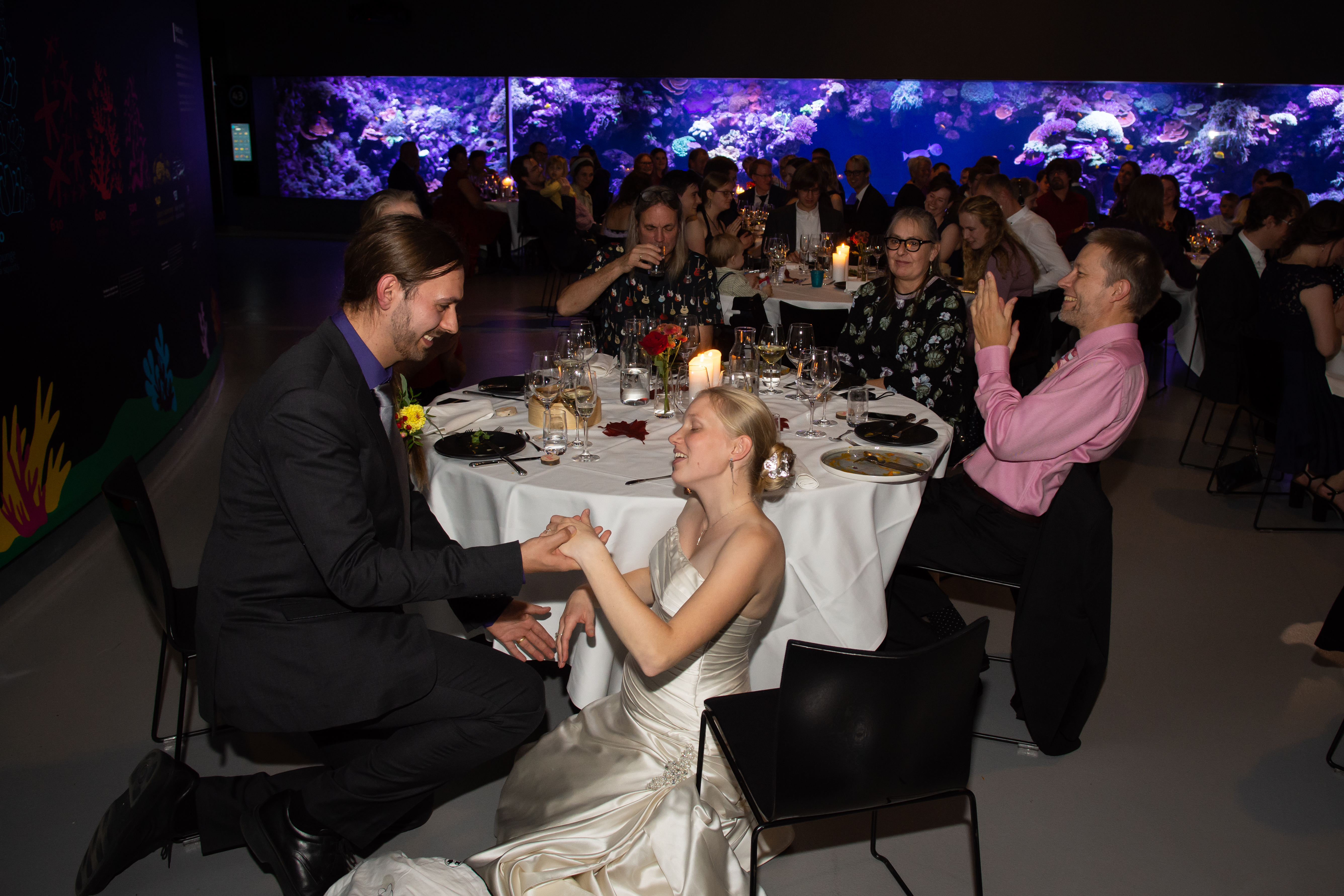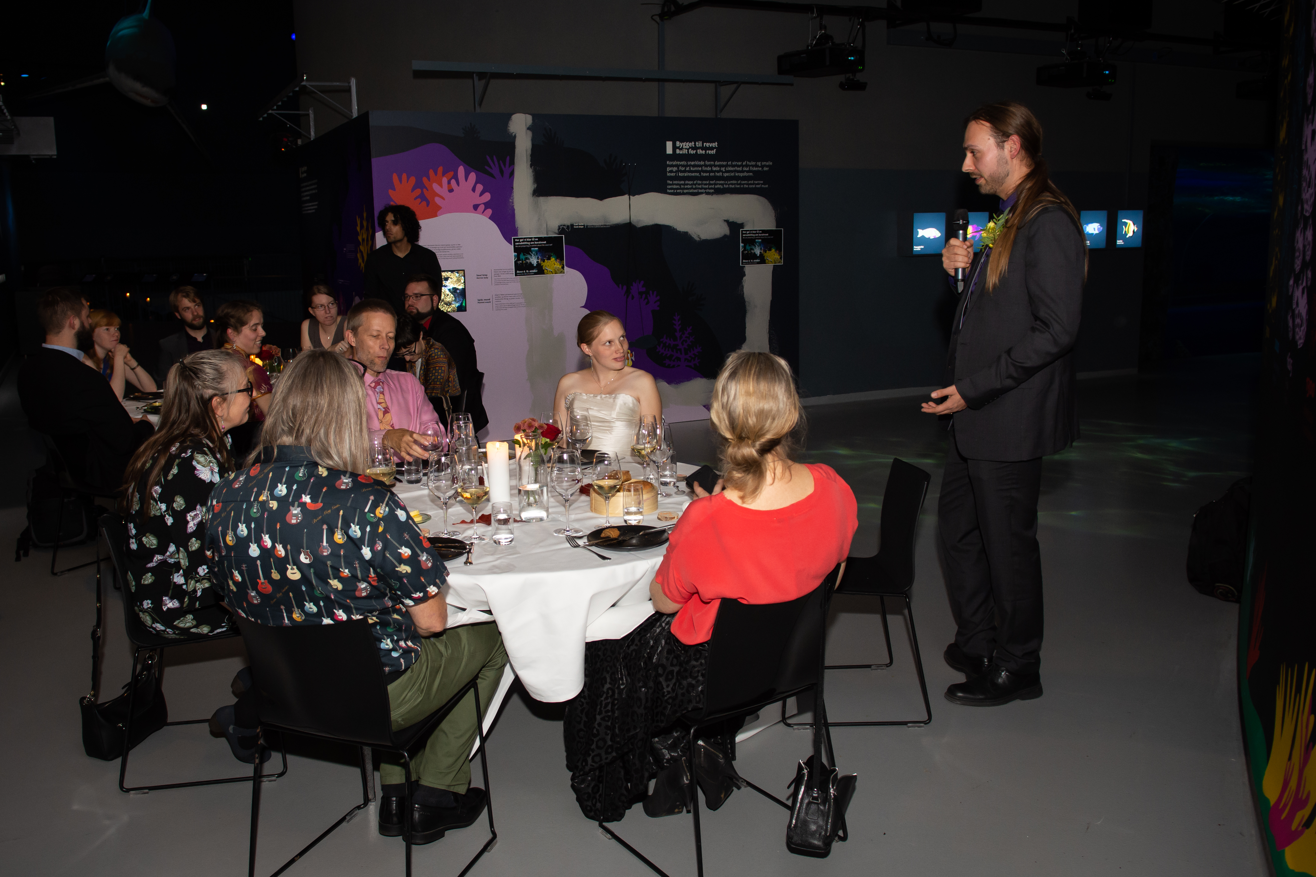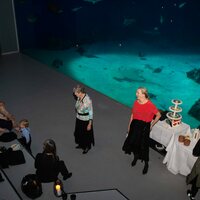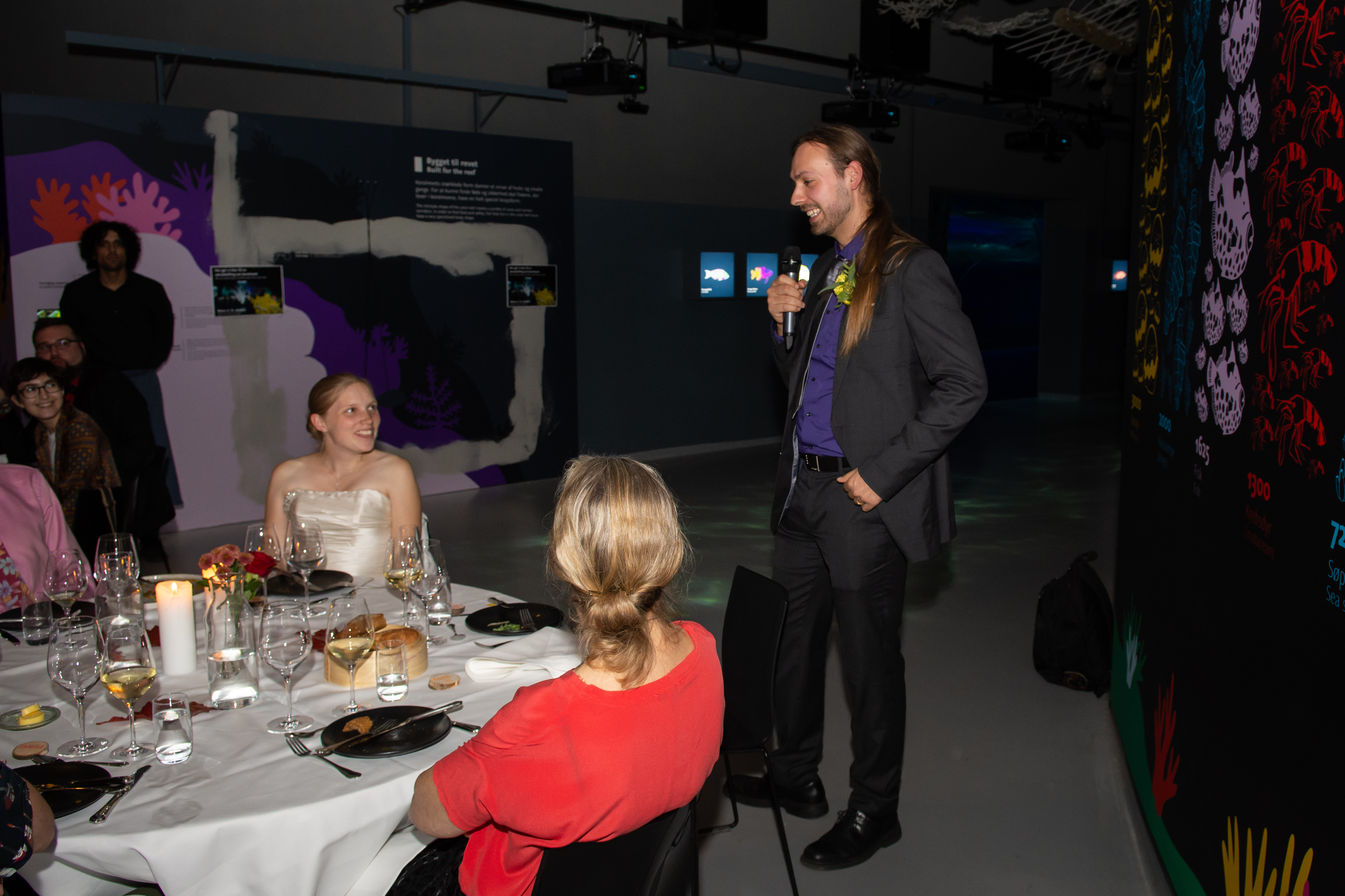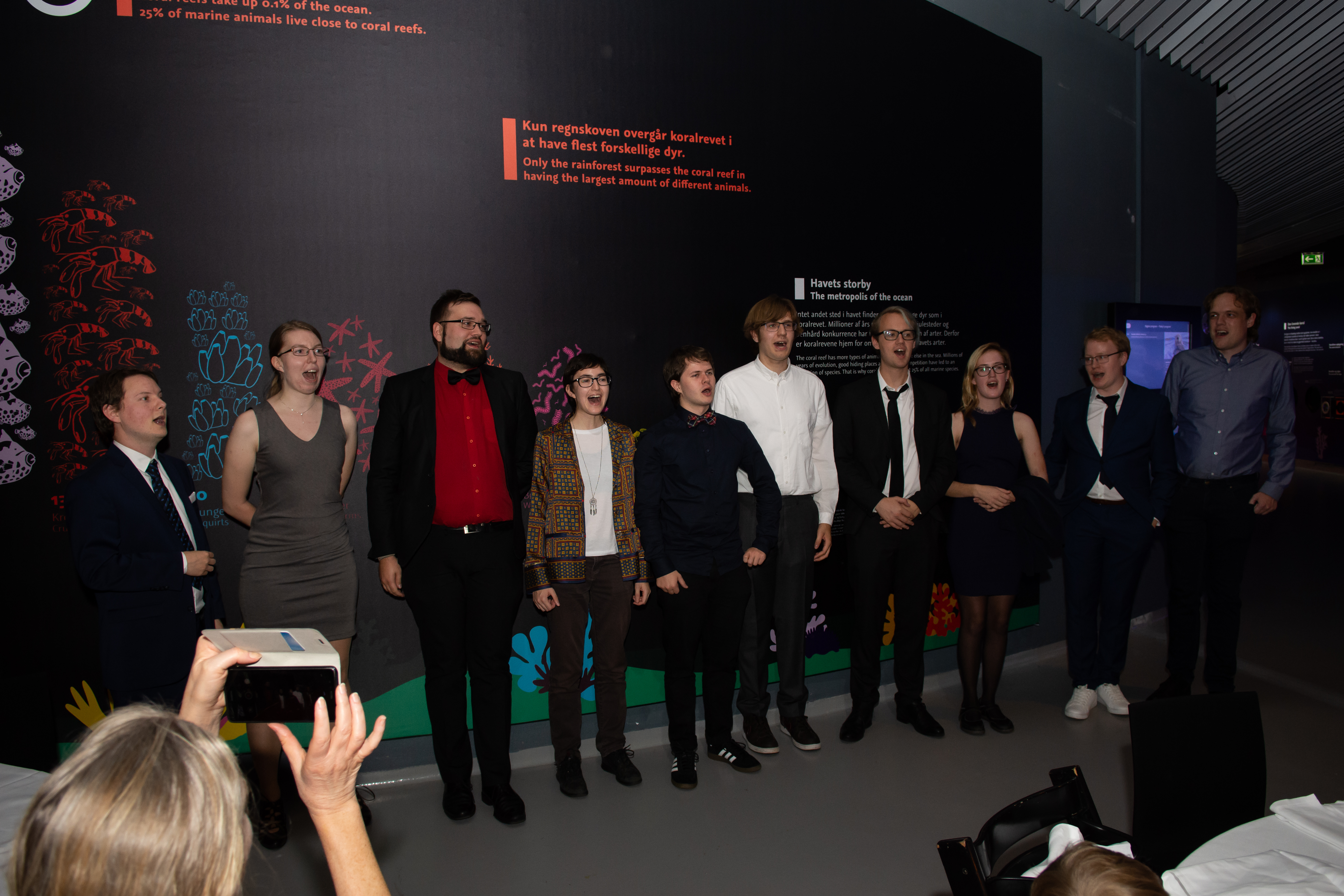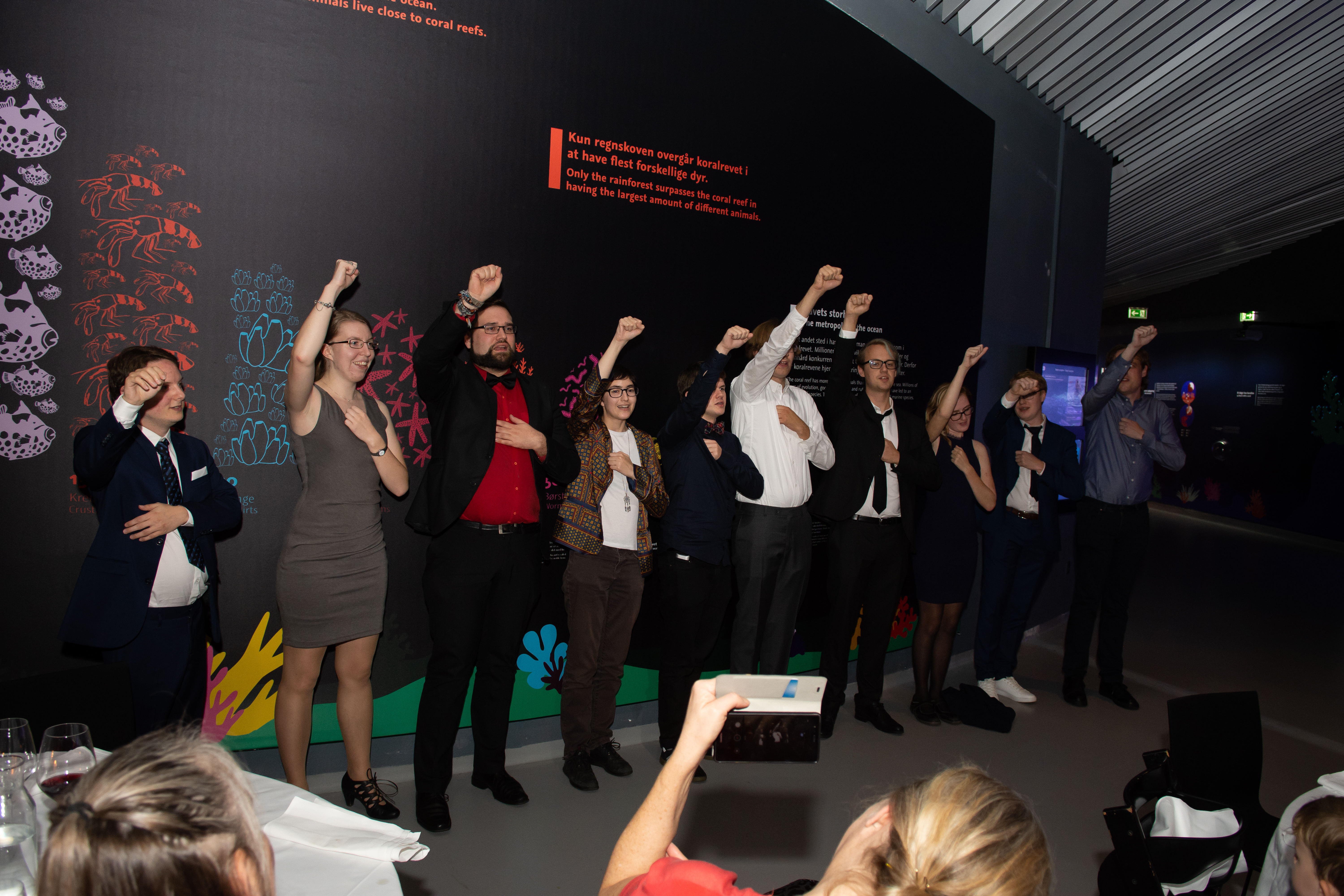 Festen forgår på Den Blå Planet. De holder åbent for deres normale besøgende indtil kl. 17 og derefter skal de nå at gøre klar til festen. Derfor vil det ikke være muligt at komme ind før kl. , hvor vi vil starte ud med velkomstdrinks.