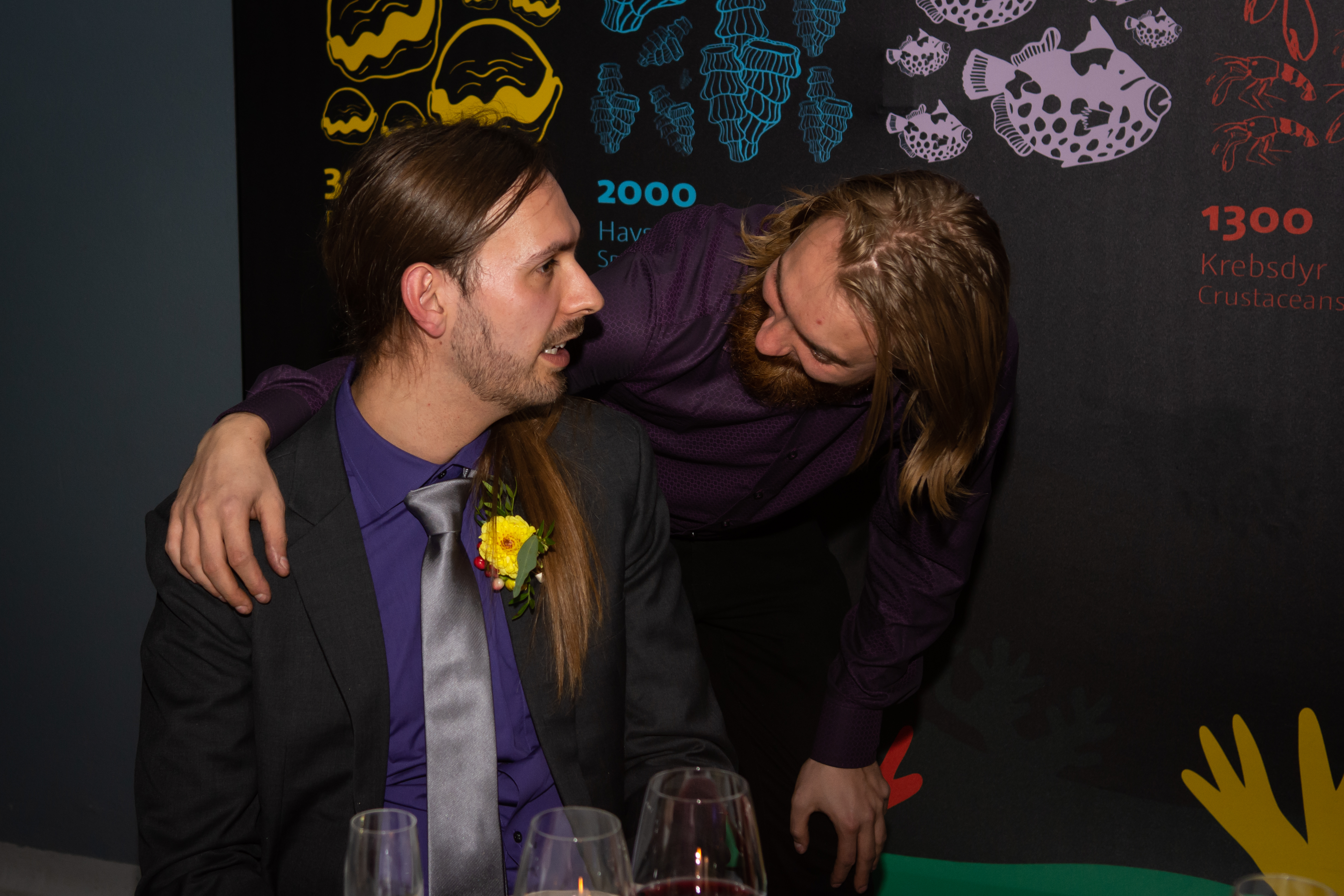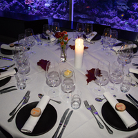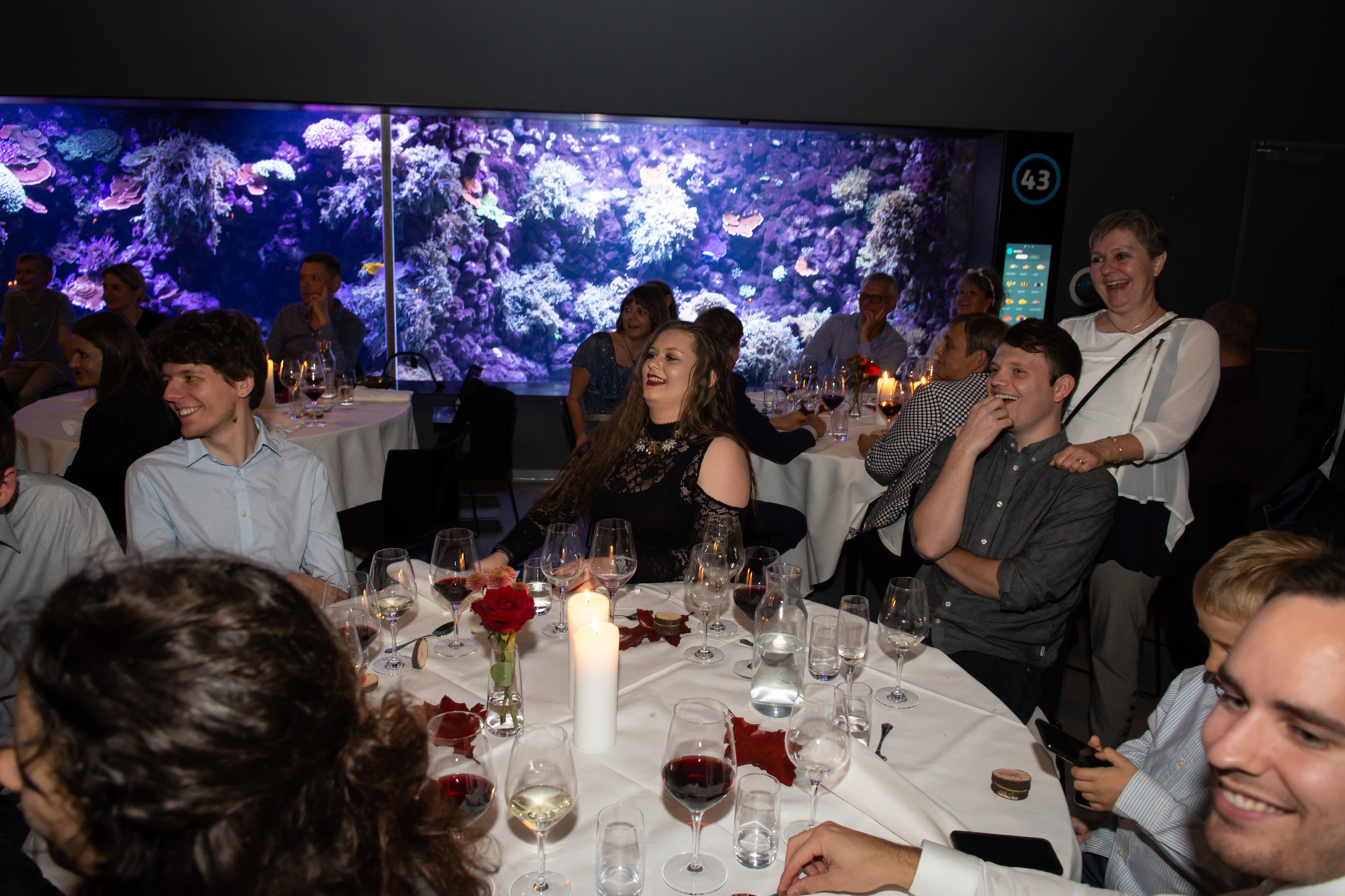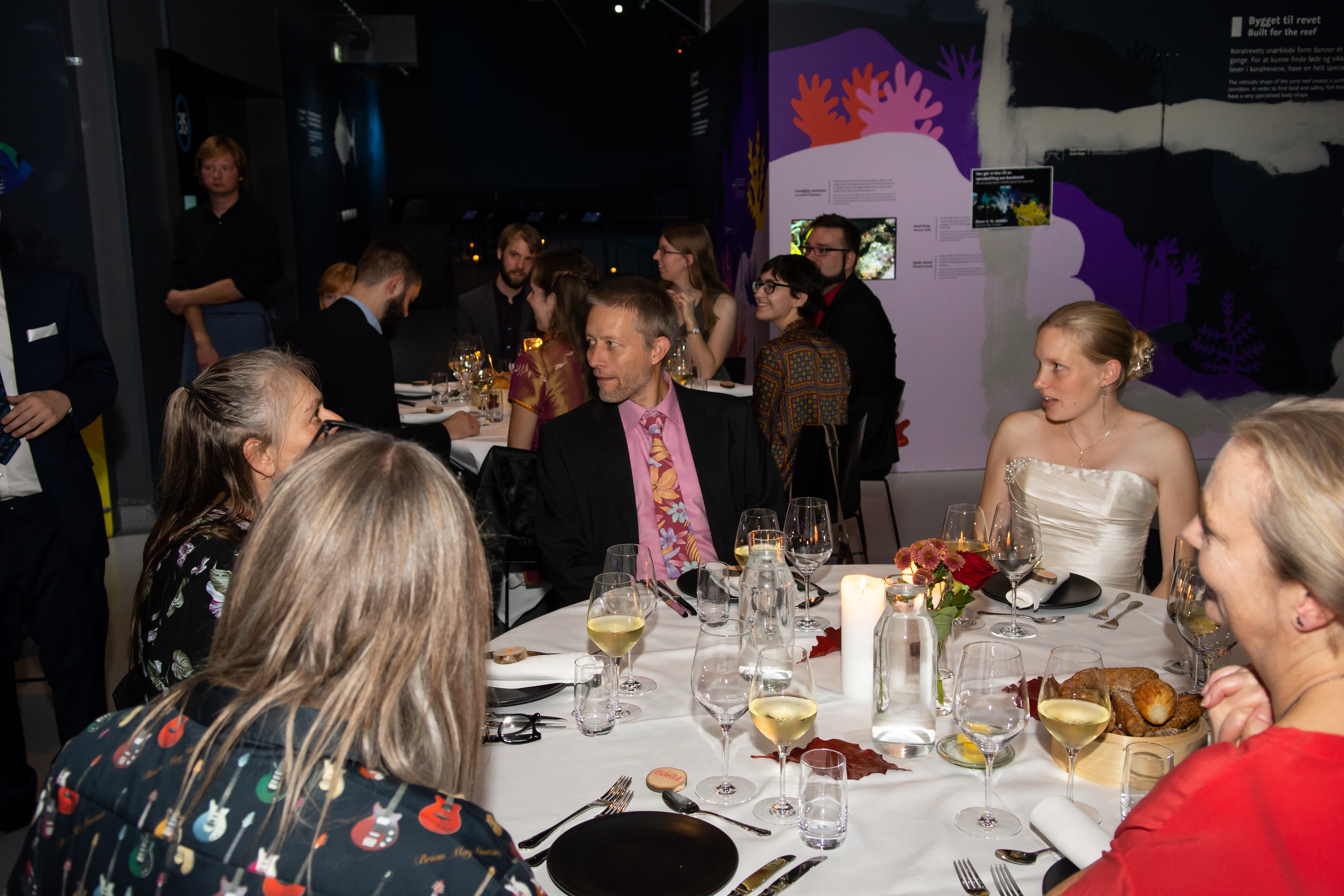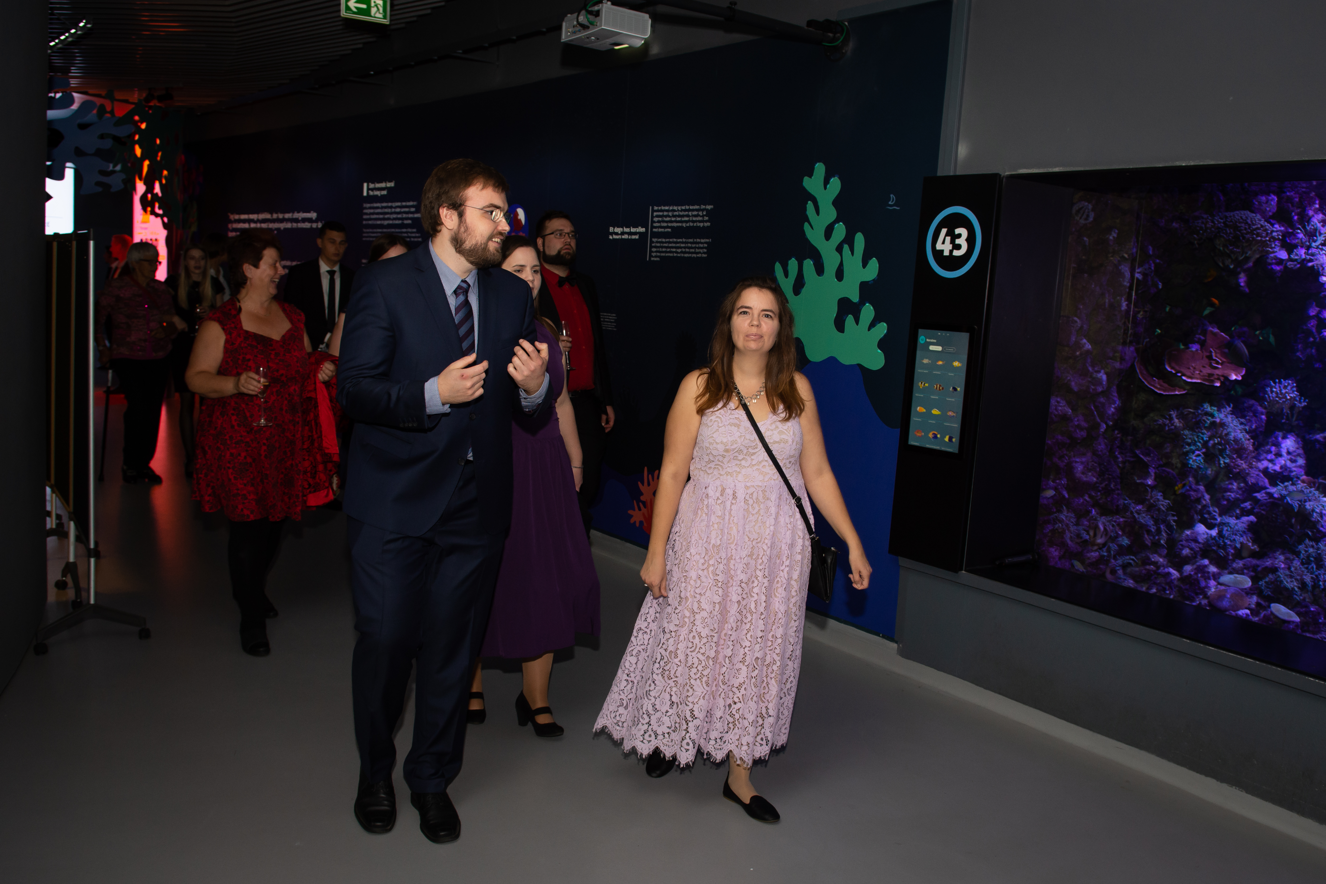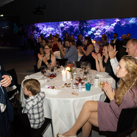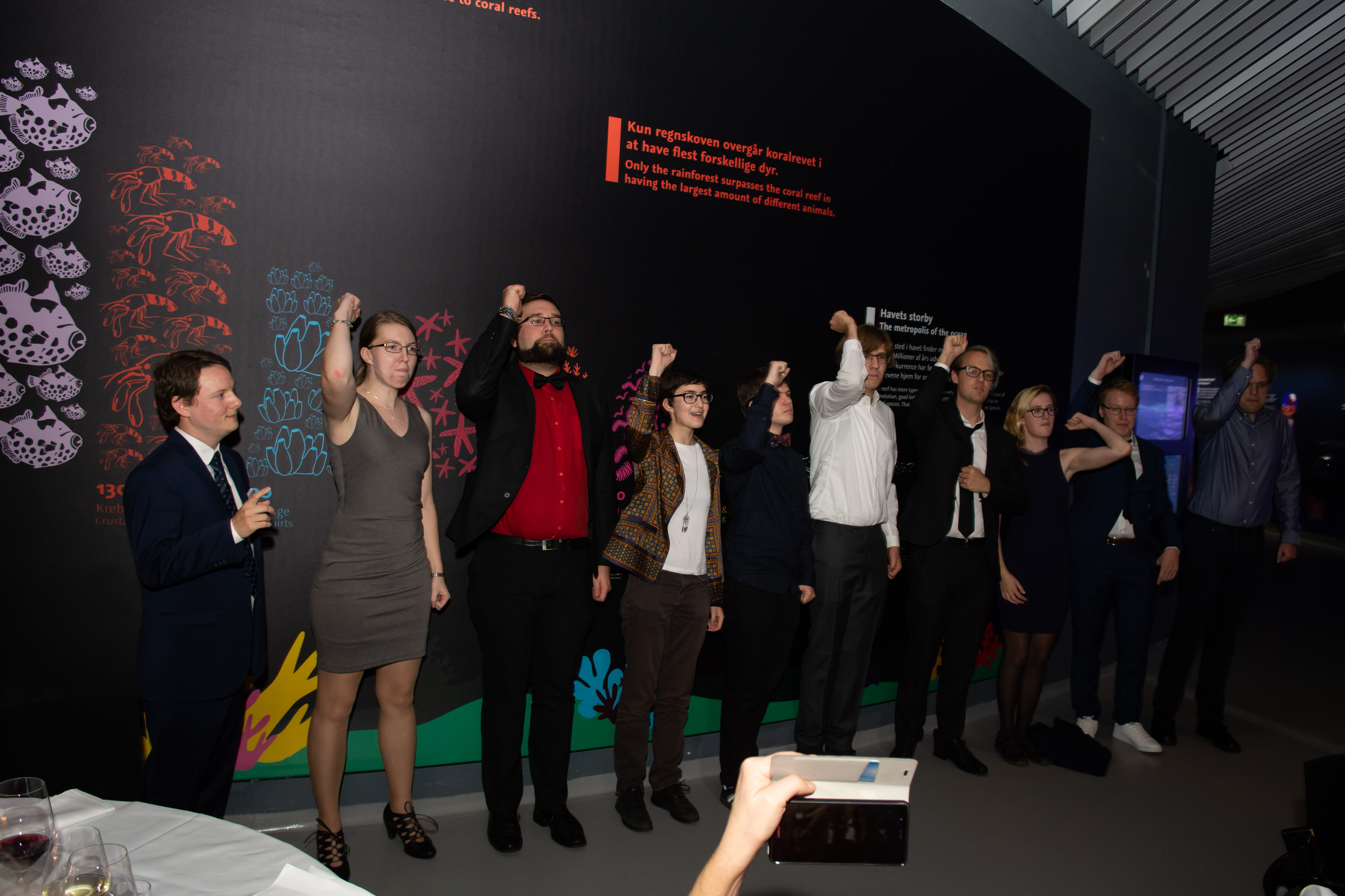 Festen forgår på Den Blå Planet. De holder åbent for deres normale besøgende indtil kl. 17 og derefter skal de nå at gøre klar til festen. Derfor vil det ikke være muligt at komme ind før kl. , hvor vi vil starte ud med velkomstdrinks.