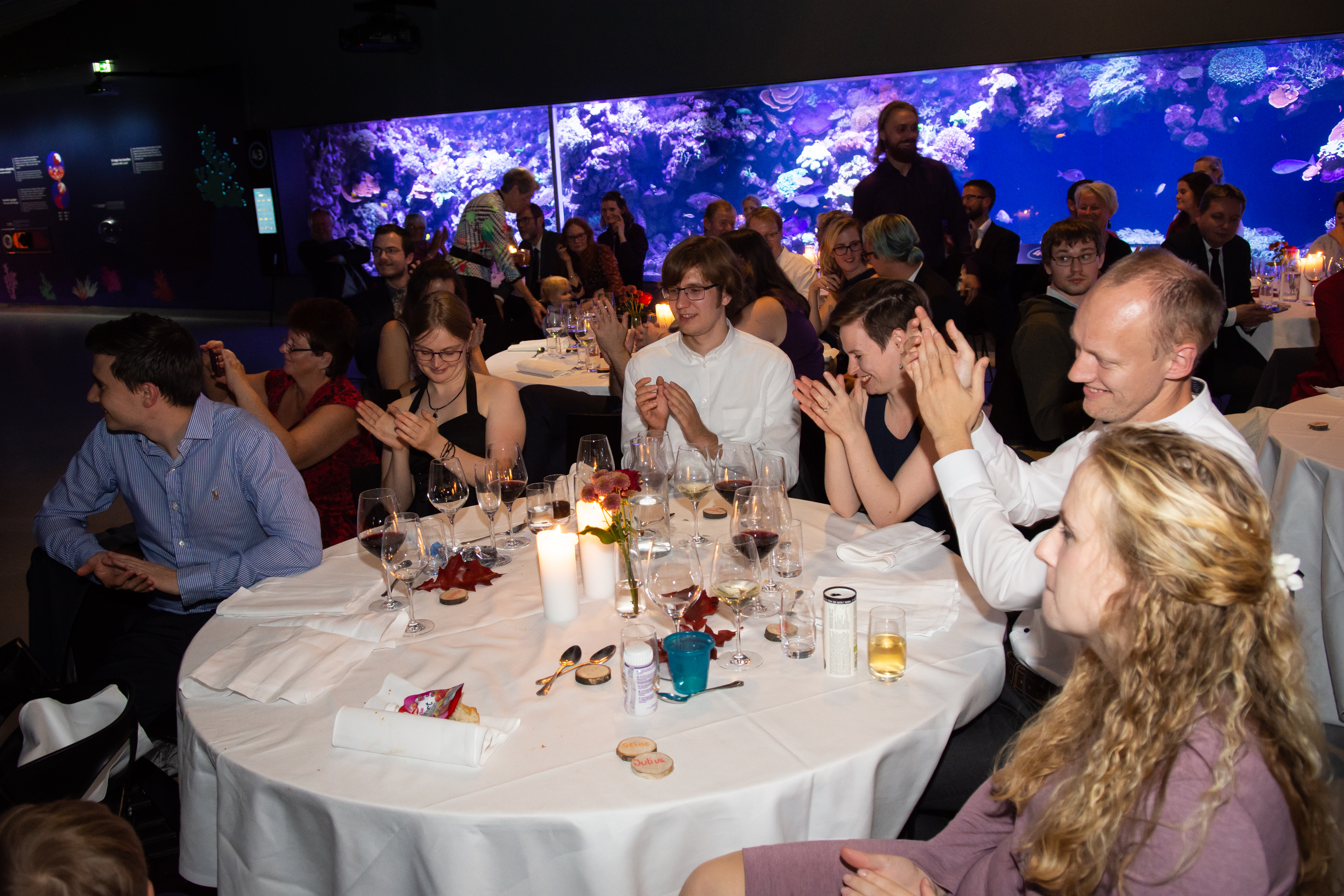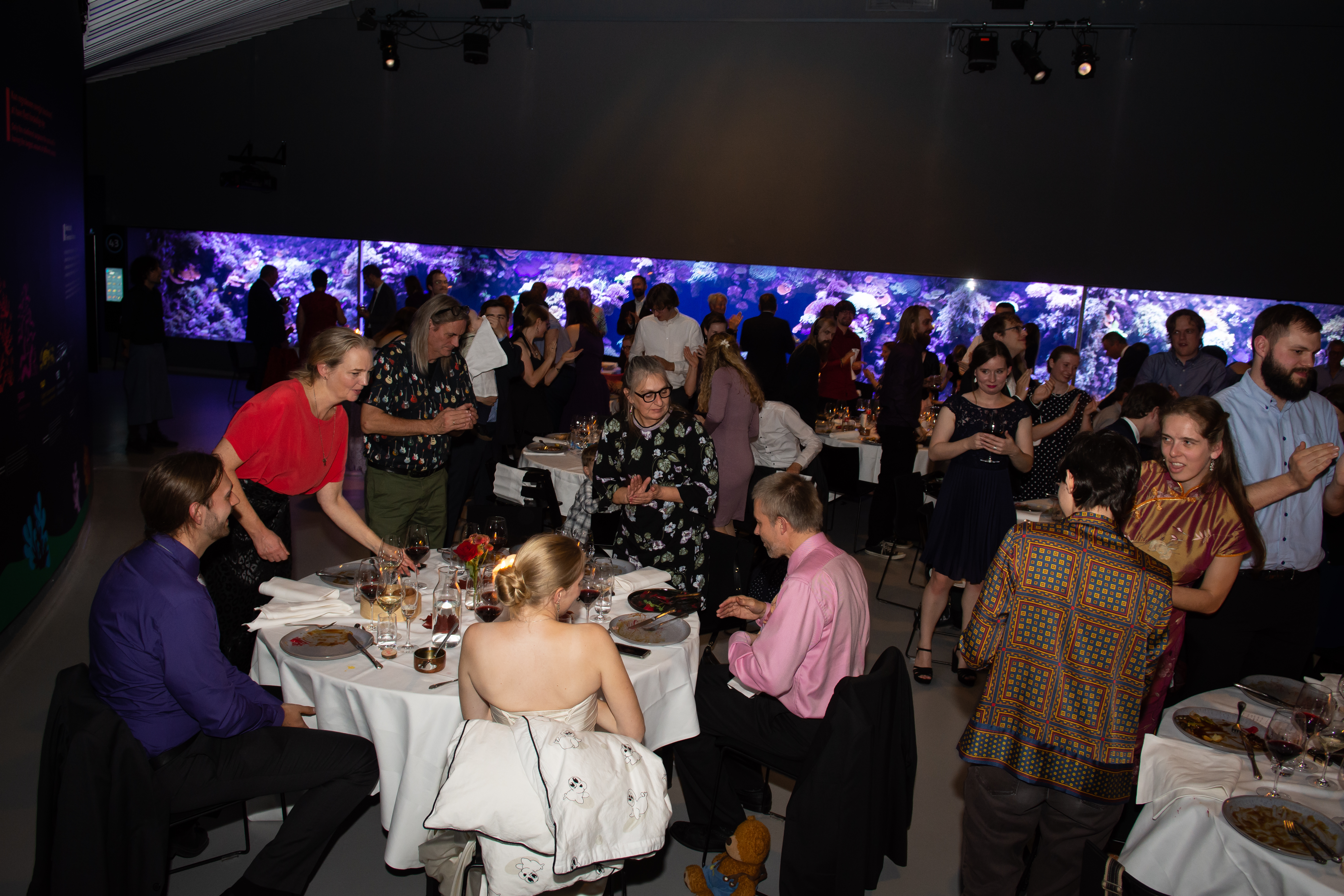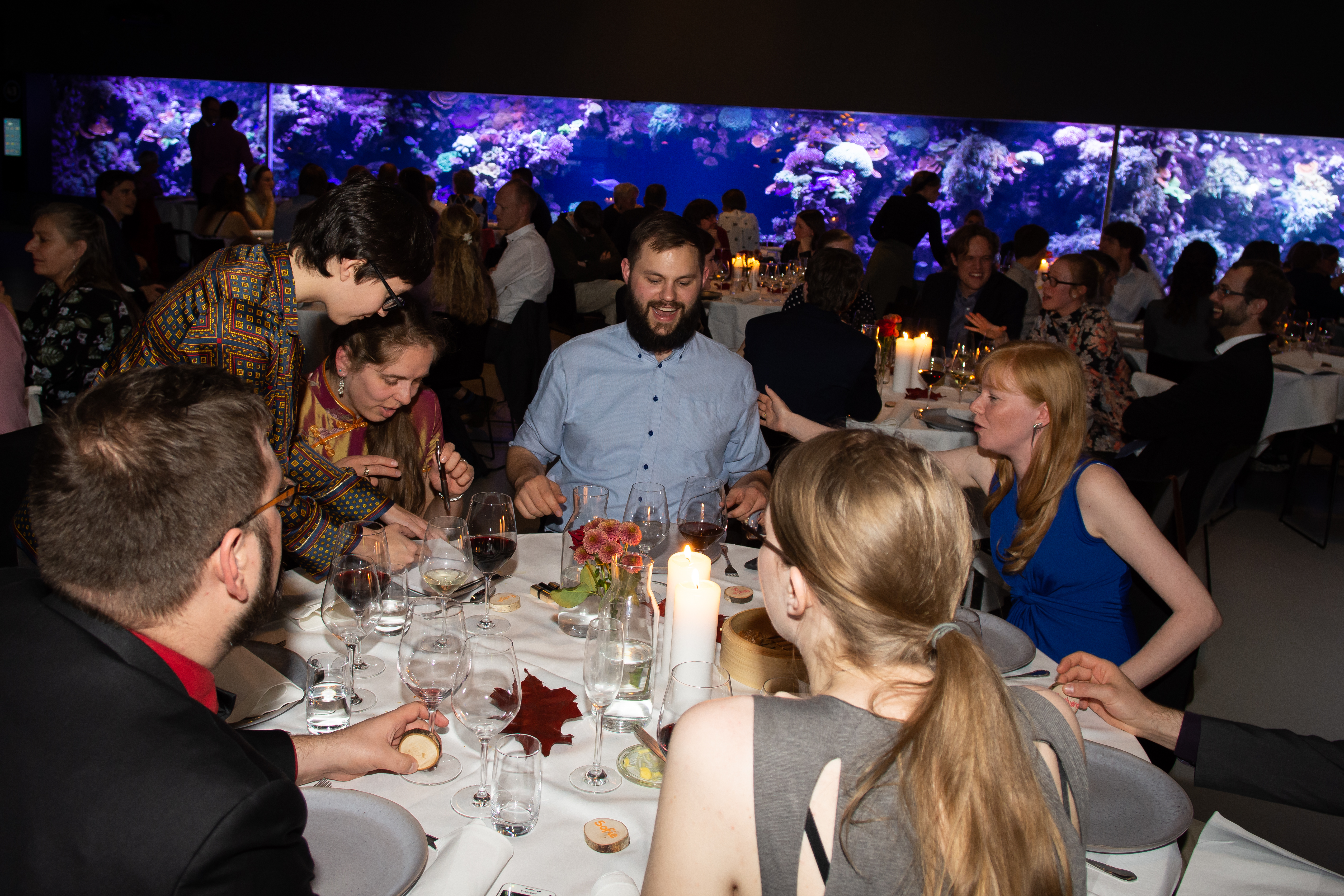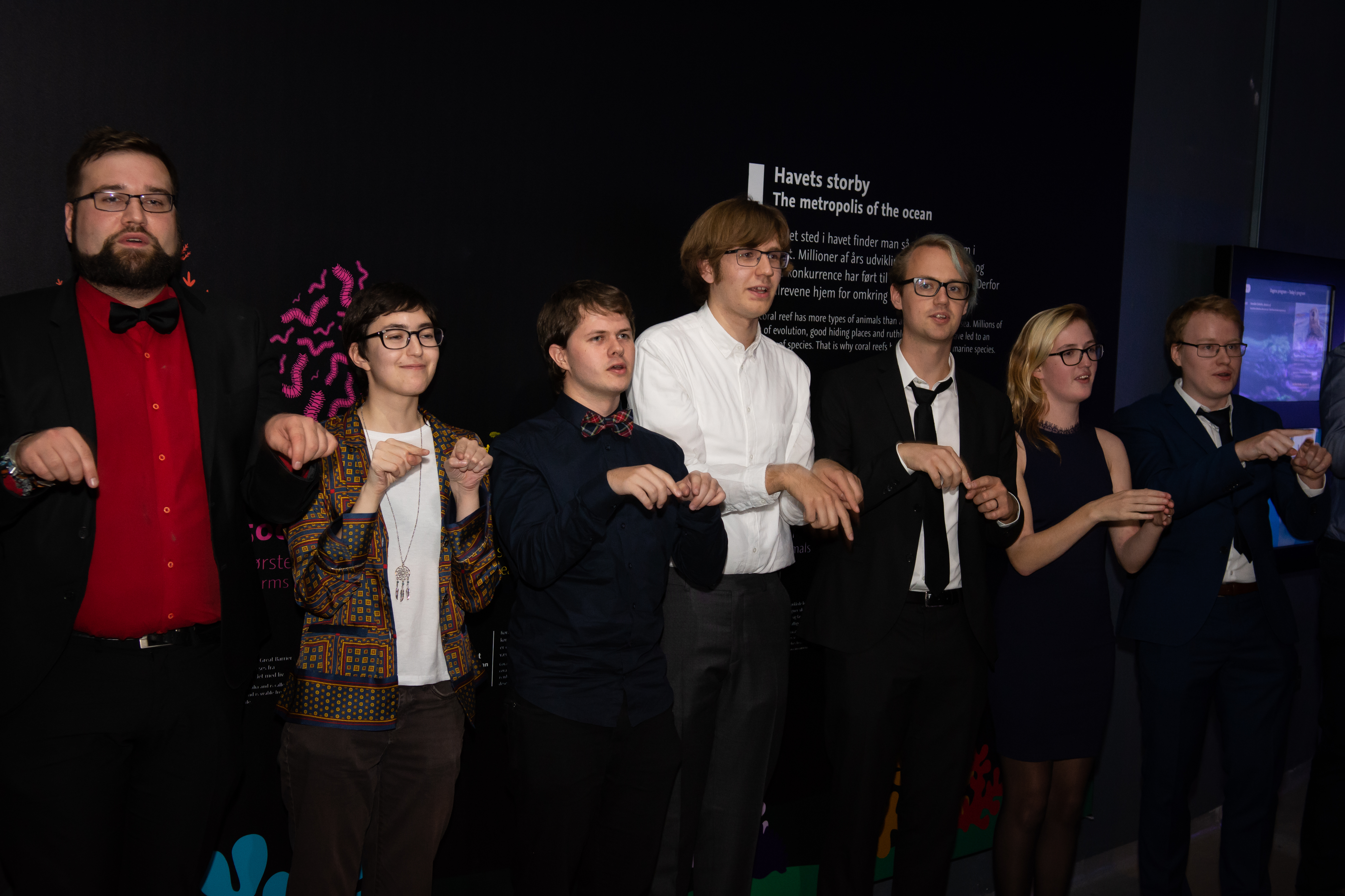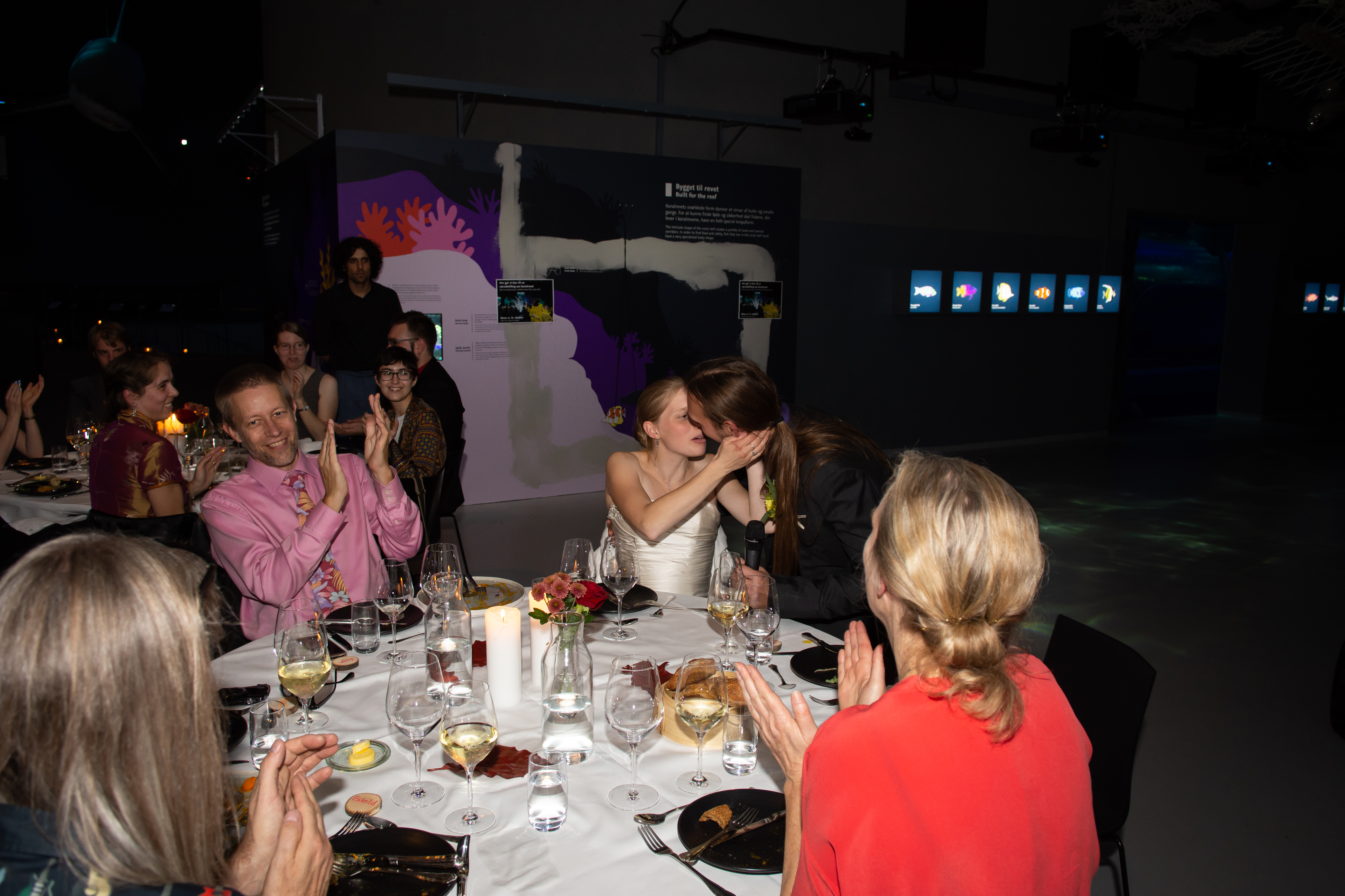 Festen forgår på Den Blå Planet. De holder åbent for deres normale besøgende indtil kl. 17 og derefter skal de nå at gøre klar til festen. Derfor vil det ikke være muligt at komme ind før kl. , hvor vi vil starte ud med velkomstdrinks.