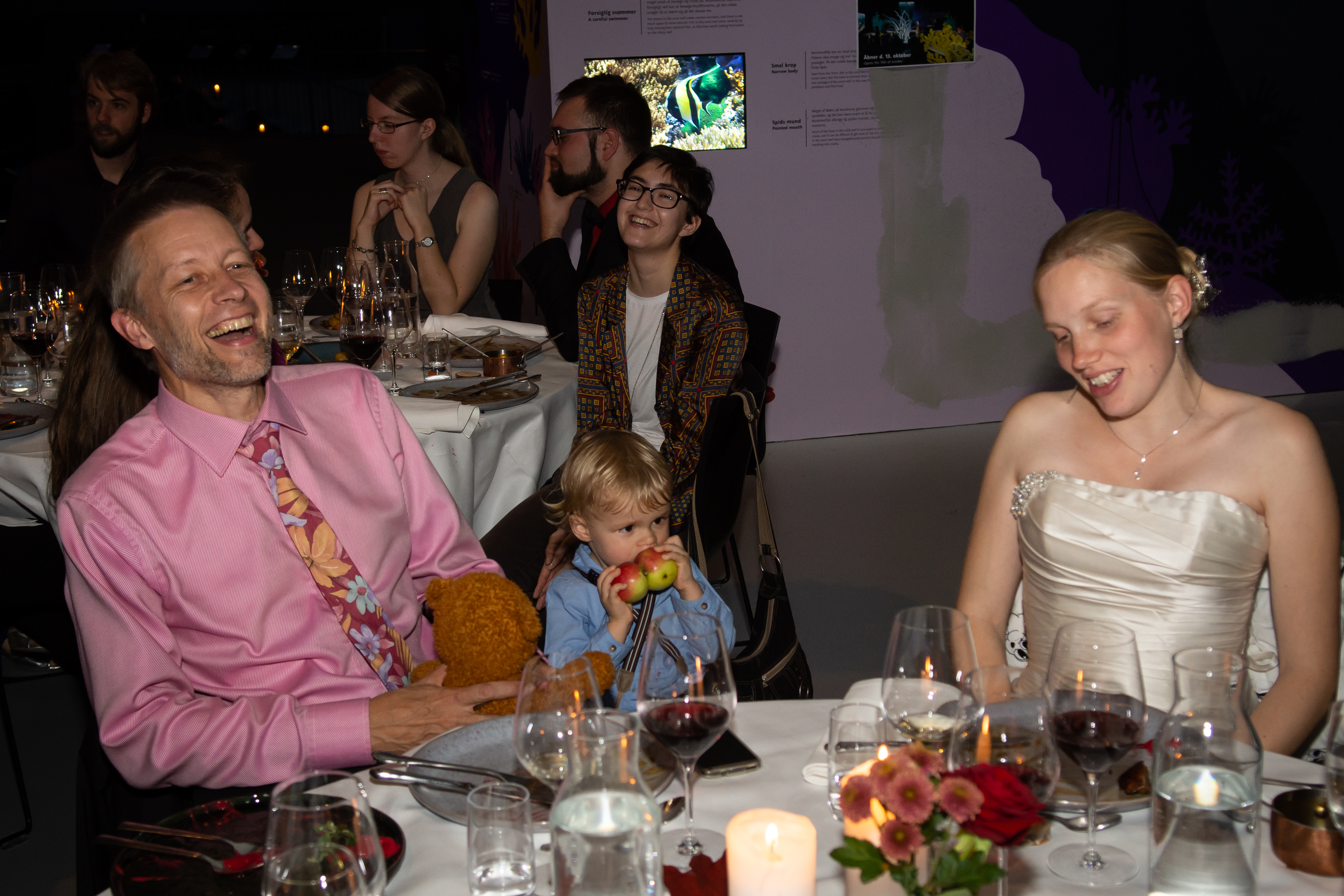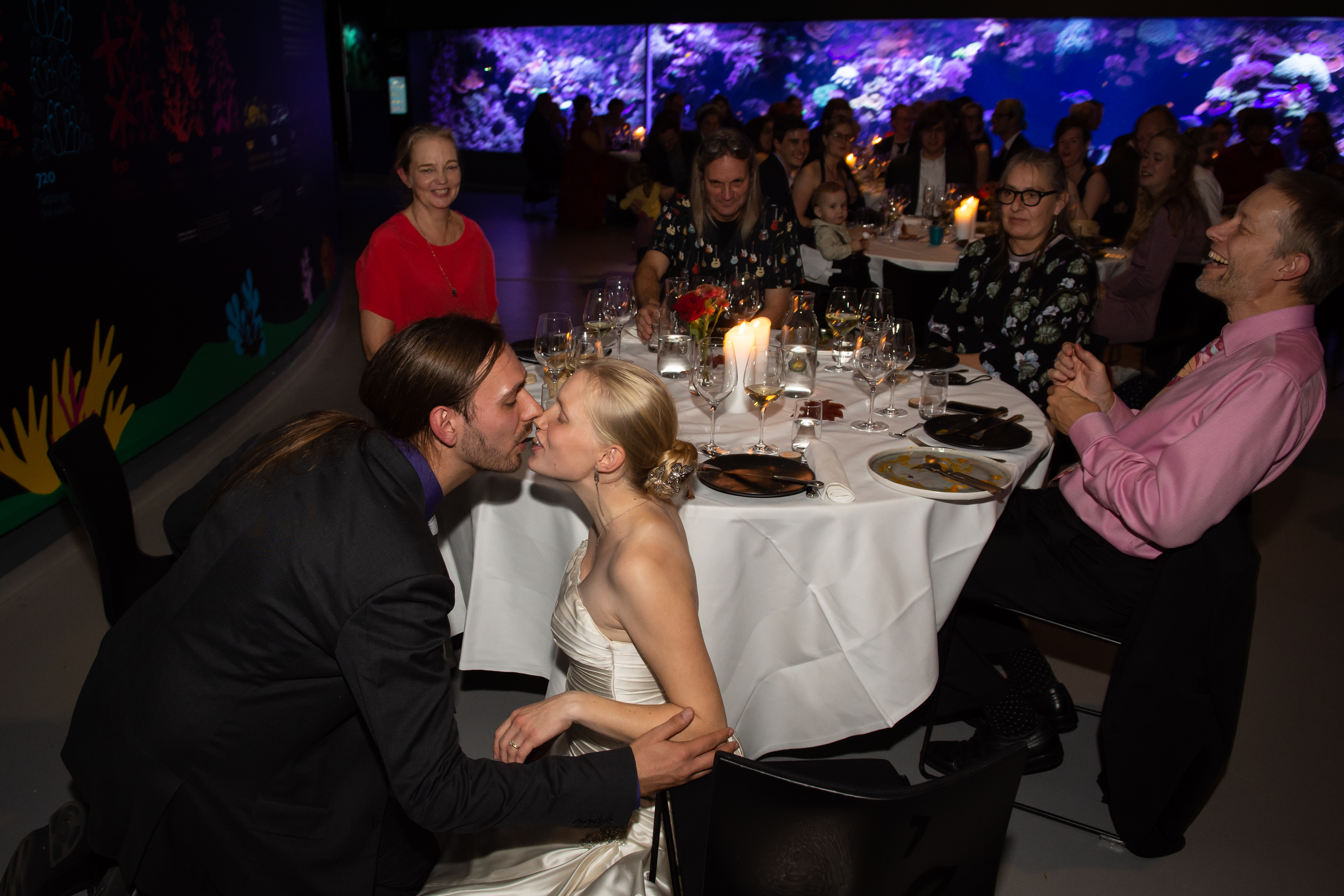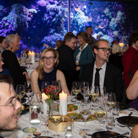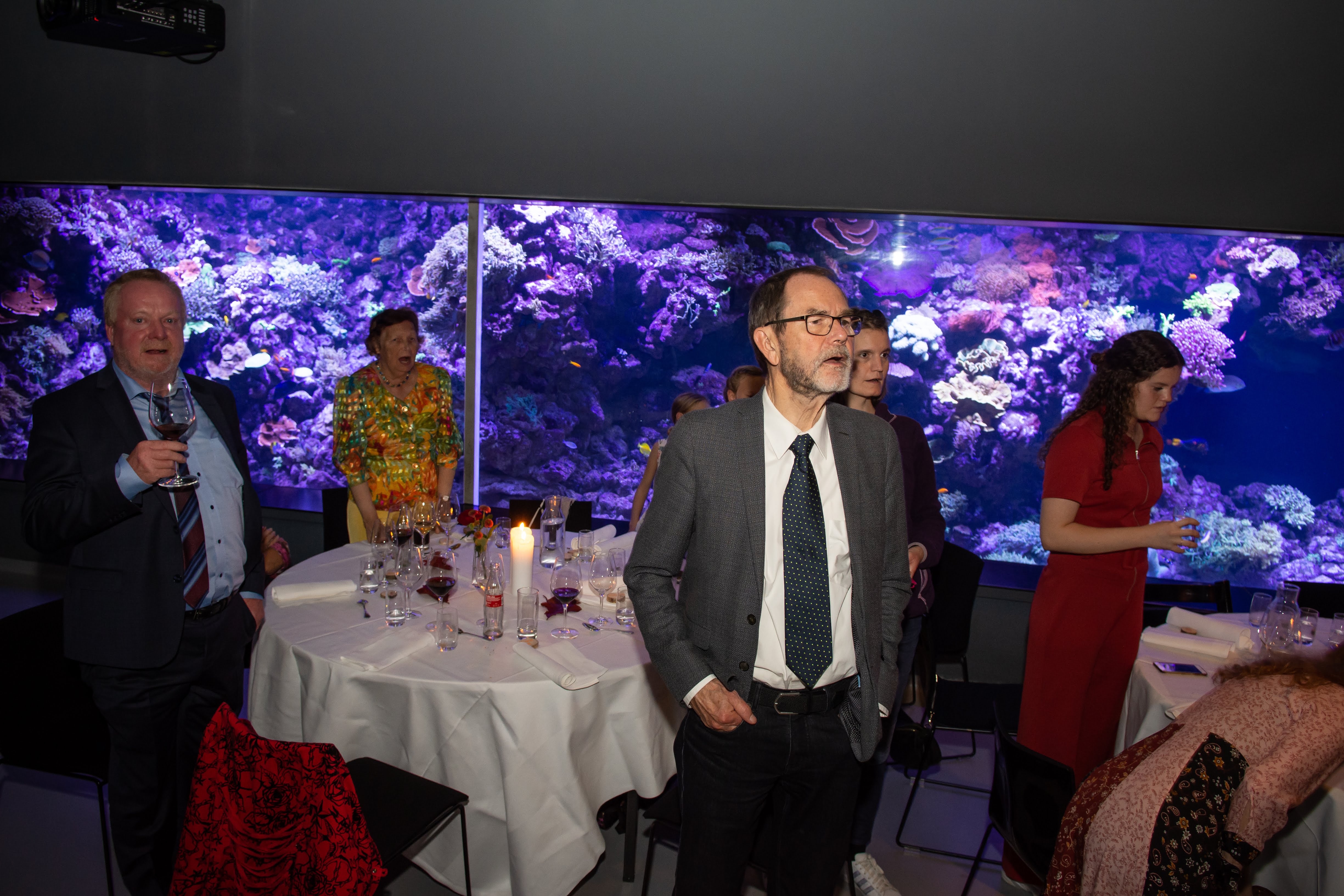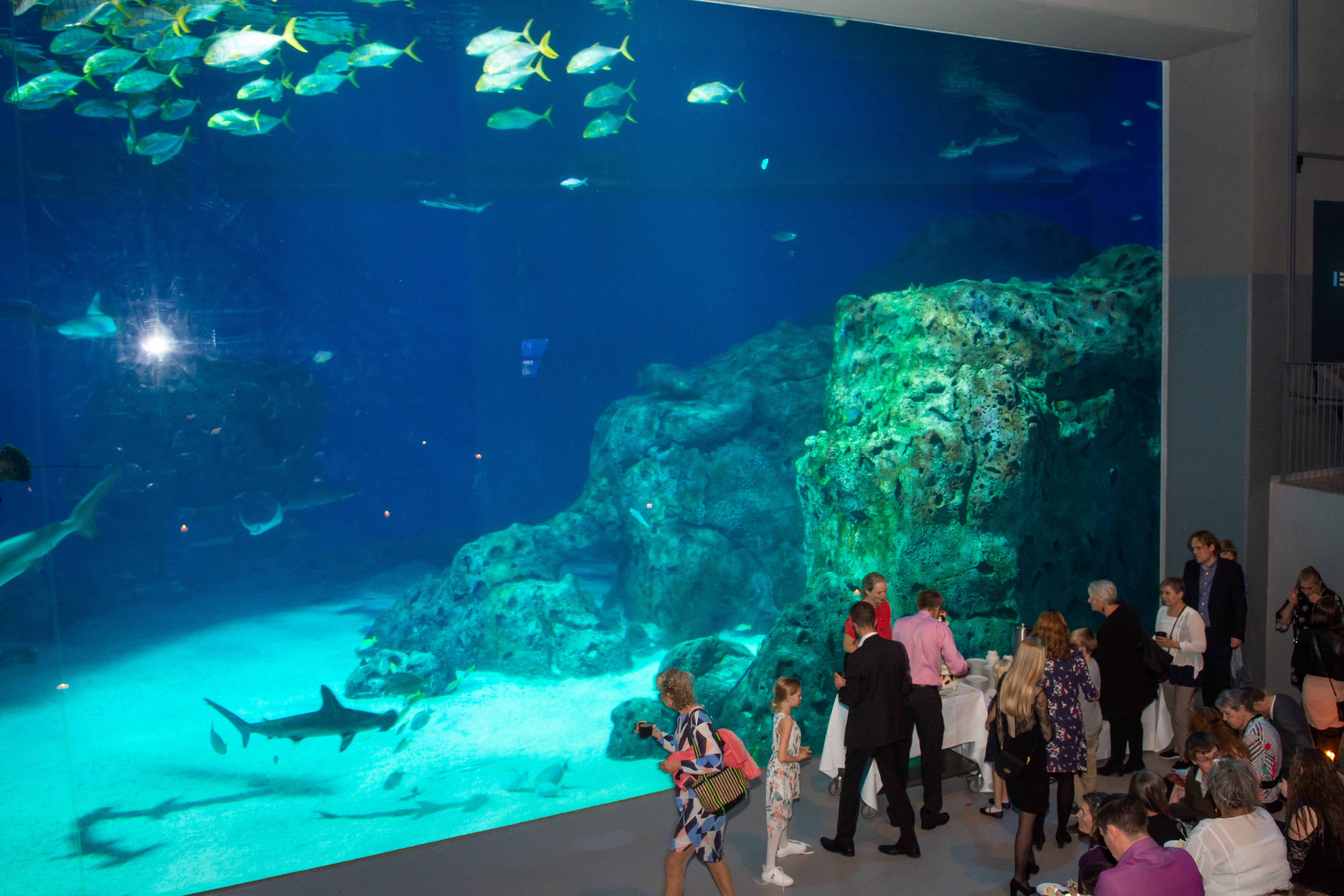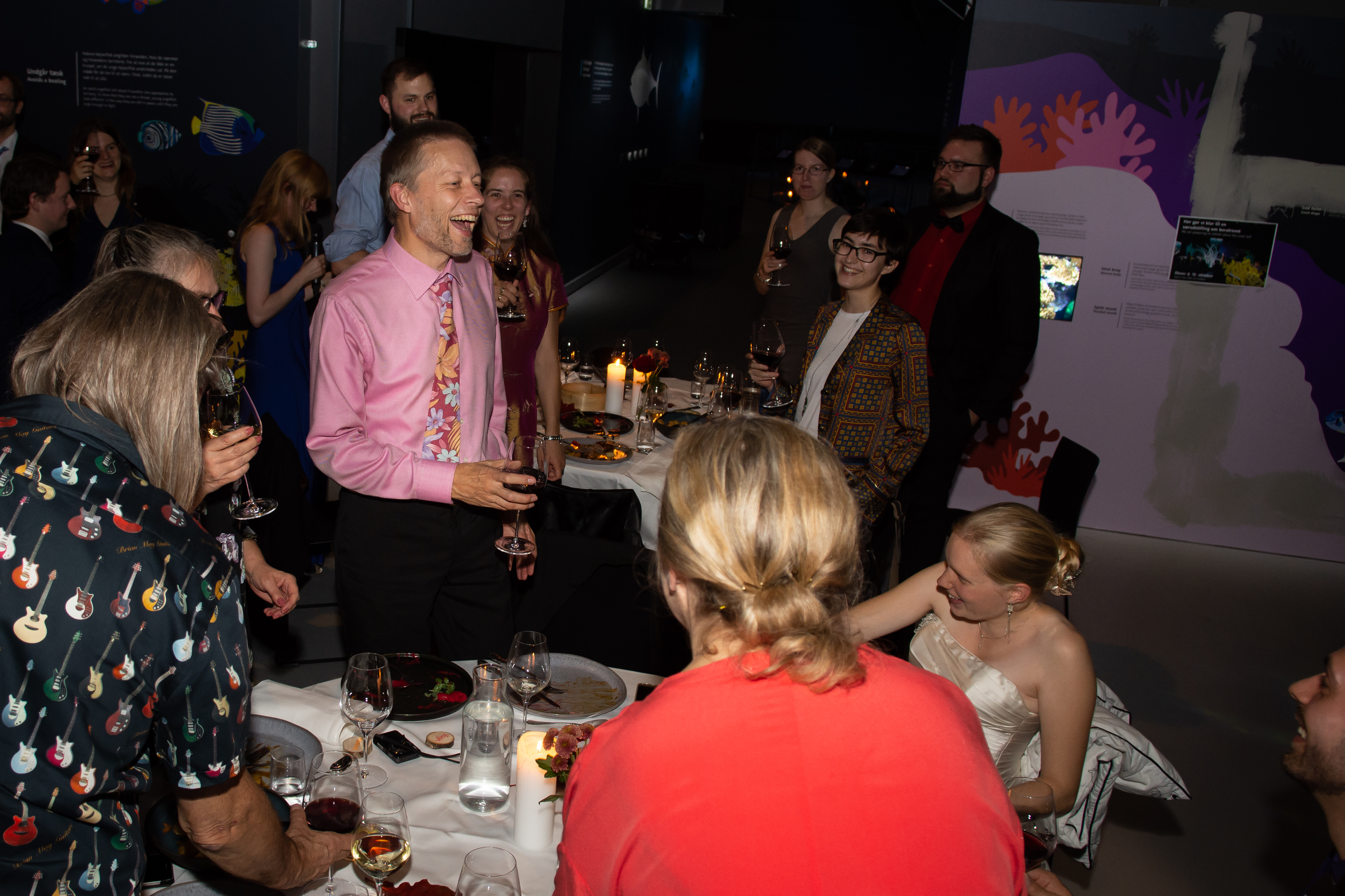 Festen forgår på Den Blå Planet. De holder åbent for deres normale besøgende indtil kl. 17 og derefter skal de nå at gøre klar til festen. Derfor vil det ikke være muligt at komme ind før kl. , hvor vi vil starte ud med velkomstdrinks.