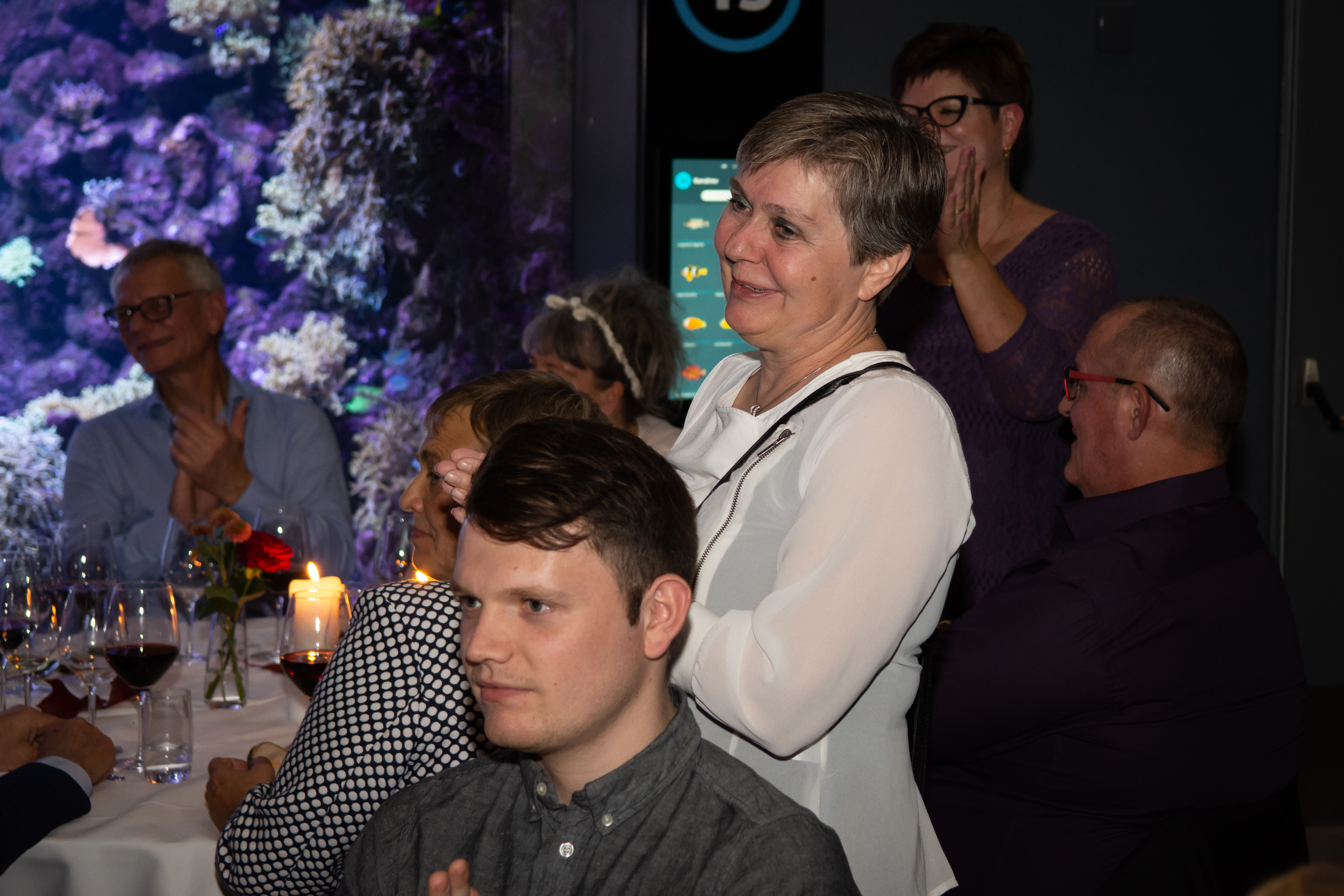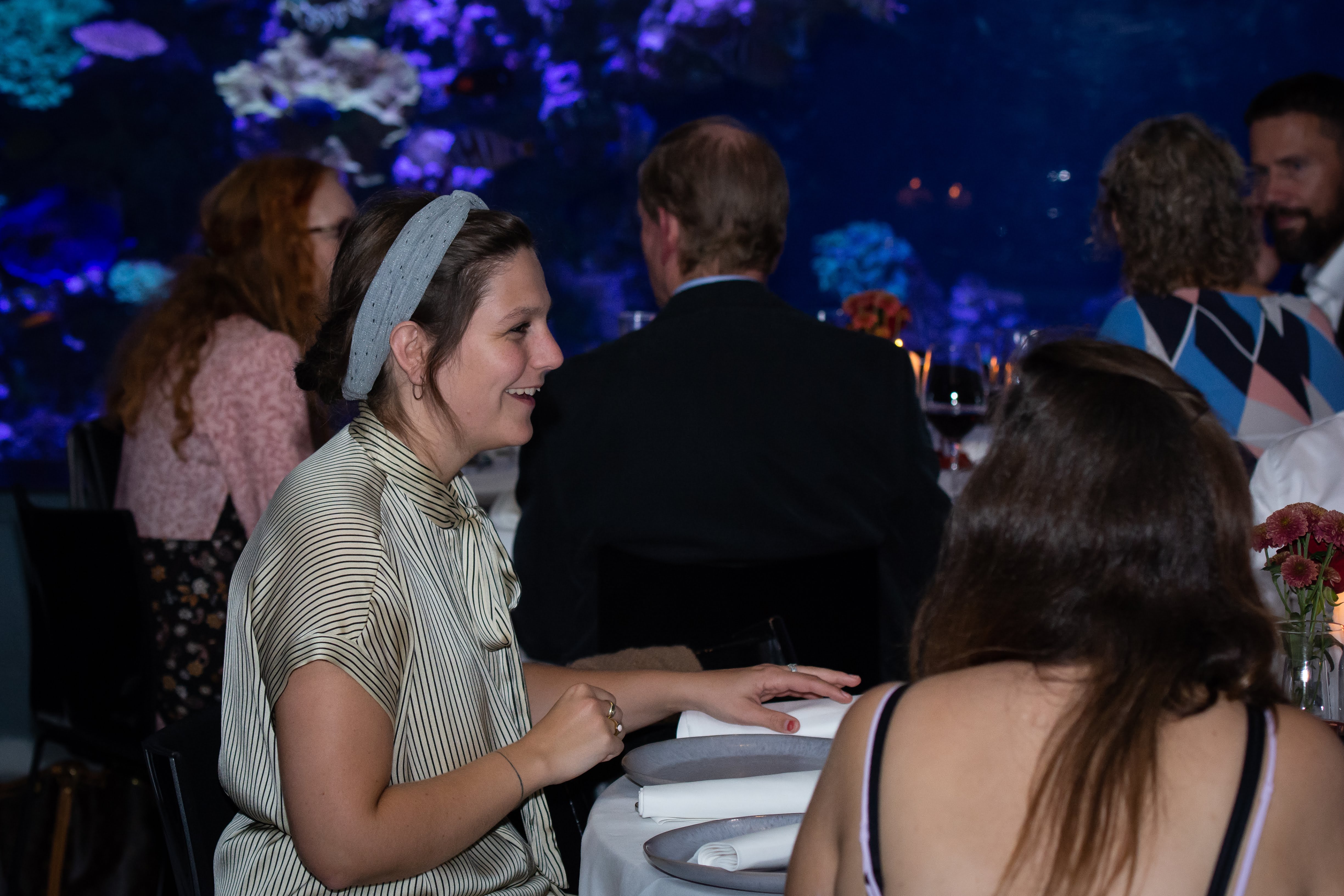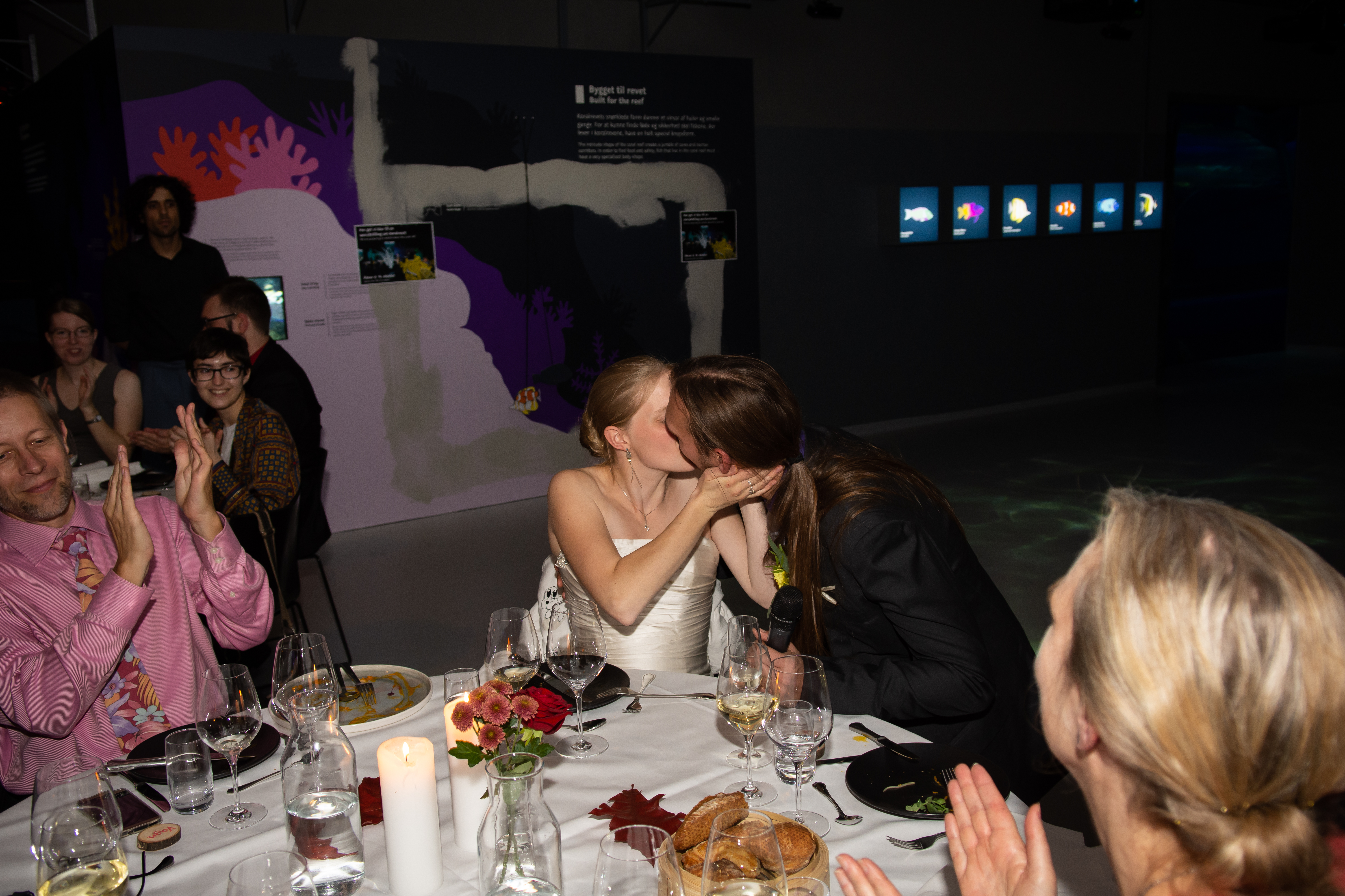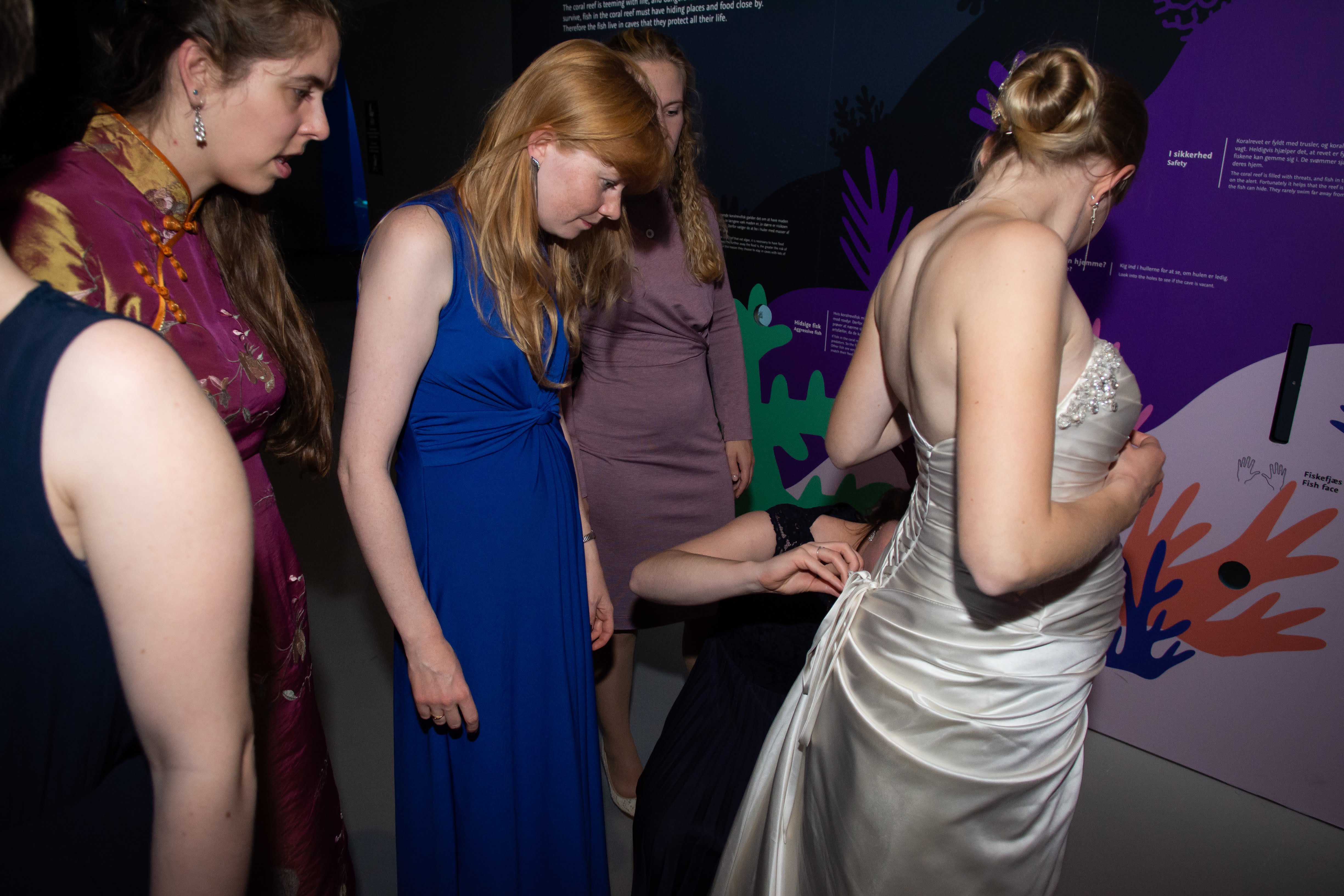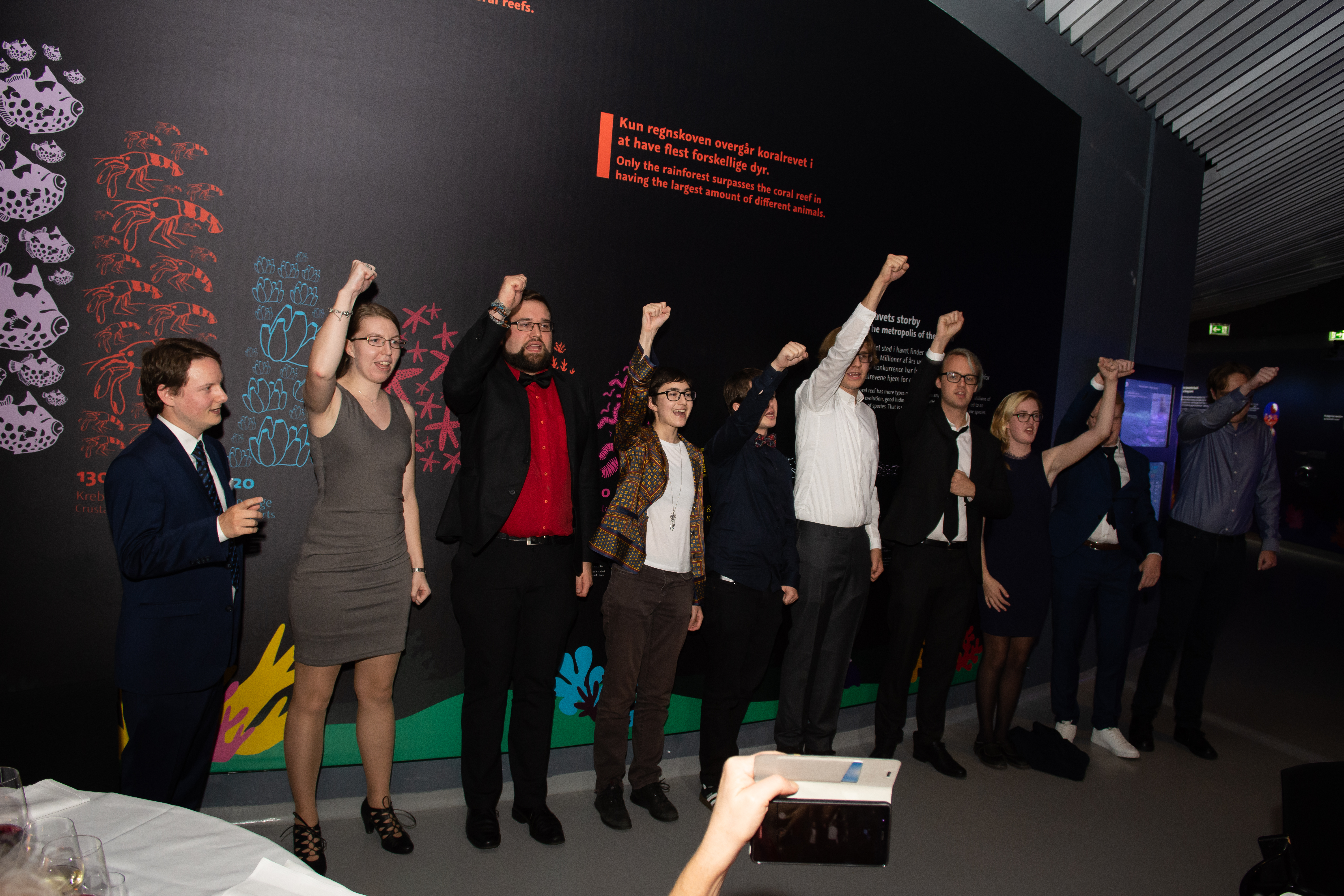 Festen forgår på Den Blå Planet. De holder åbent for deres normale besøgende indtil kl. 17 og derefter skal de nå at gøre klar til festen. Derfor vil det ikke være muligt at komme ind før kl. , hvor vi vil starte ud med velkomstdrinks.