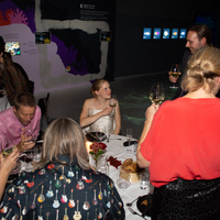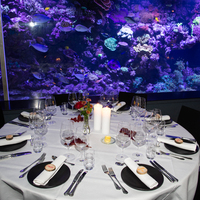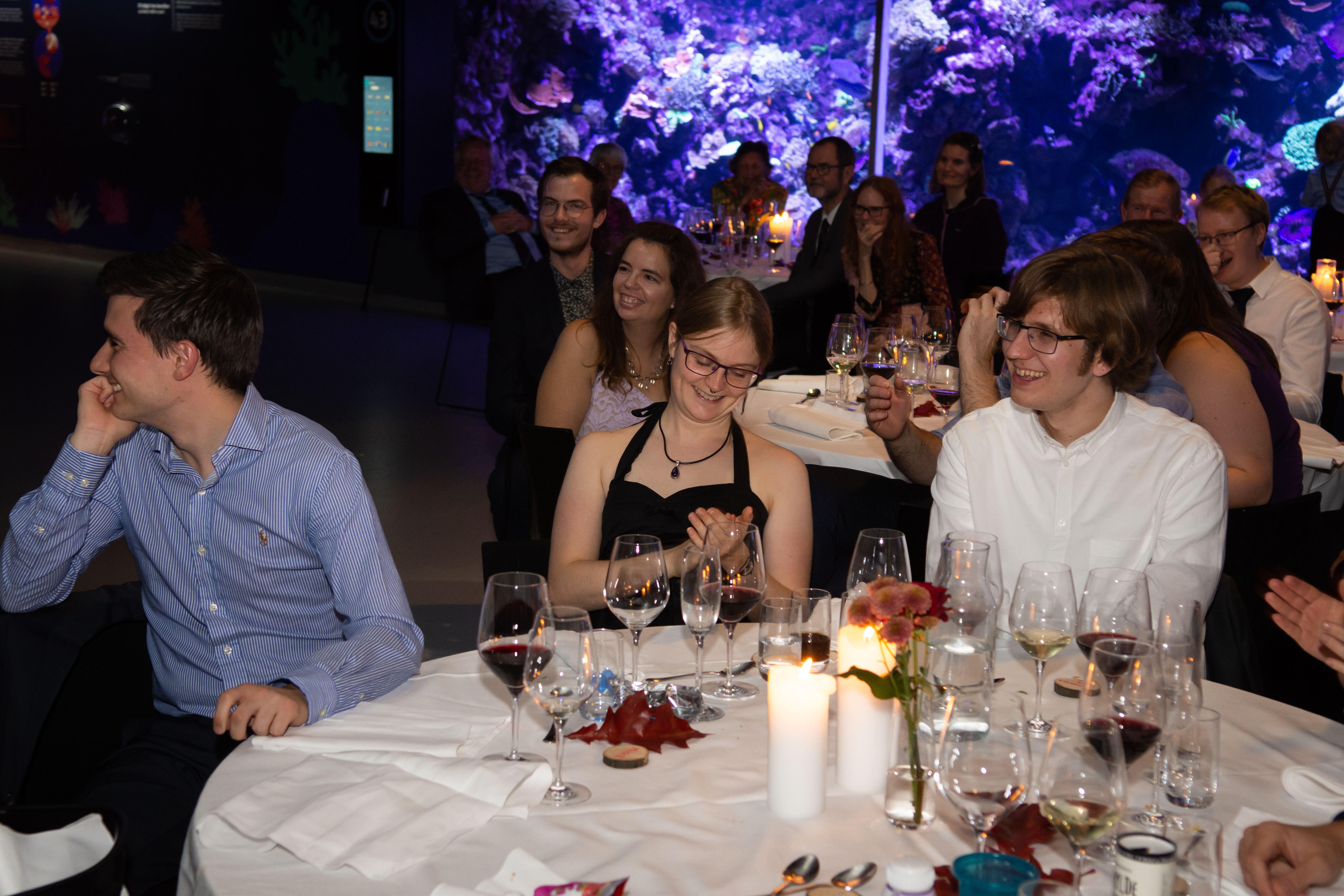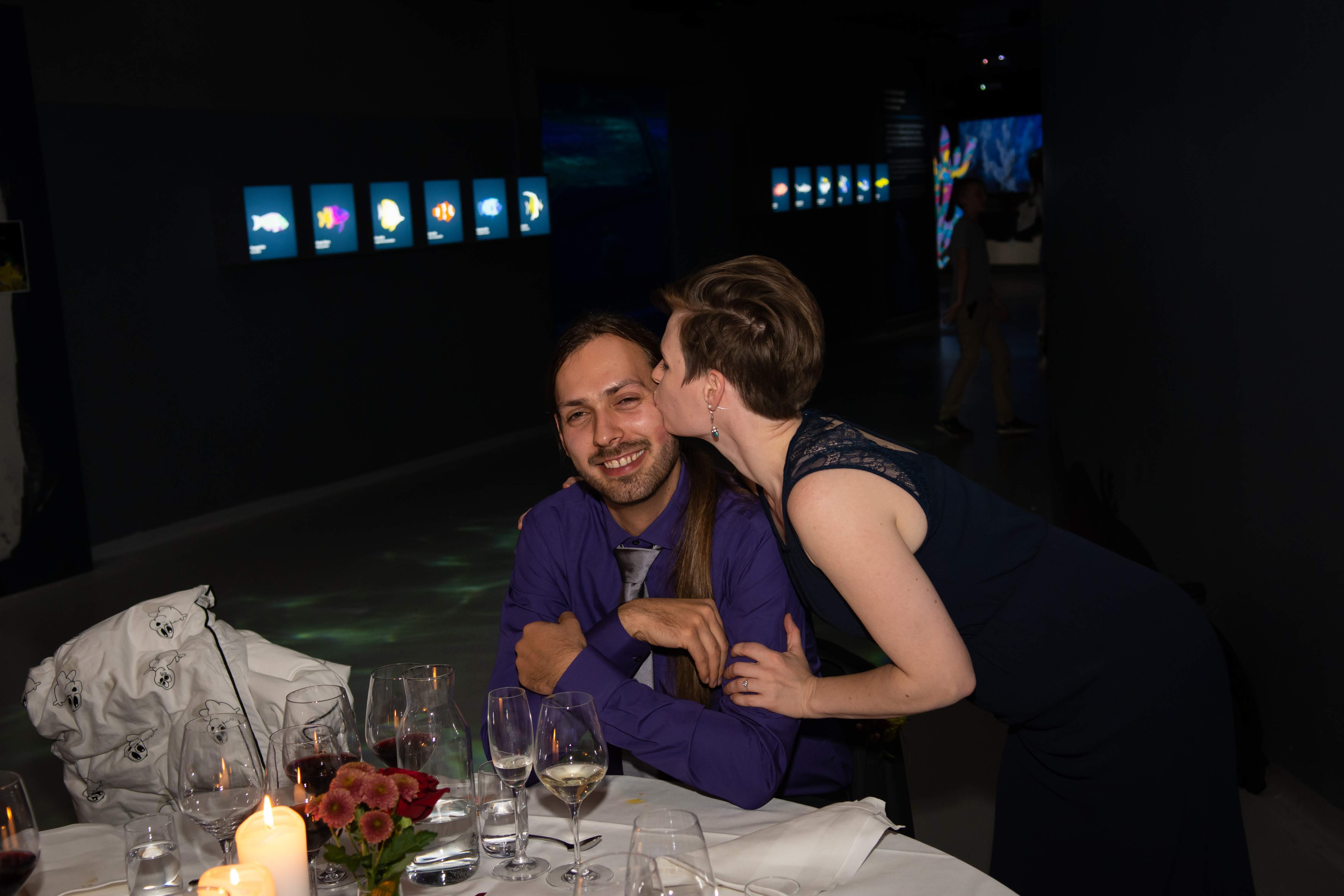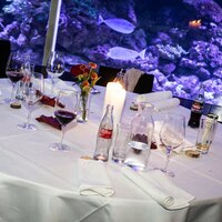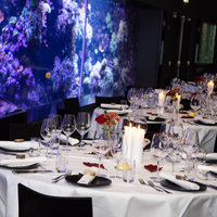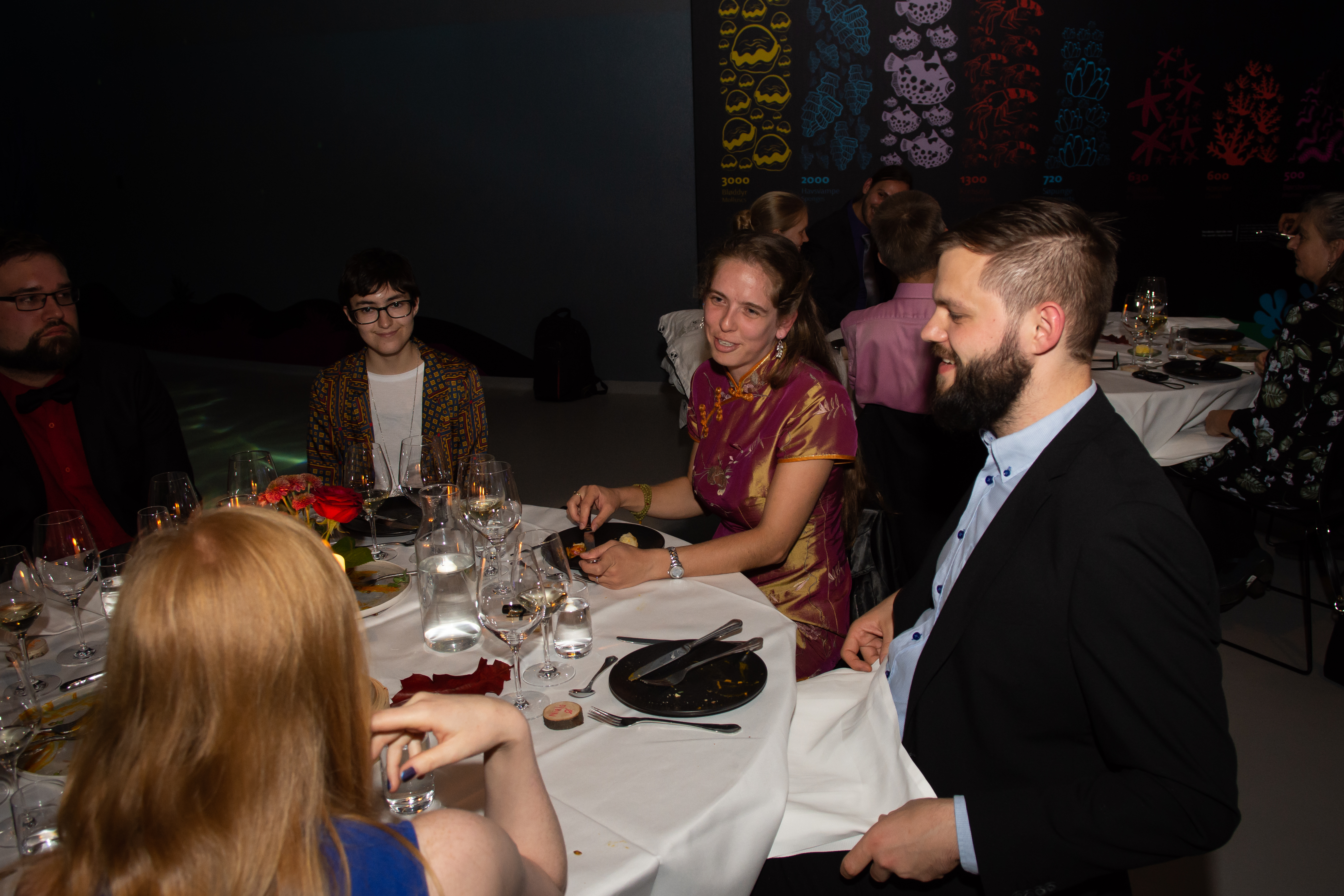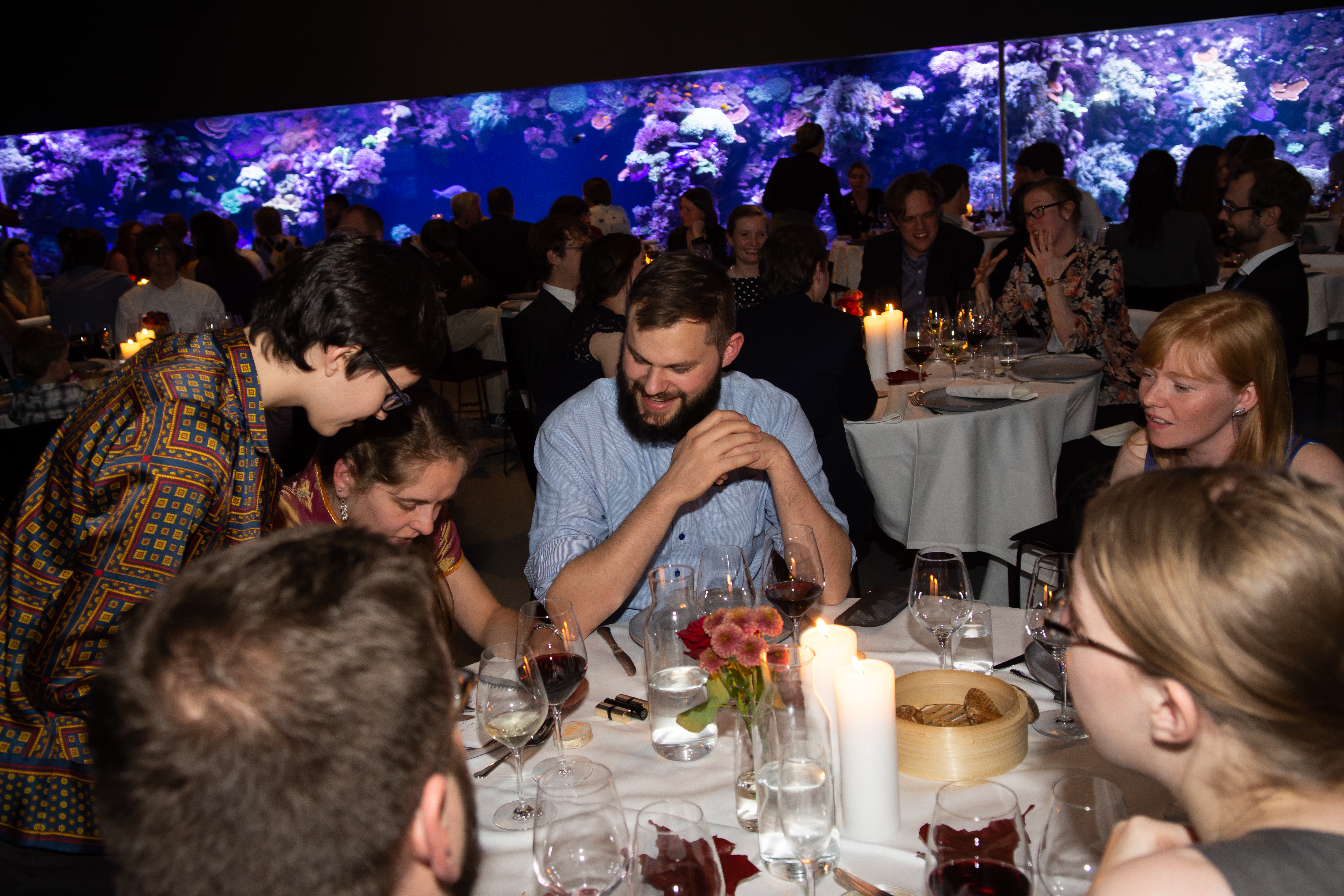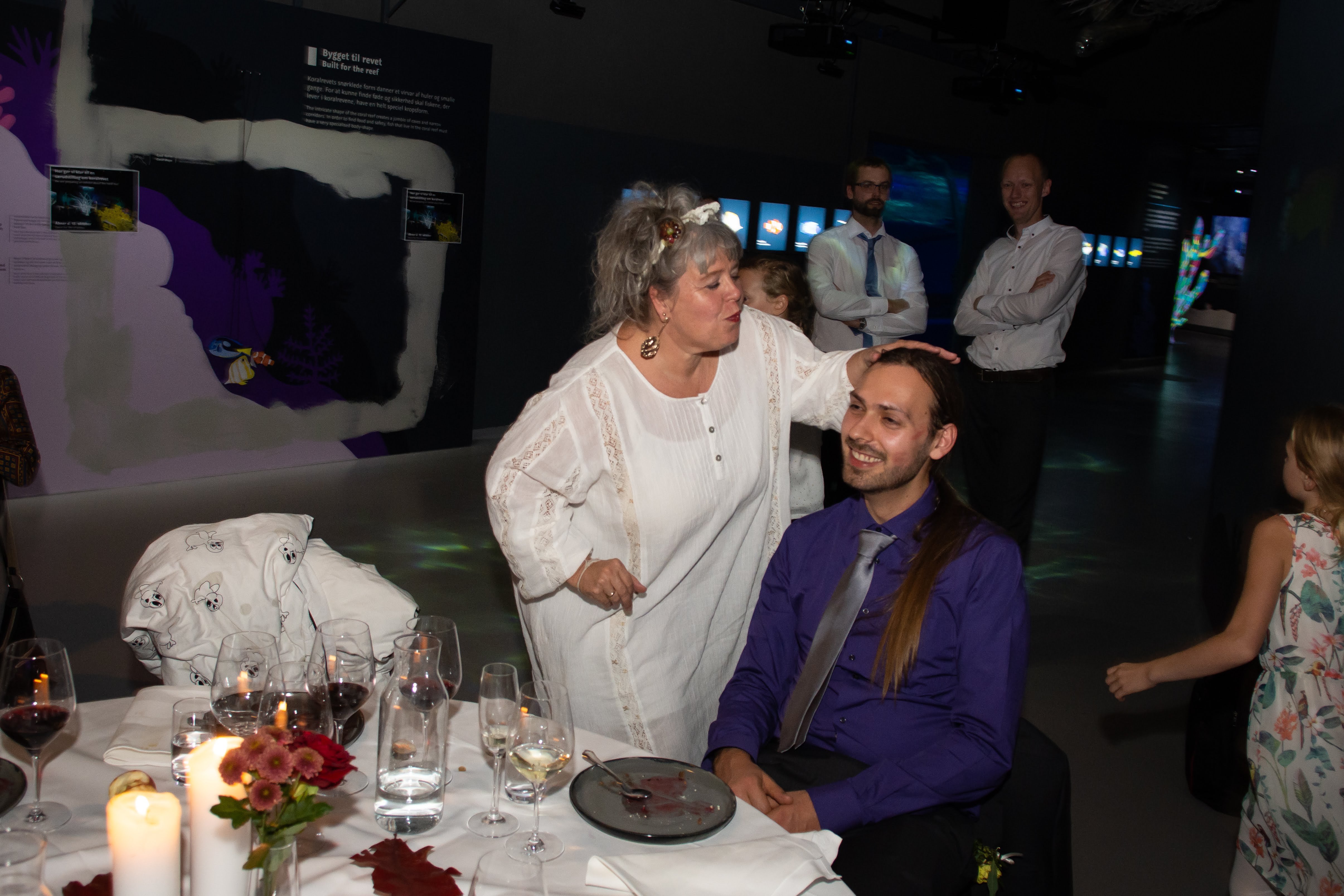Festen forgår på Den Blå Planet. De holder åbent for deres normale besøgende indtil kl. 17 og derefter skal de nå at gøre klar til festen. Derfor vil det ikke være muligt at komme ind før kl. , hvor vi vil starte ud med velkomstdrinks.