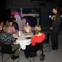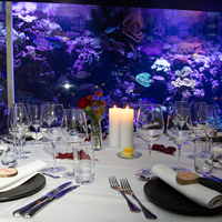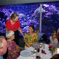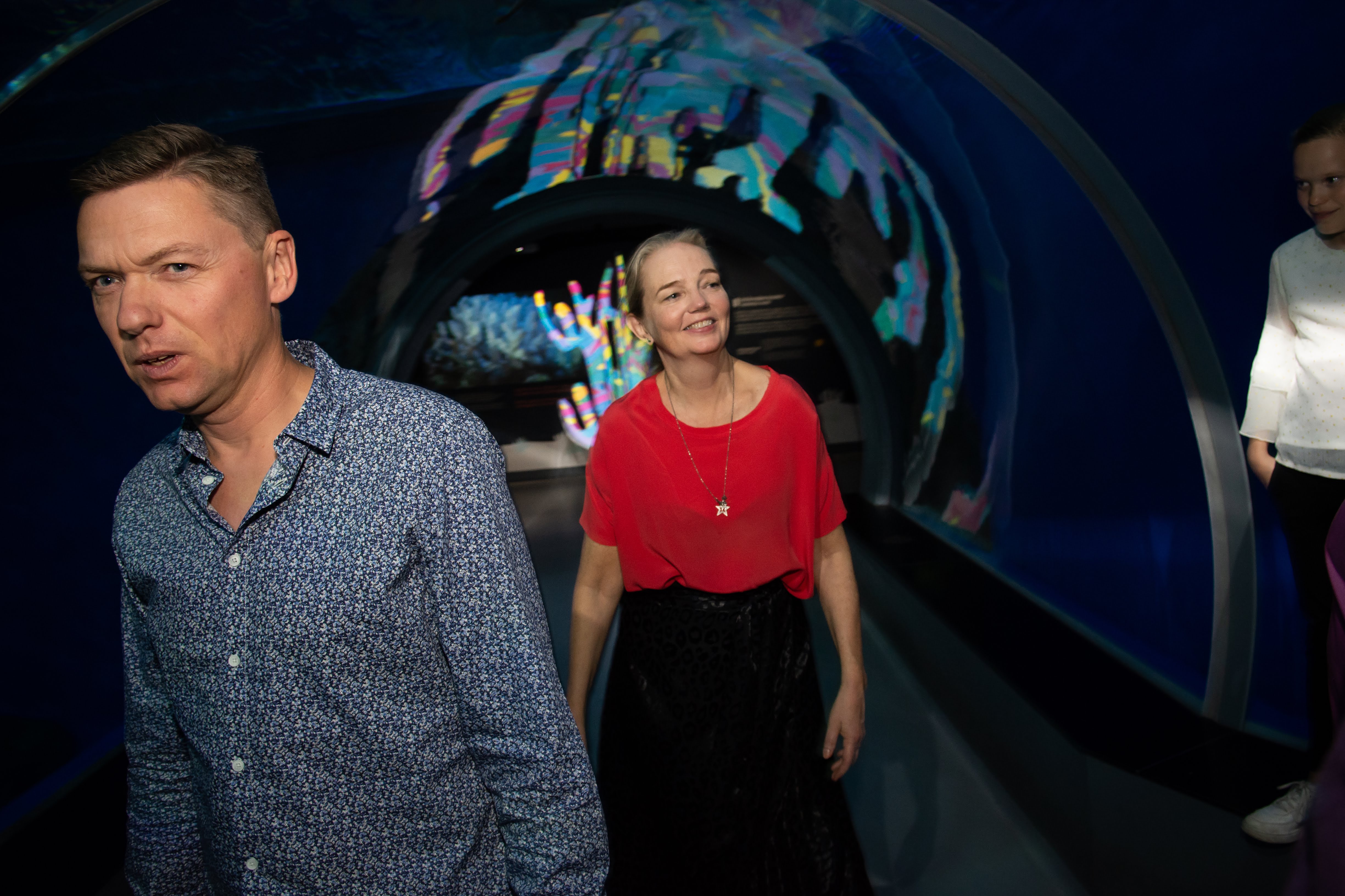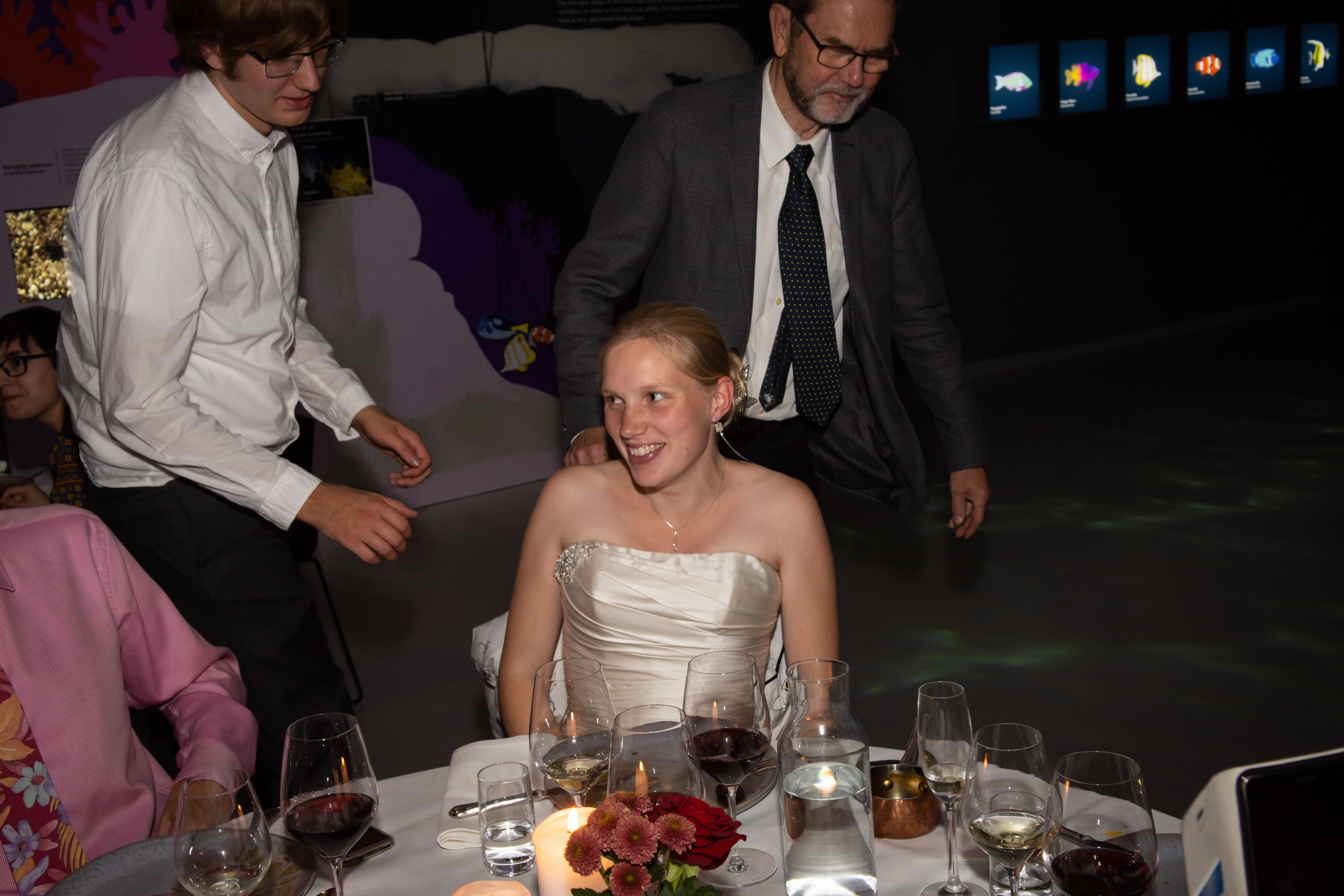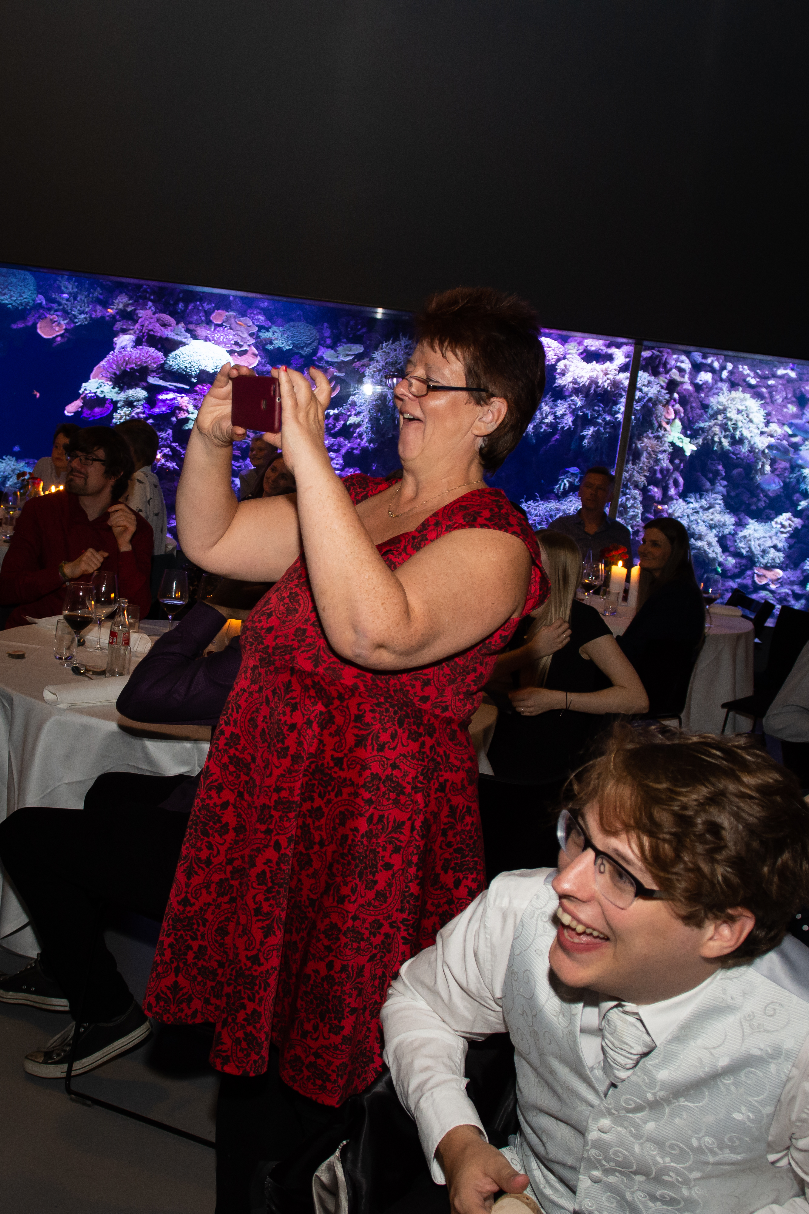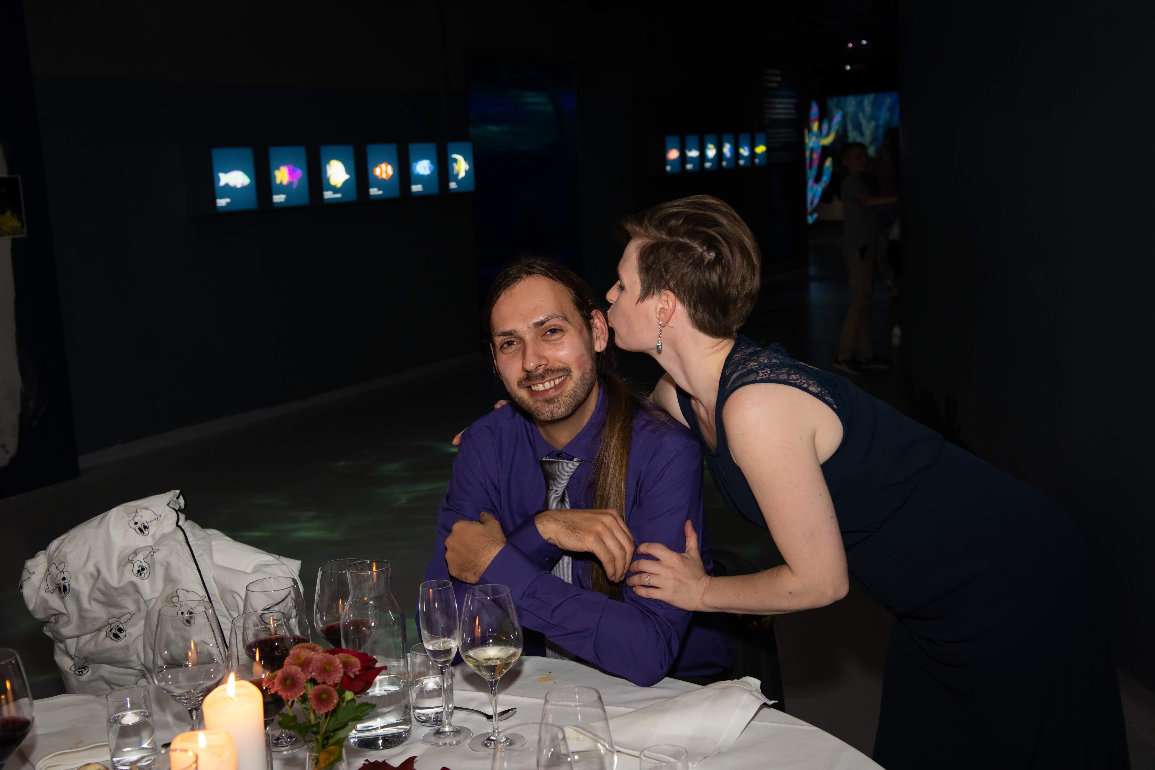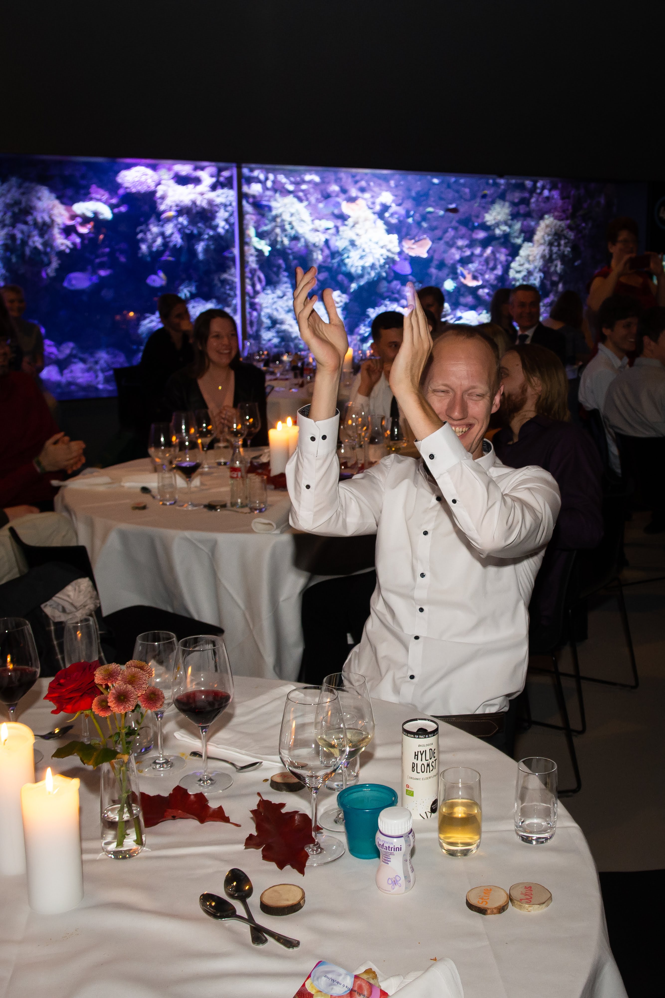Festen forgår på Den Blå Planet. De holder åbent for deres normale besøgende indtil kl. 17 og derefter skal de nå at gøre klar til festen. Derfor vil det ikke være muligt at komme ind før kl. , hvor vi vil starte ud med velkomstdrinks.