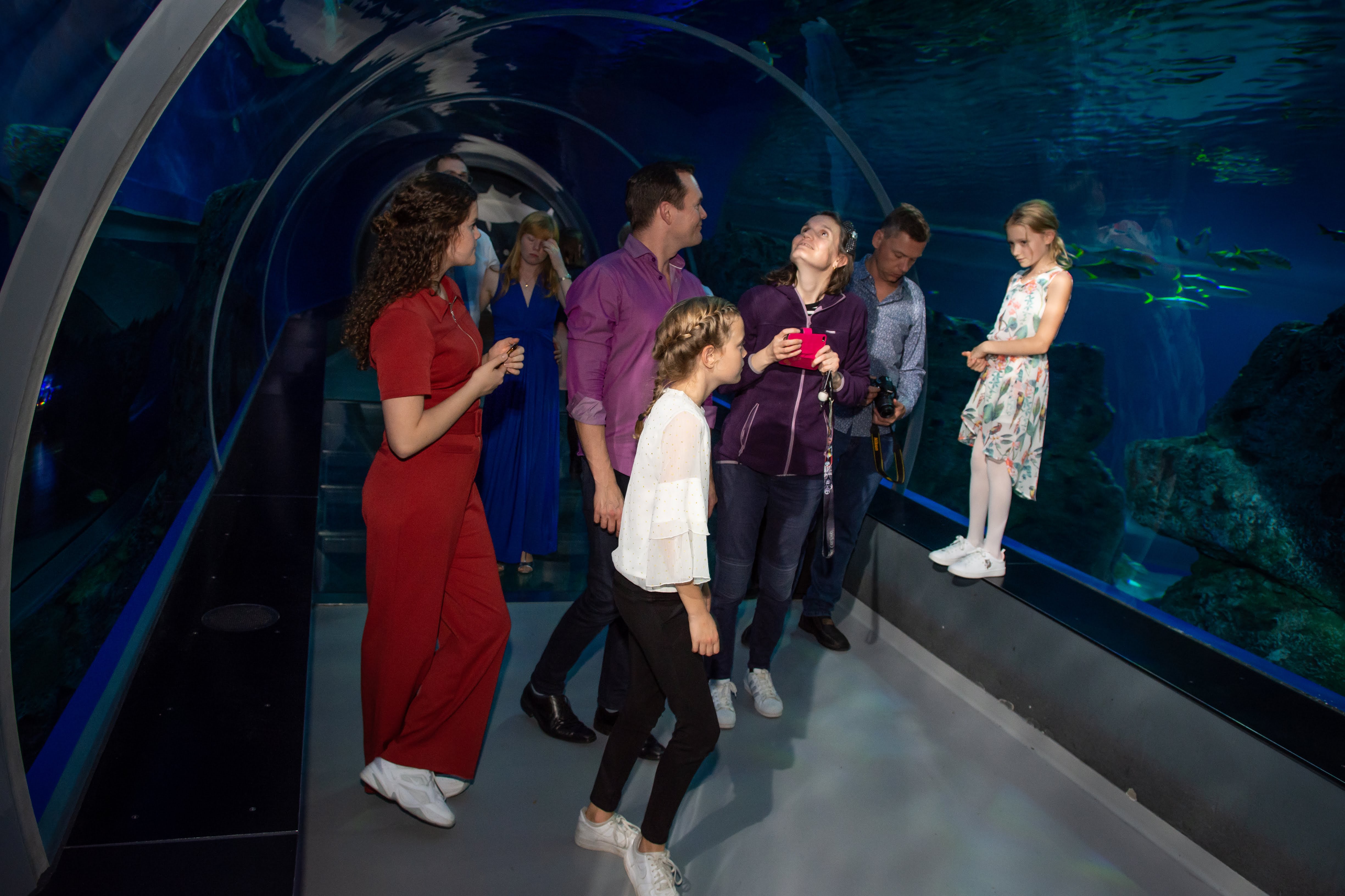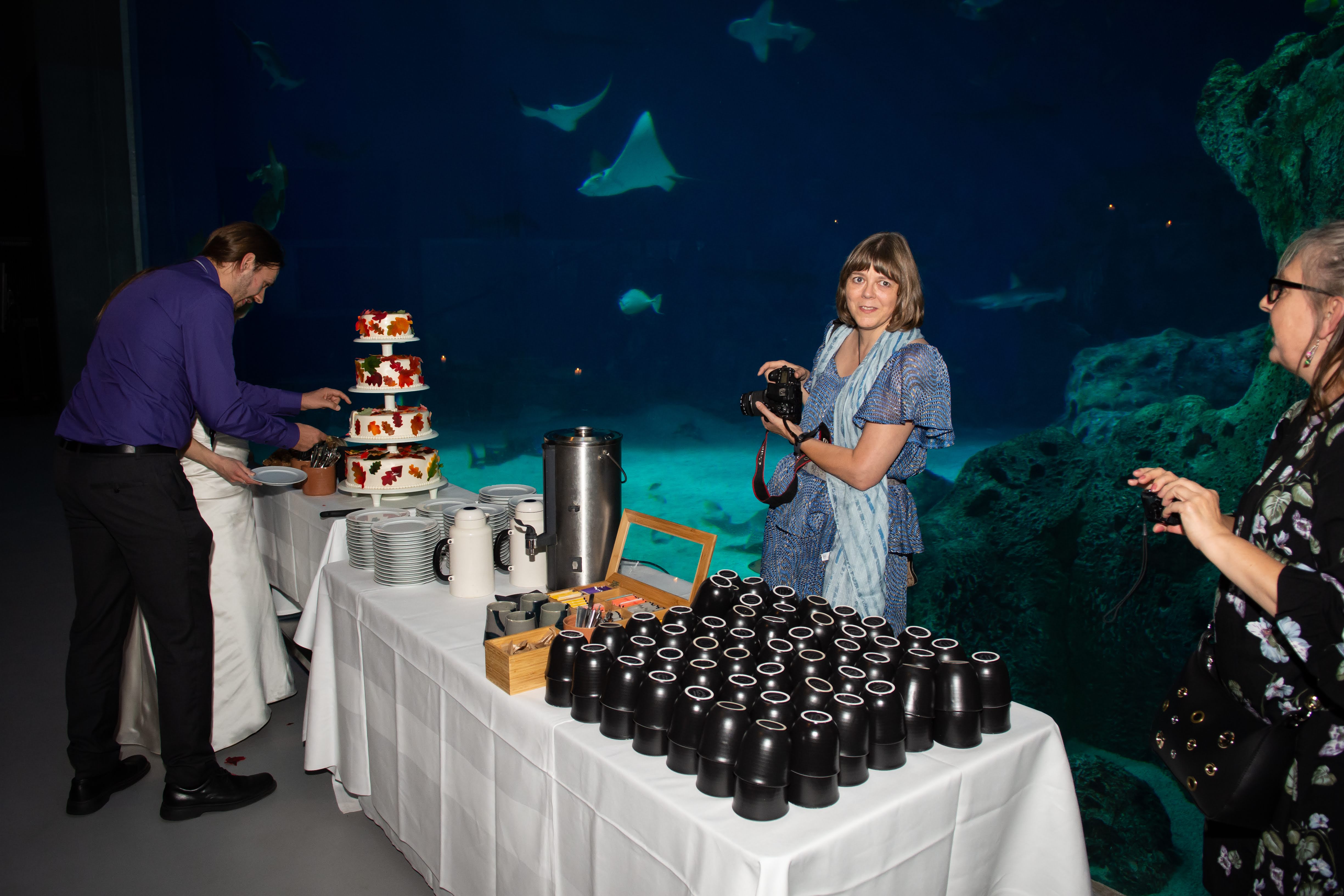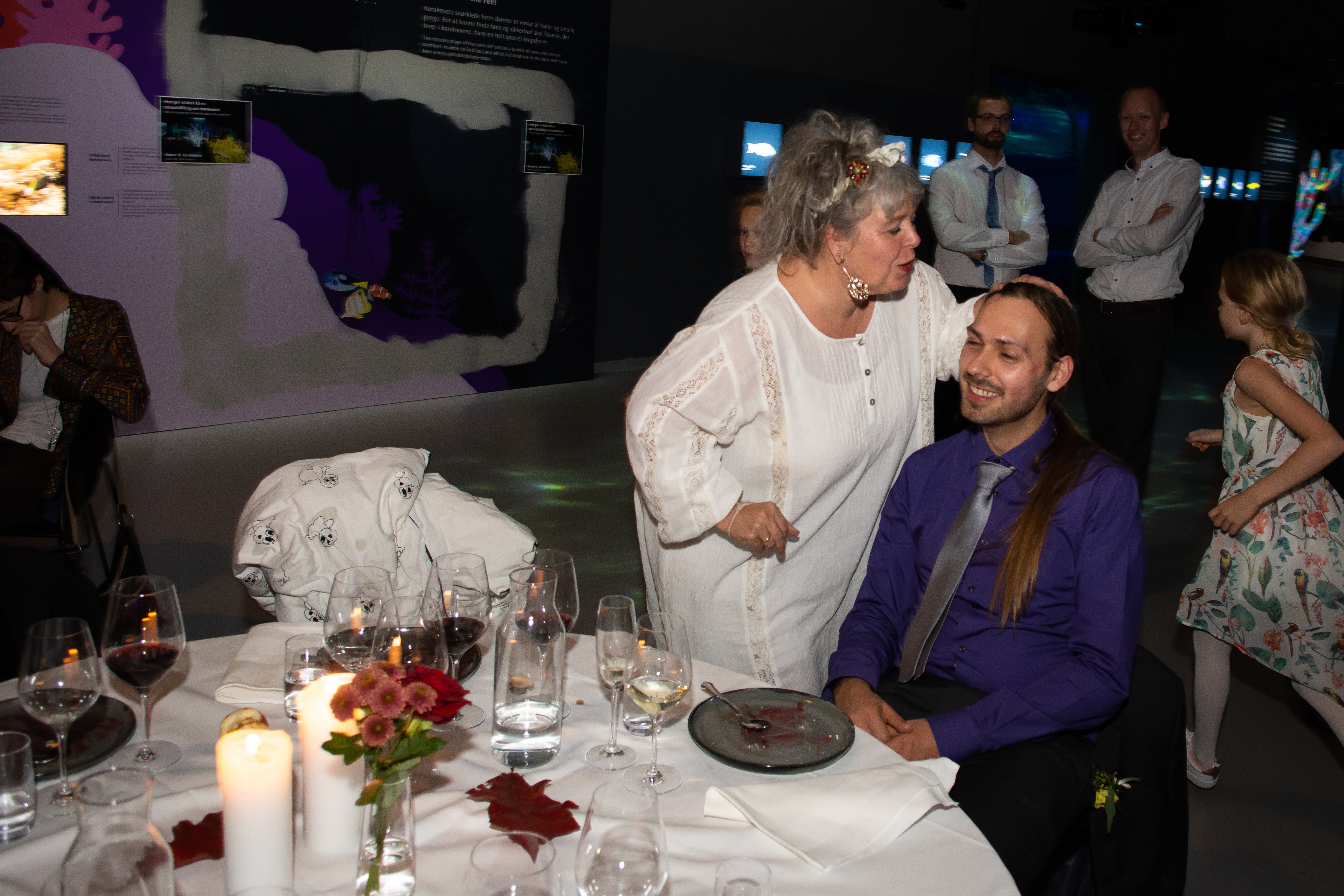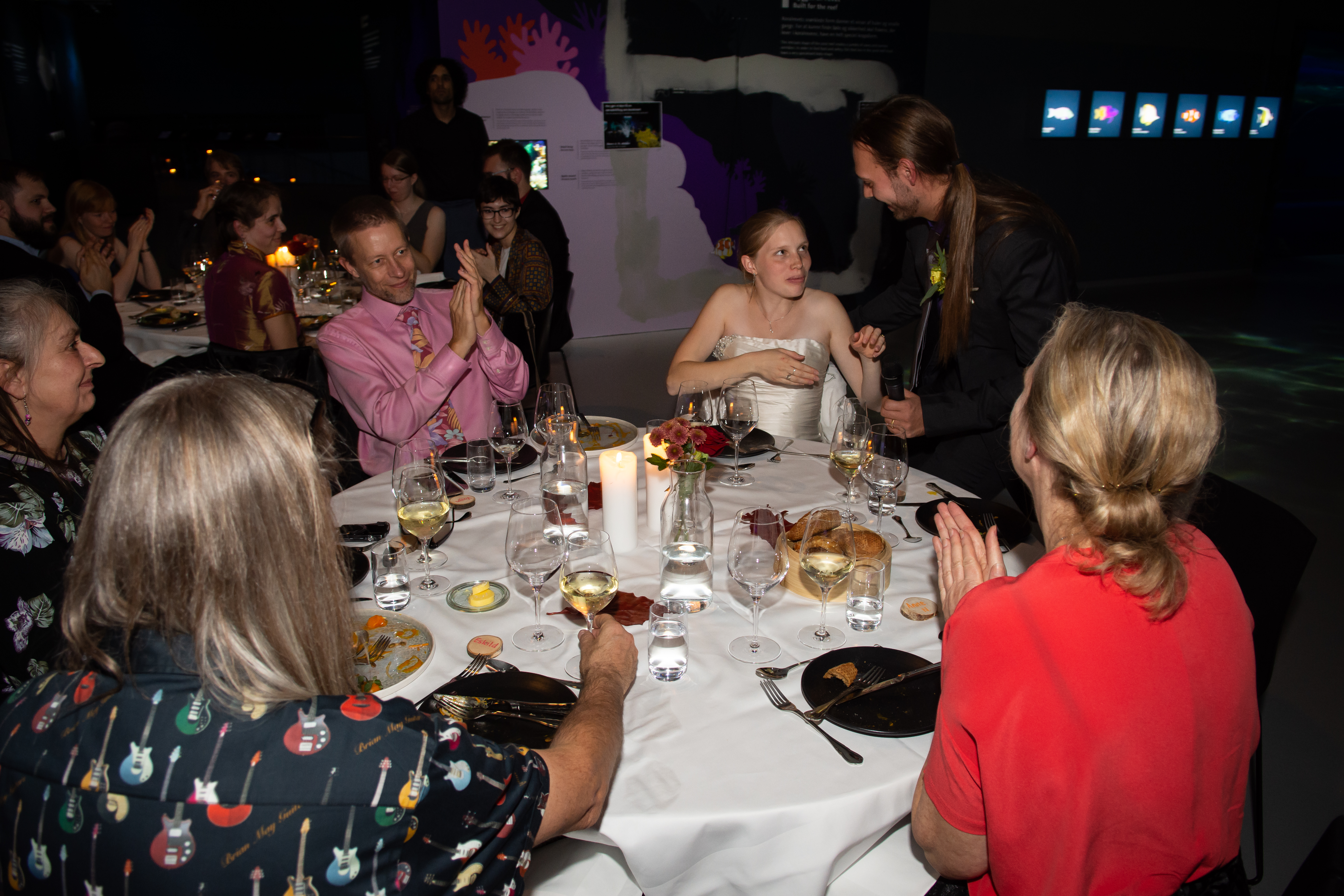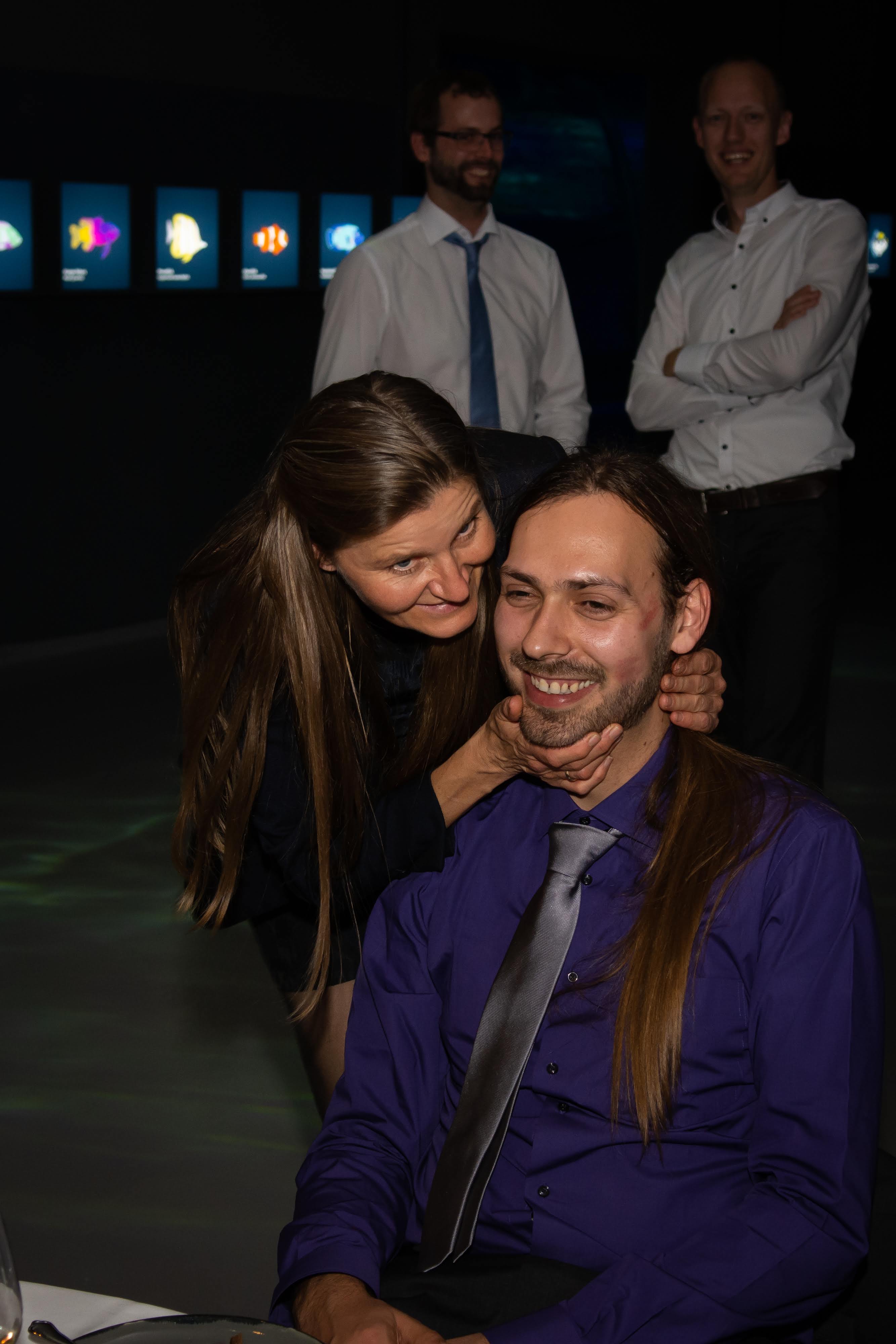 Festen forgår på Den Blå Planet. De holder åbent for deres normale besøgende indtil kl. 17 og derefter skal de nå at gøre klar til festen. Derfor vil det ikke være muligt at komme ind før kl. , hvor vi vil starte ud med velkomstdrinks.