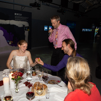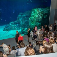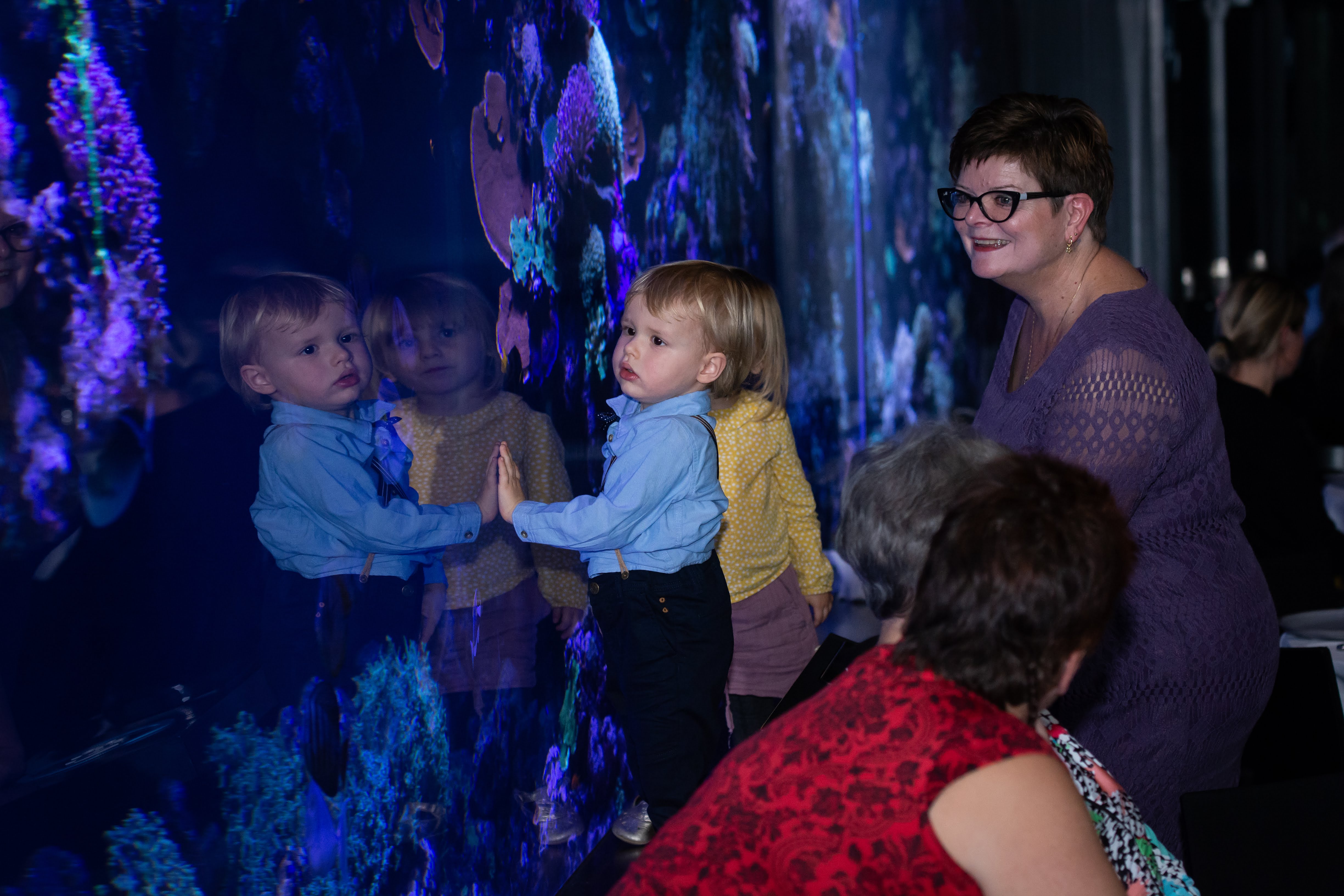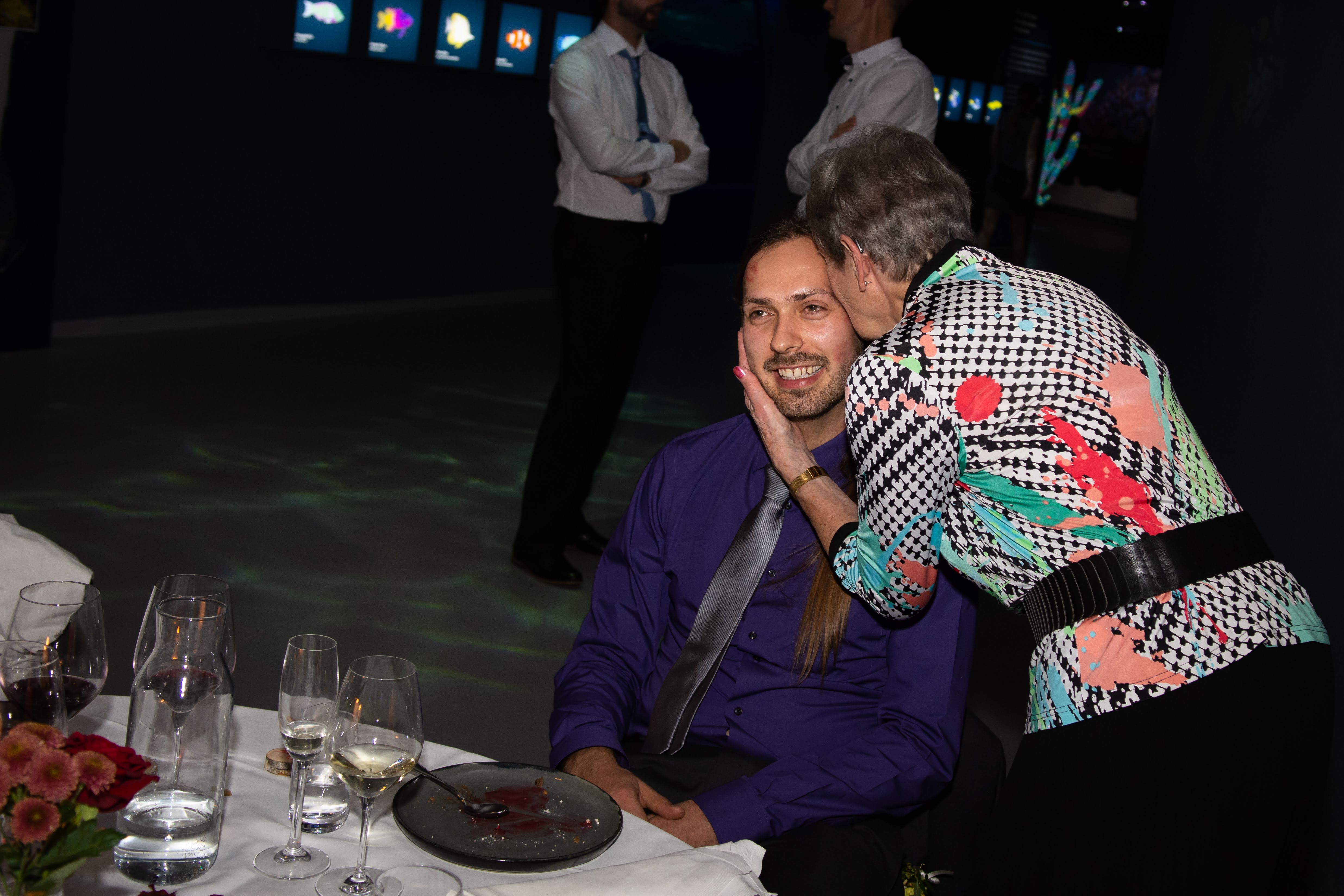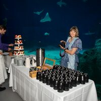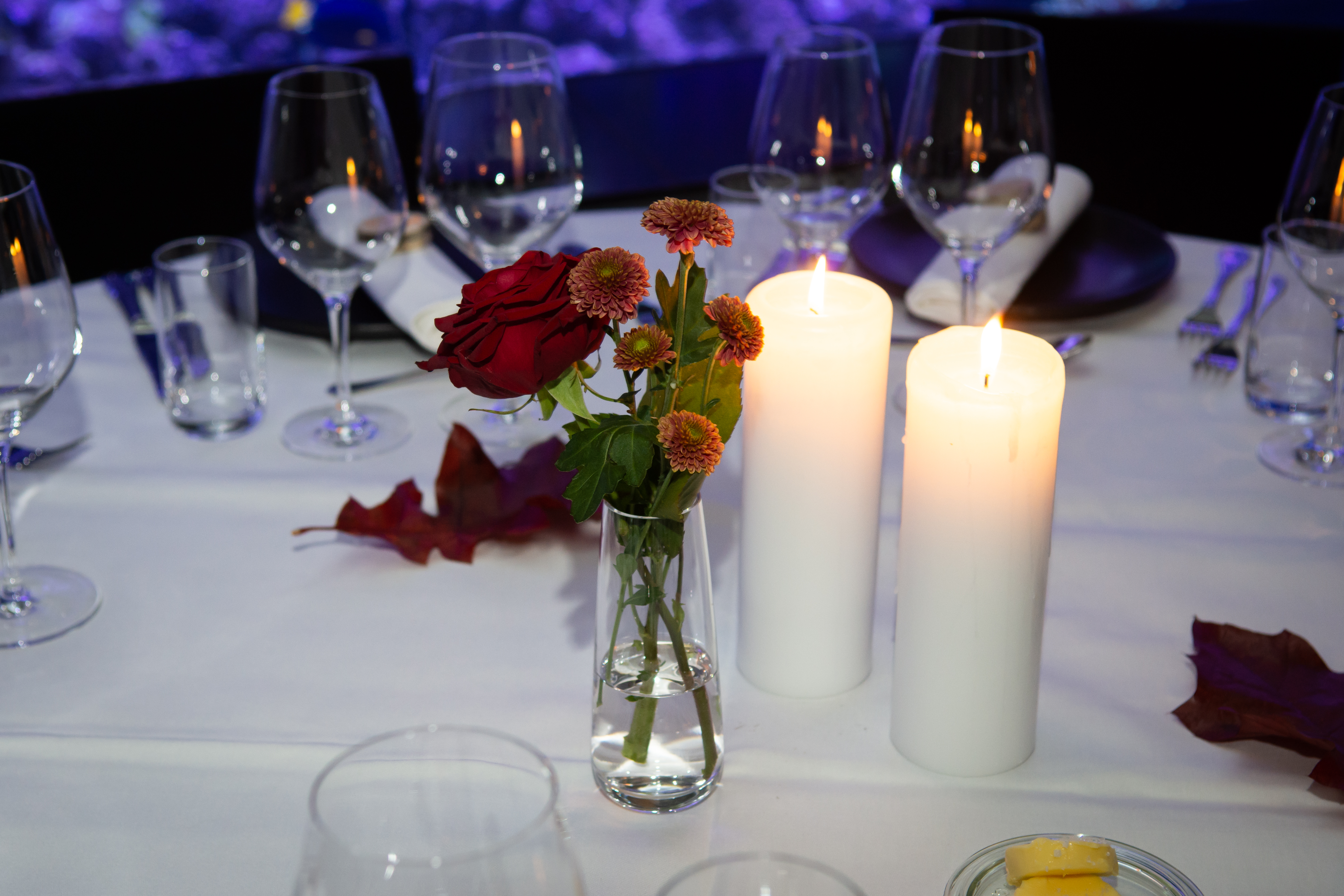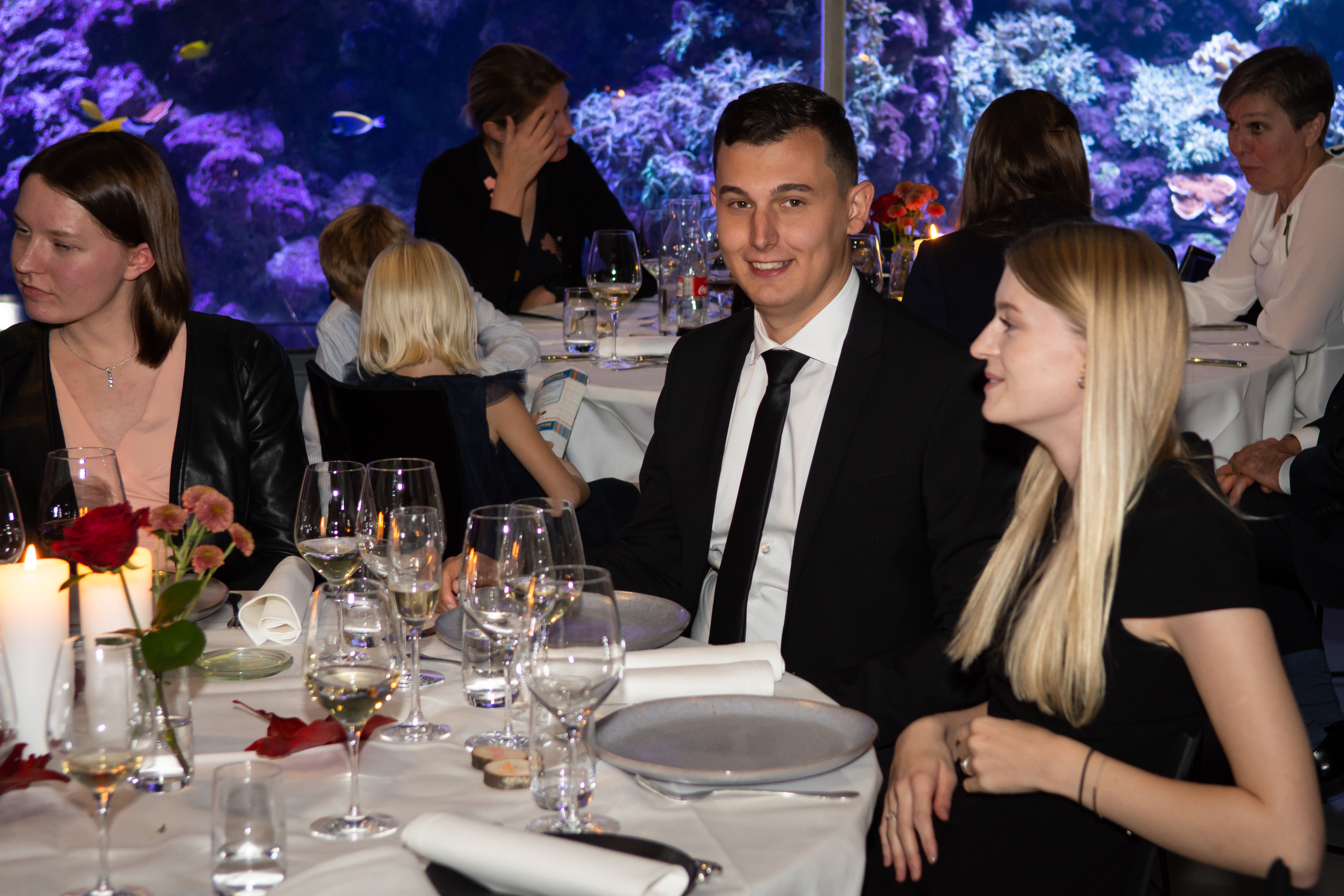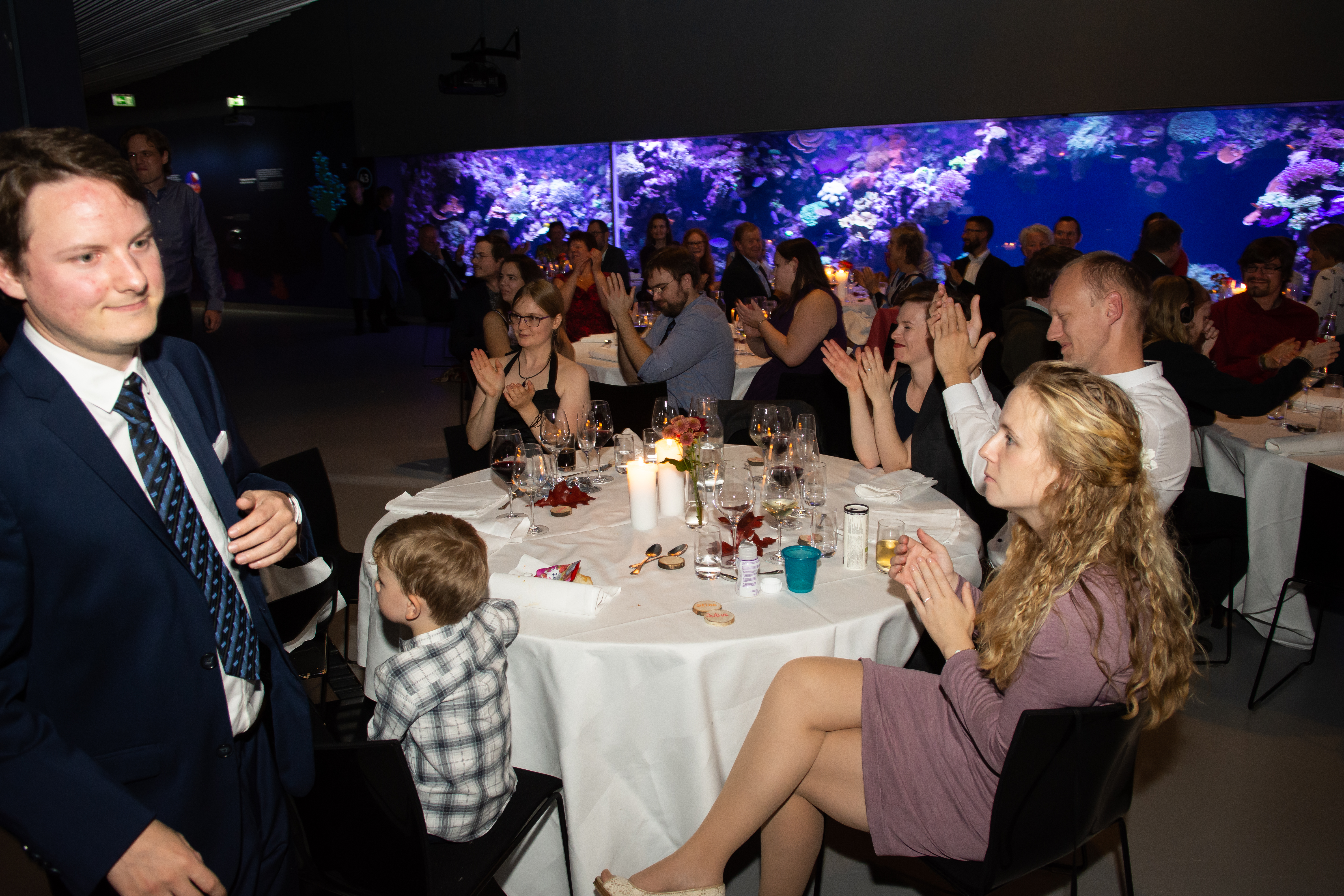 Festen forgår på Den Blå Planet. De holder åbent for deres normale besøgende indtil kl. 17 og derefter skal de nå at gøre klar til festen. Derfor vil det ikke være muligt at komme ind før kl. , hvor vi vil starte ud med velkomstdrinks.