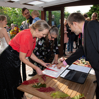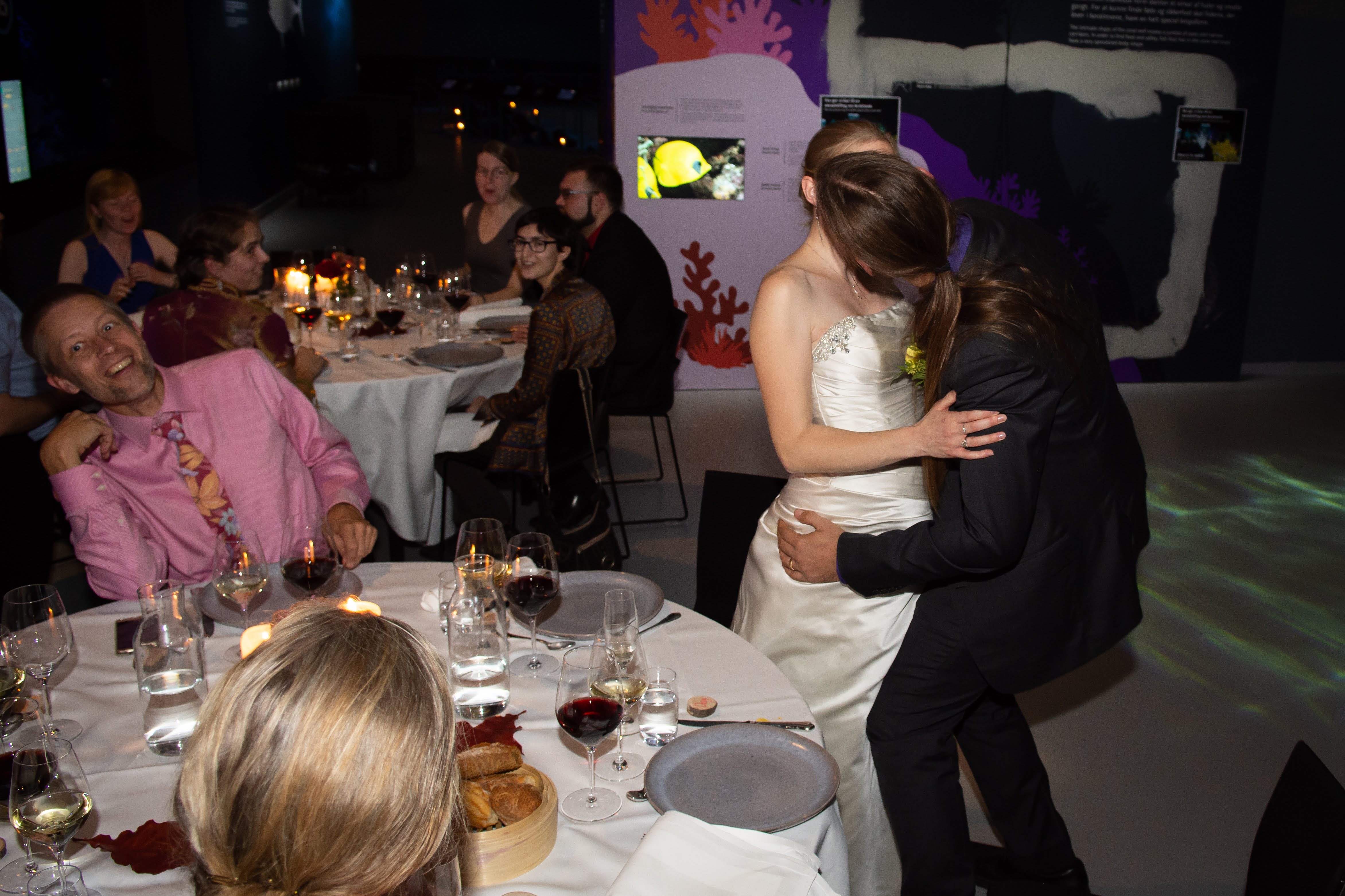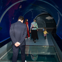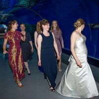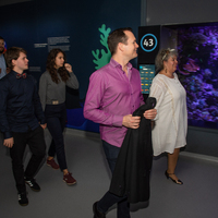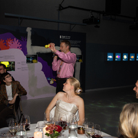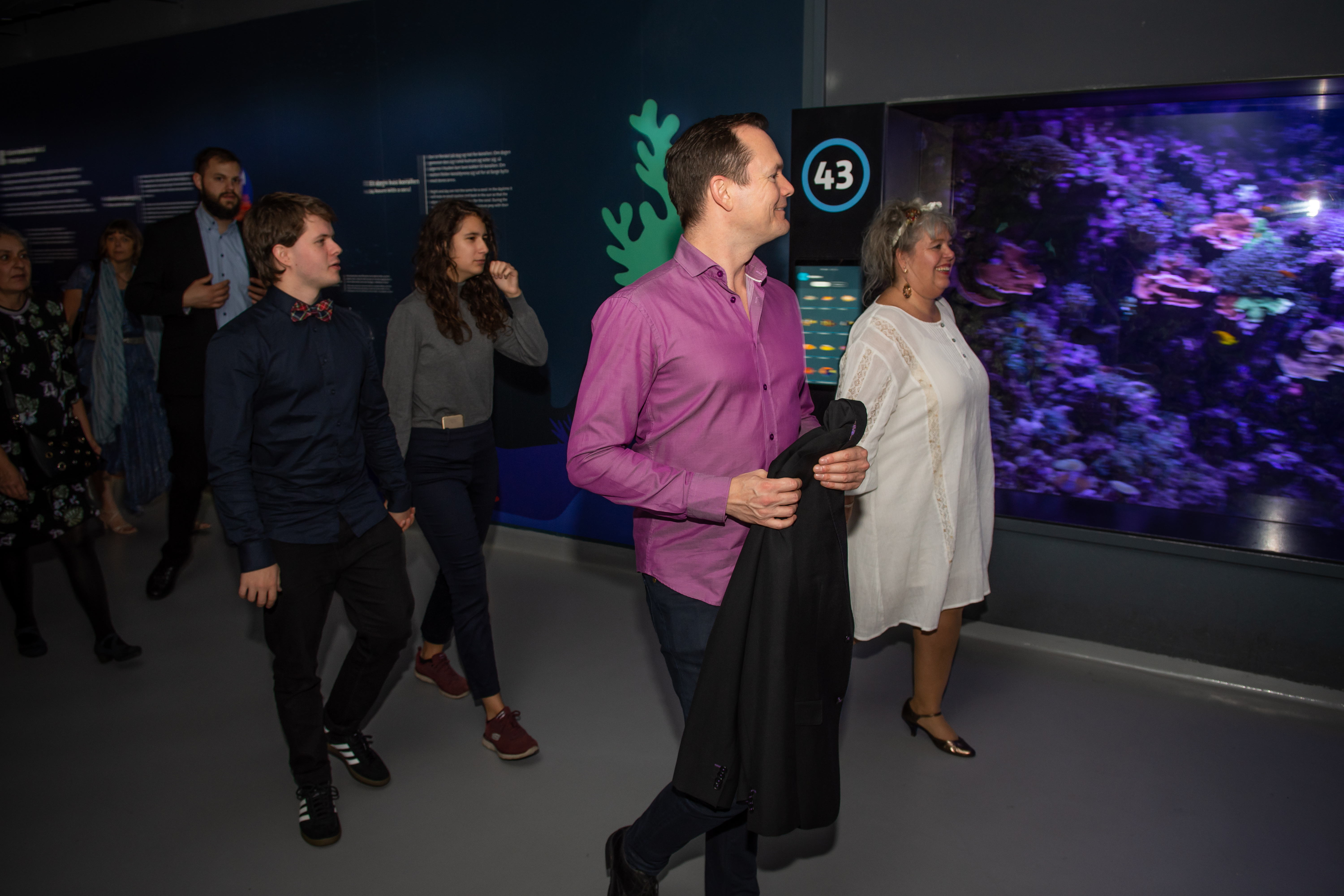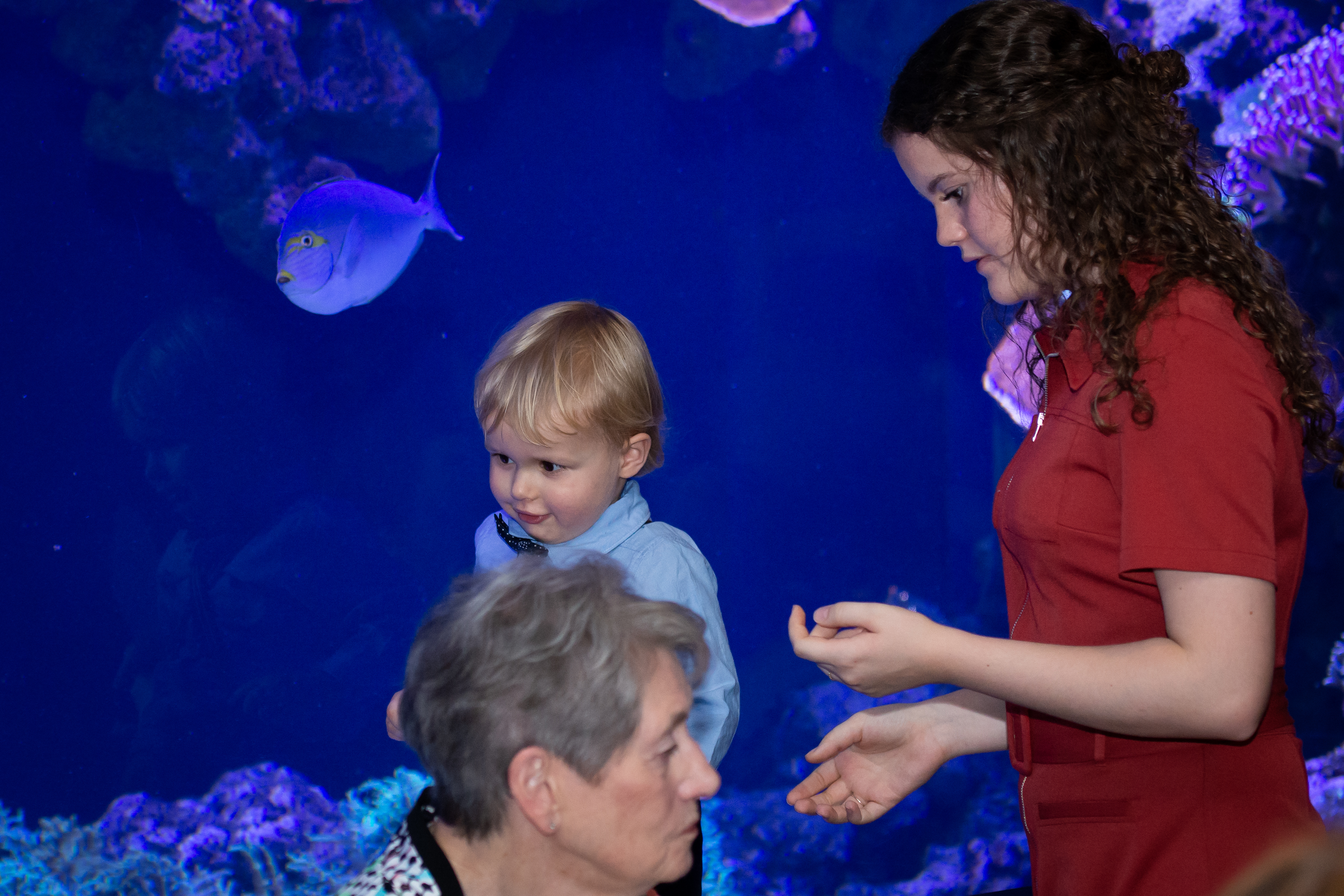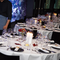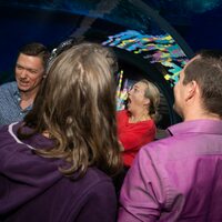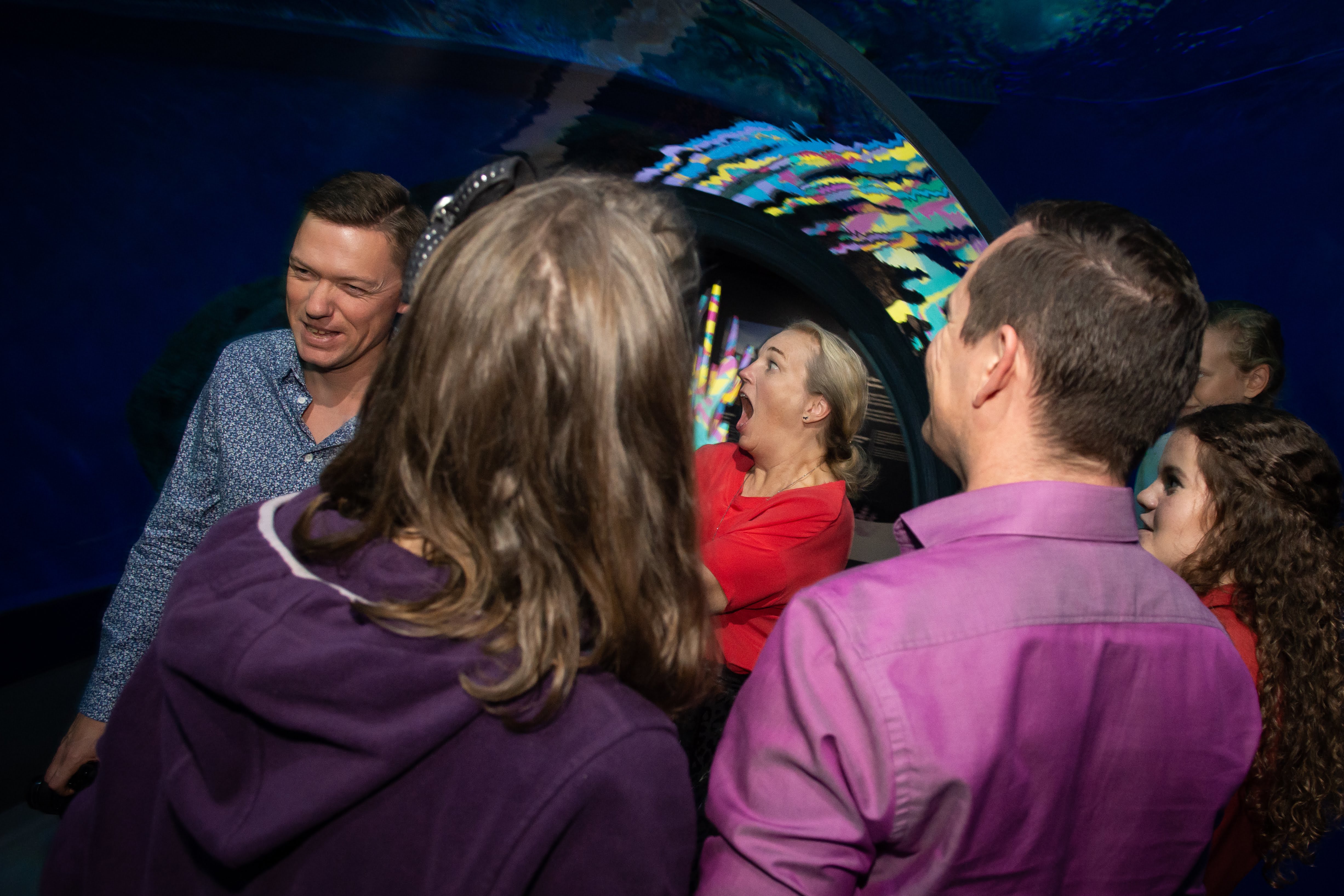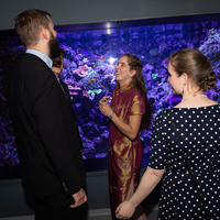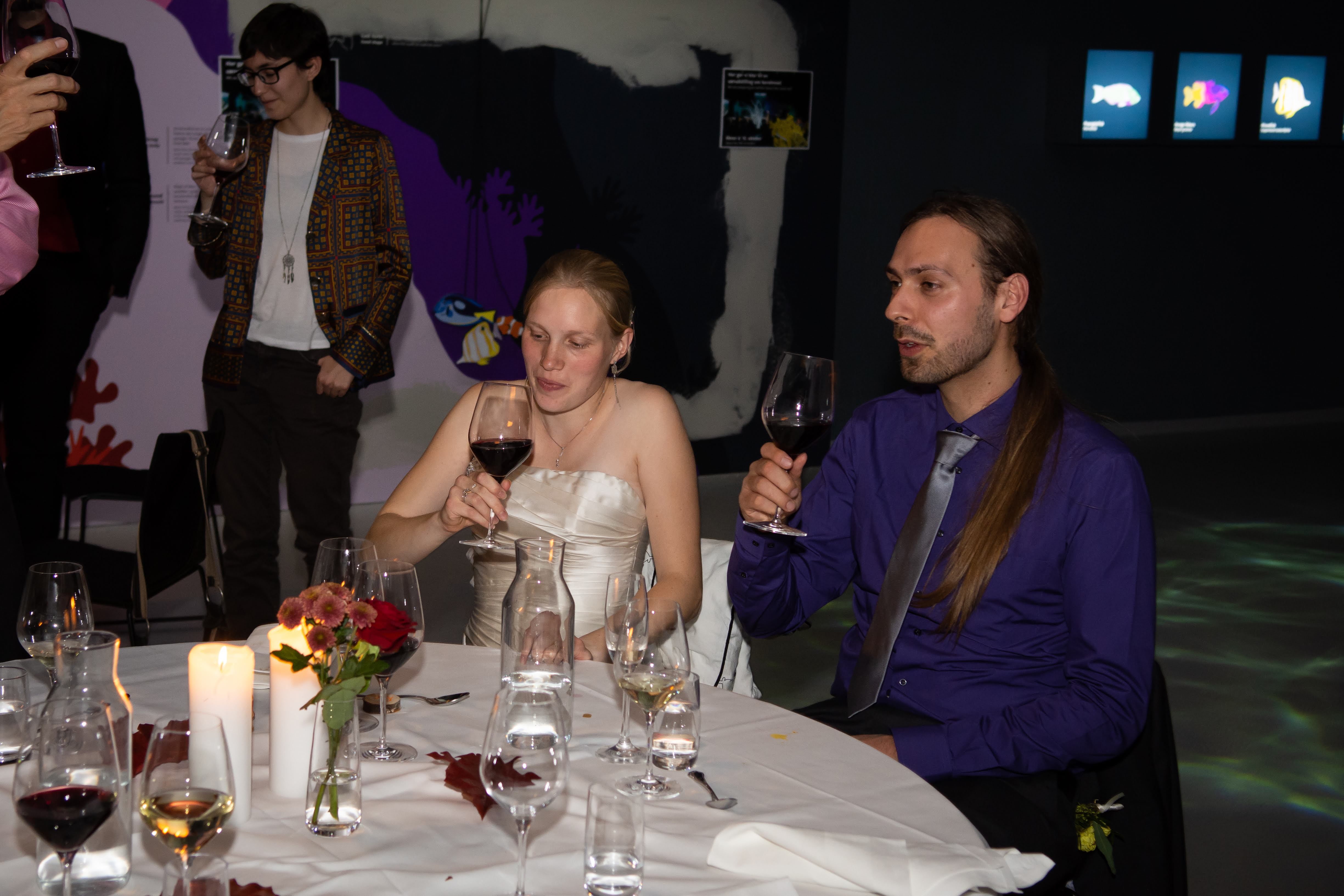 Festen forgår på Den Blå Planet. De holder åbent for deres normale besøgende indtil kl. 17 og derefter skal de nå at gøre klar til festen. Derfor vil det ikke være muligt at komme ind før kl. , hvor vi vil starte ud med velkomstdrinks.